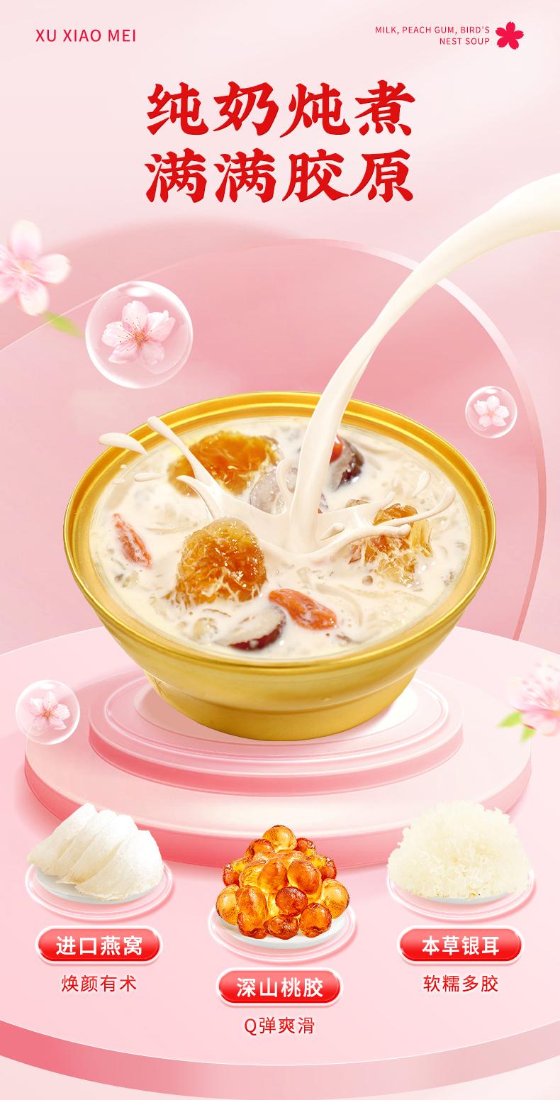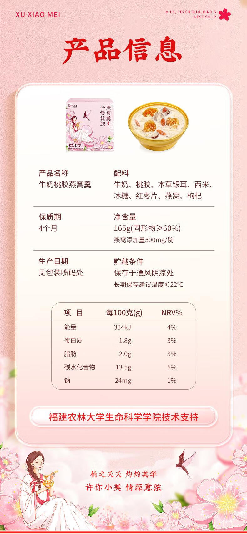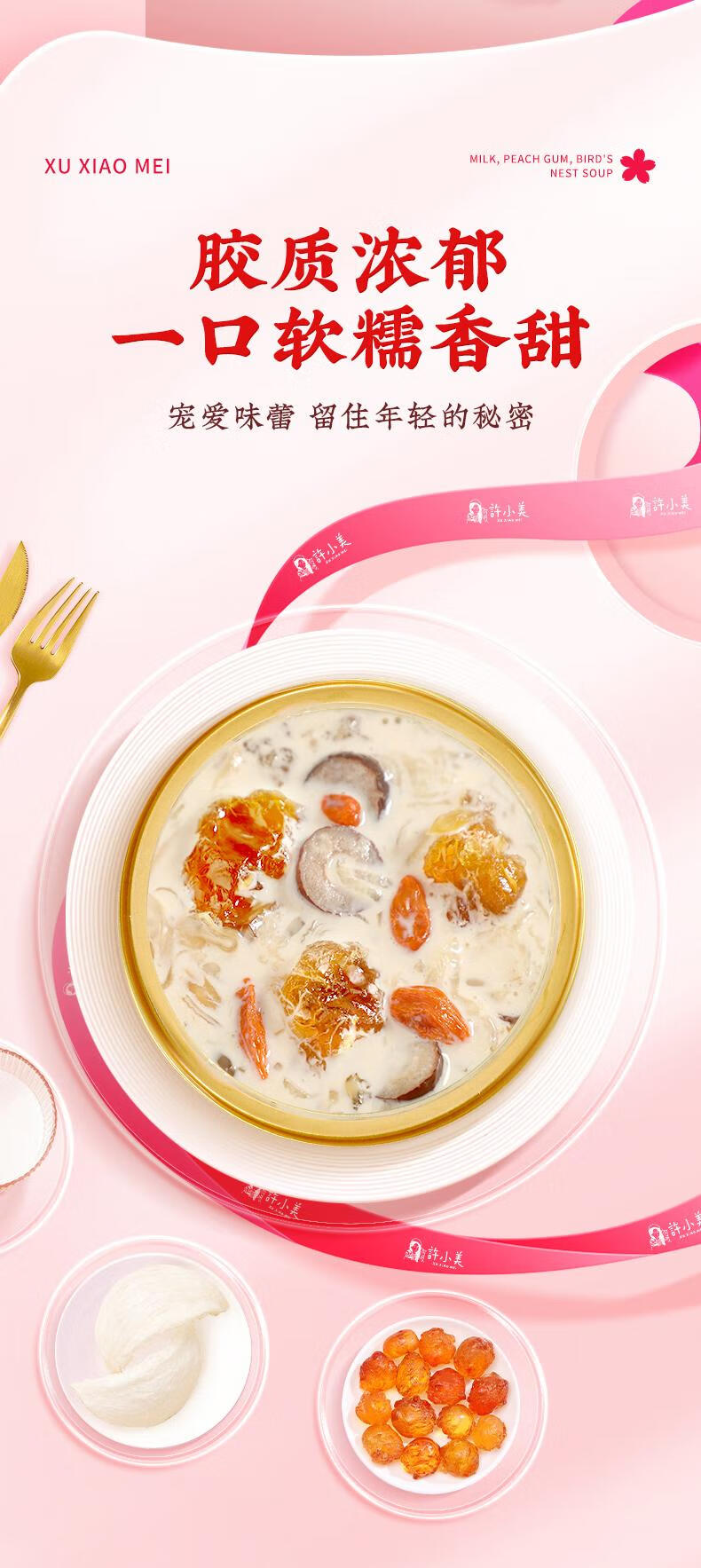 许小美鲜炖牛奶桃胶燕窝羹 165g*10盒满满胶原开盖即食 牛奶桃胶燕窝羹165g*10盒