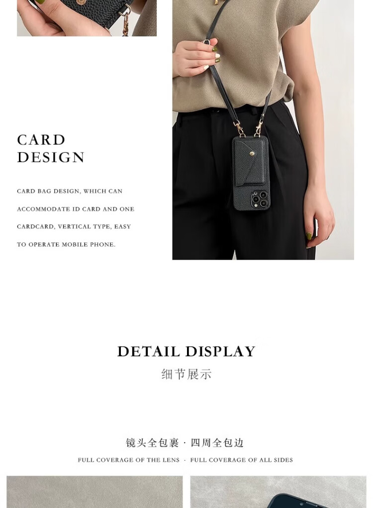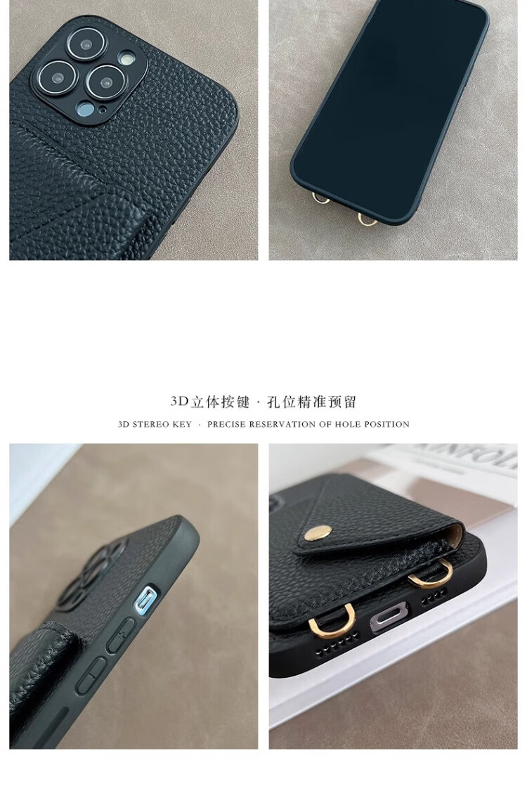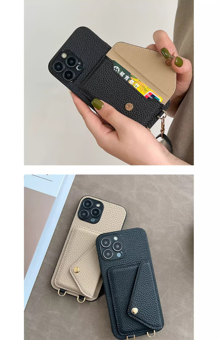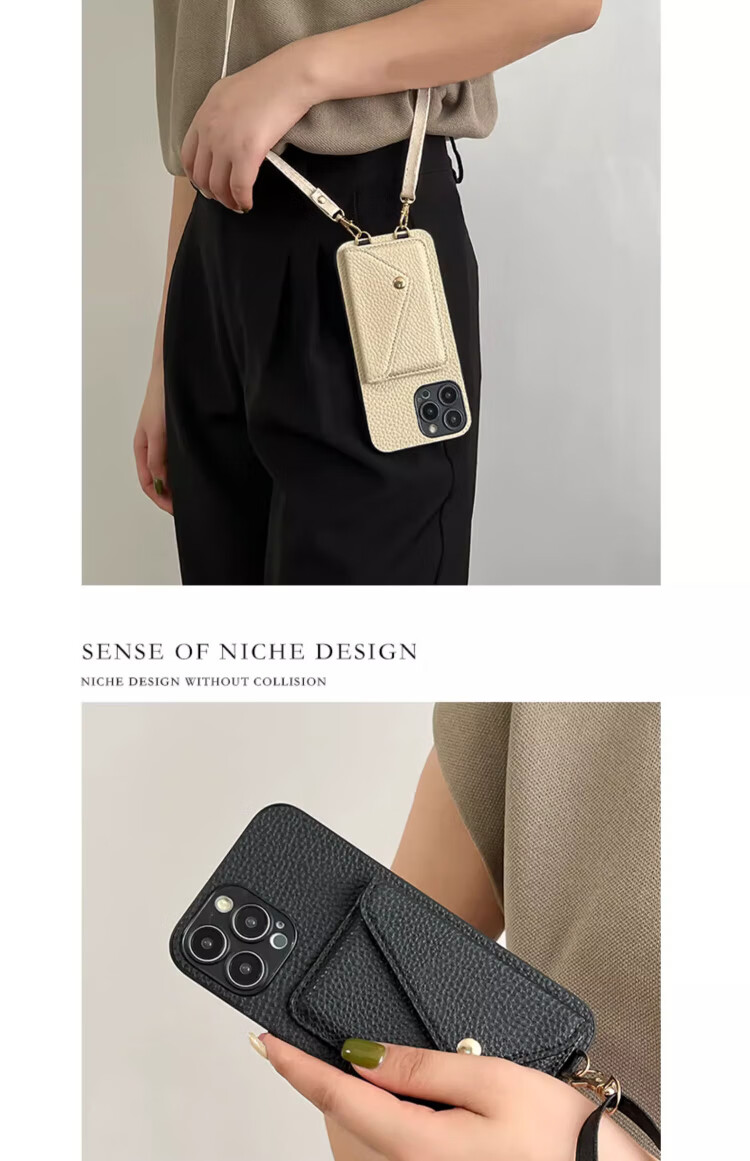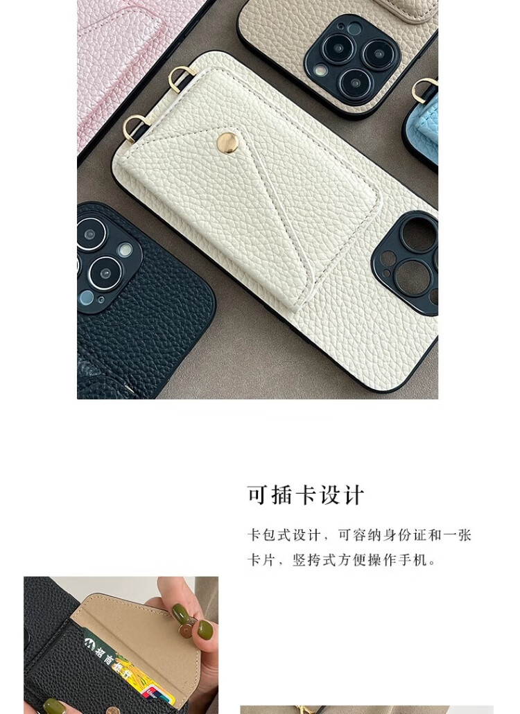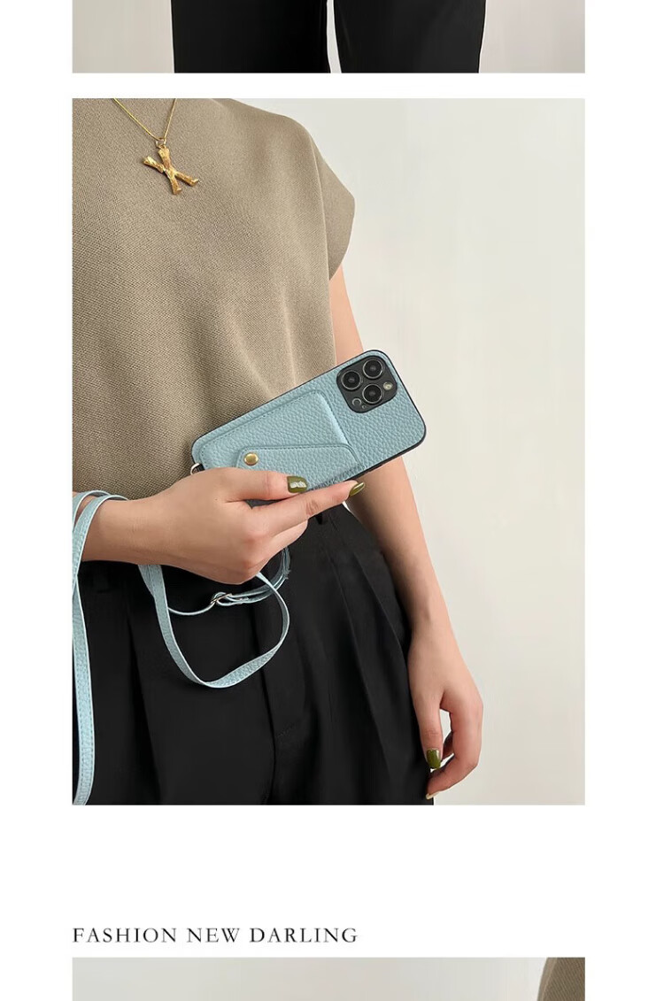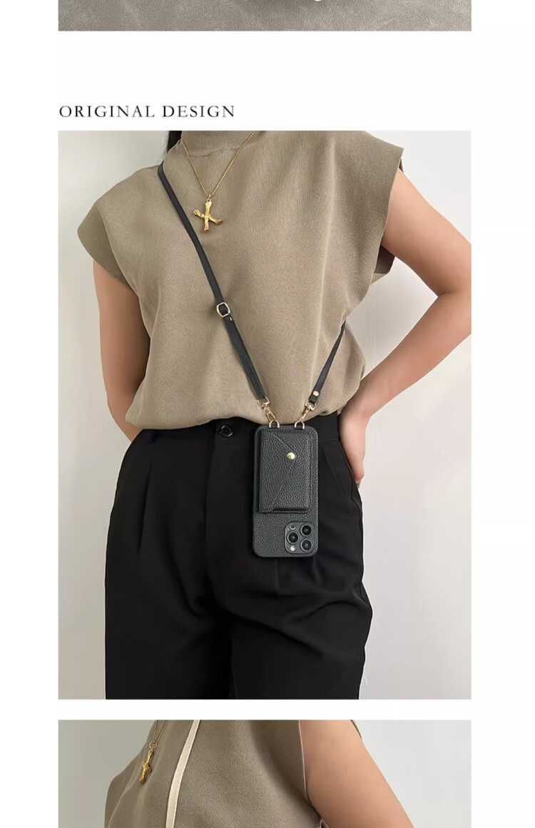 Achtbeiniges Biest High-End-Leder-Münzkartenhalter iPhone17Promax Schutzhülle Apple 16Pro Handyhülle 15 Umhängeband Lanyard 13 Damenmodell 14 Anti-Fall-All-Inclusive High-End-Luxus-Münzkartenhalter in Khaki mit Kieselsteinen + Umhängeband iPhone16