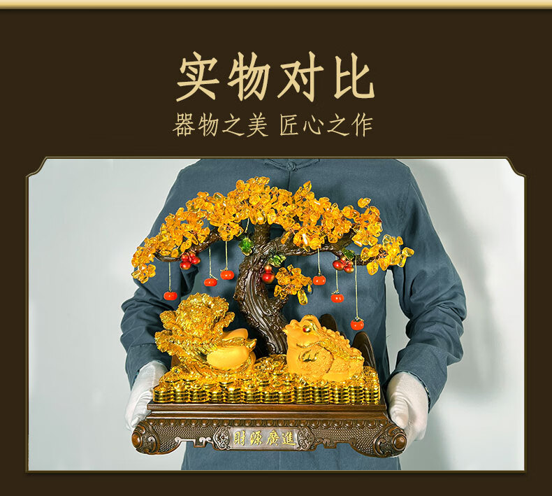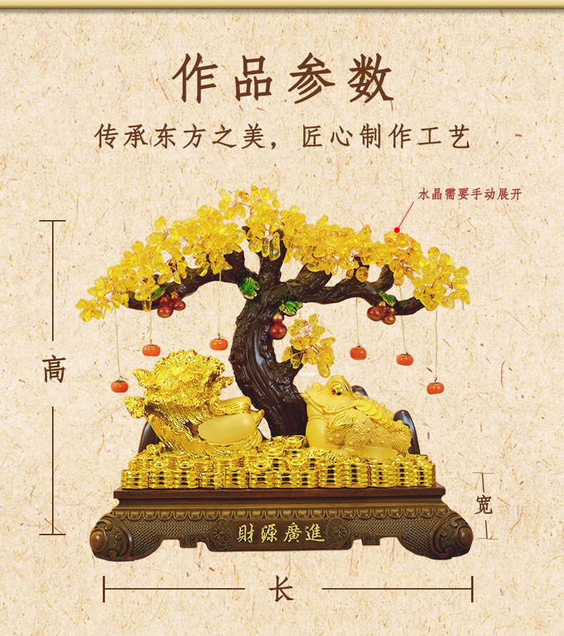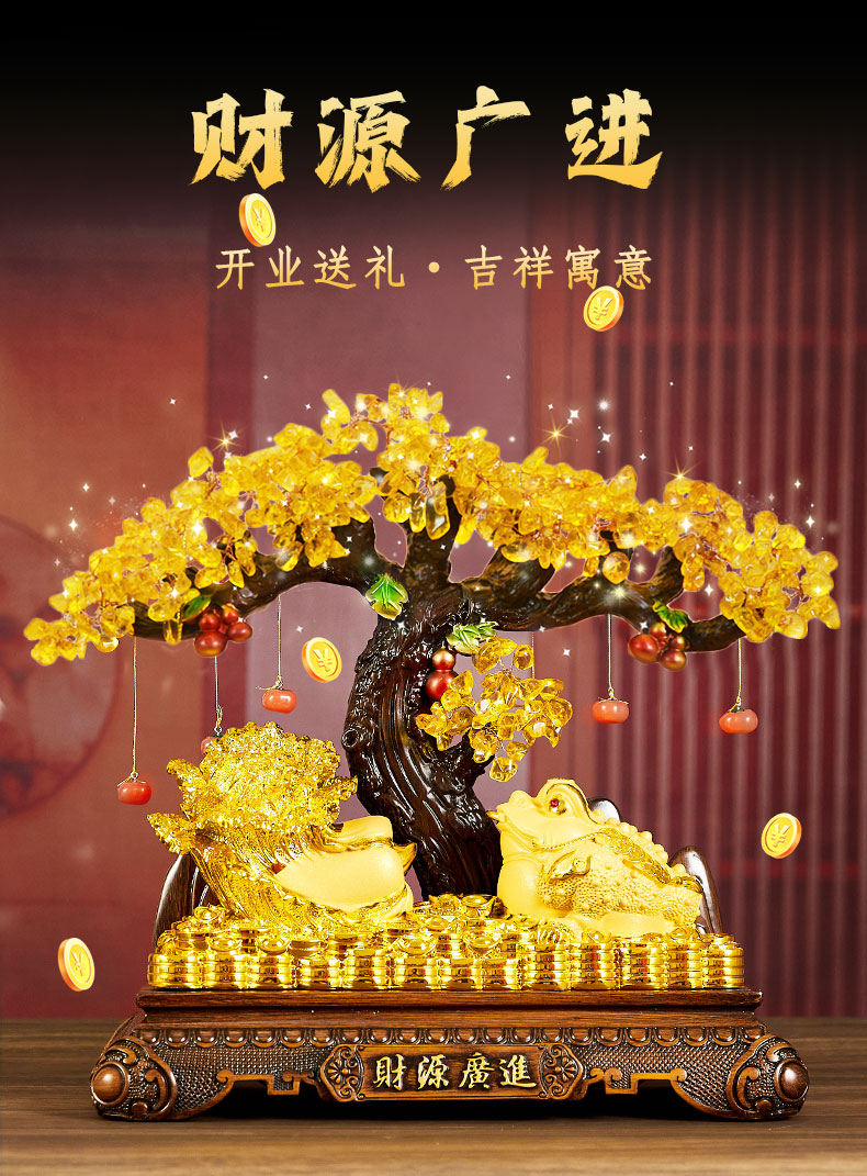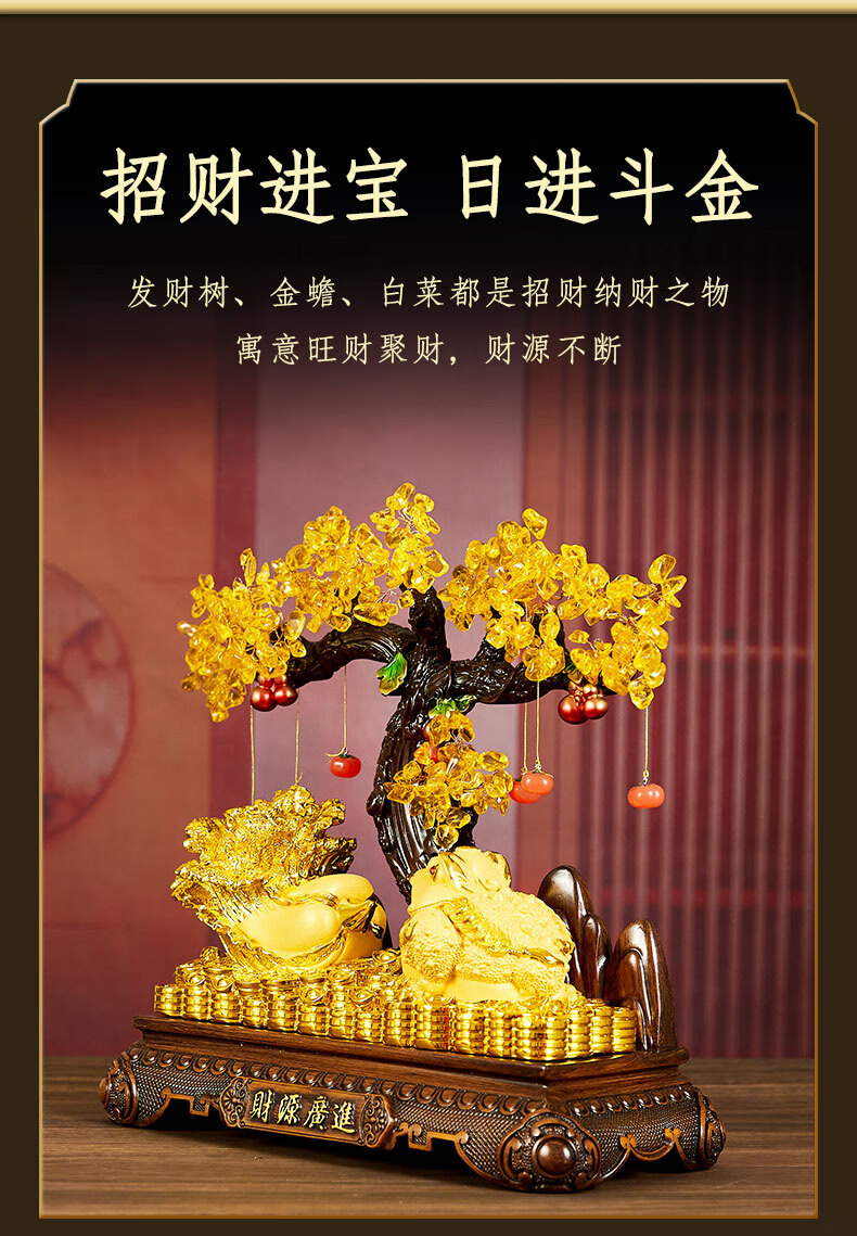铜雀天骄金蟾白菜发财树开业招财大摆件新店公司开业大吉礼物乔迁高档礼品 财源广进尺寸约35*15*36cm