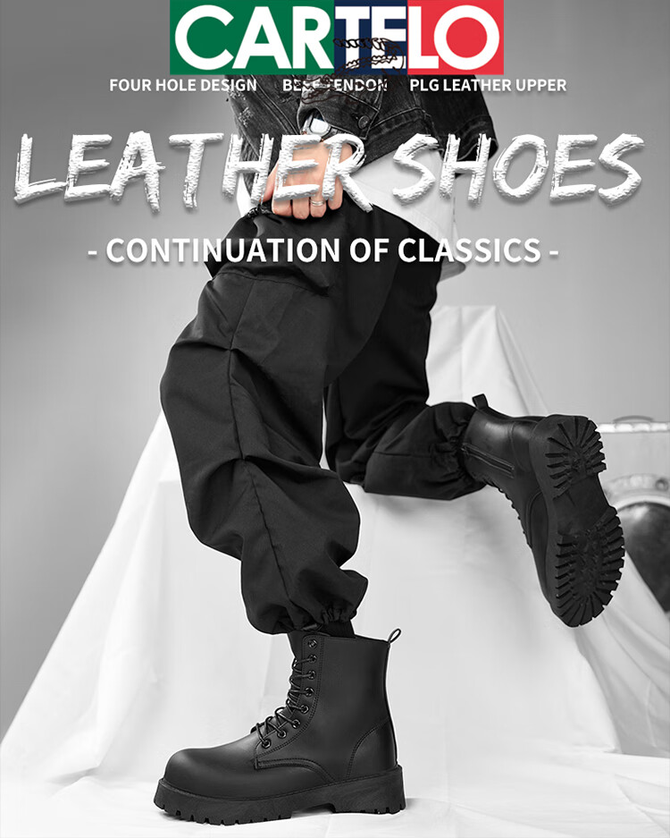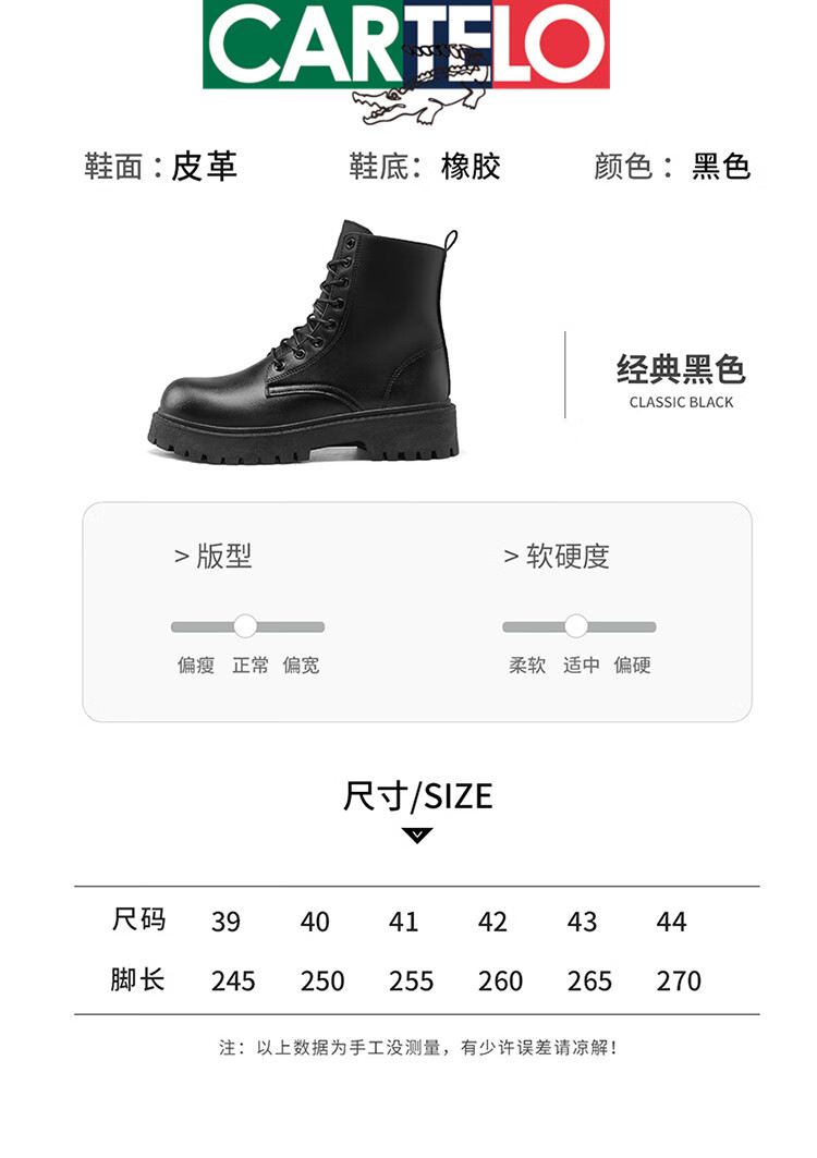 Cardile Crocodile Men's Martin Boots Spring Large Size 46 British Style Long Work Boots High Top Thick Sole Black Motorcycle Casual Leather Shoes Black X 40