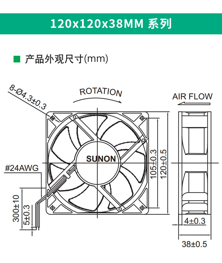 原装SUNON建准1225 1238 12V24V 12CM磁悬浮静音机柜机箱散热风扇 12038 24V 4200转 三线 PMD241