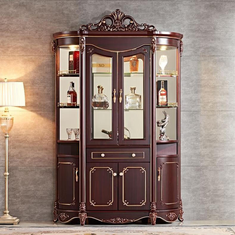 Zhen Yiju Vitrina de Vino de Estilo Europeo, Sala de Estar de Lujo de Alta Gama, vitrina con Puerta de Vidrio montada en la Pared, vitrina de Vino Tinto, aparador, gabinete Decorativo, gabinete de Comedor, marrón rojizo Oscuro 897# 1,35 Metros