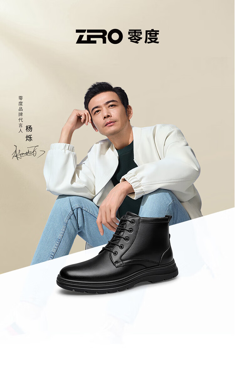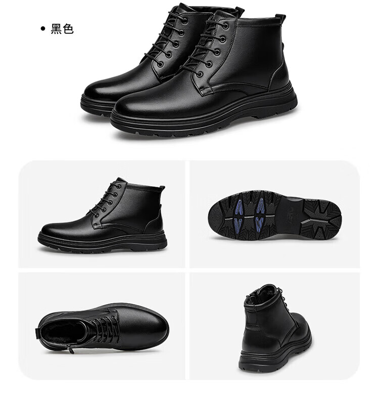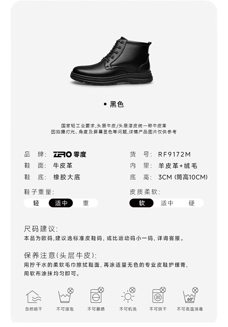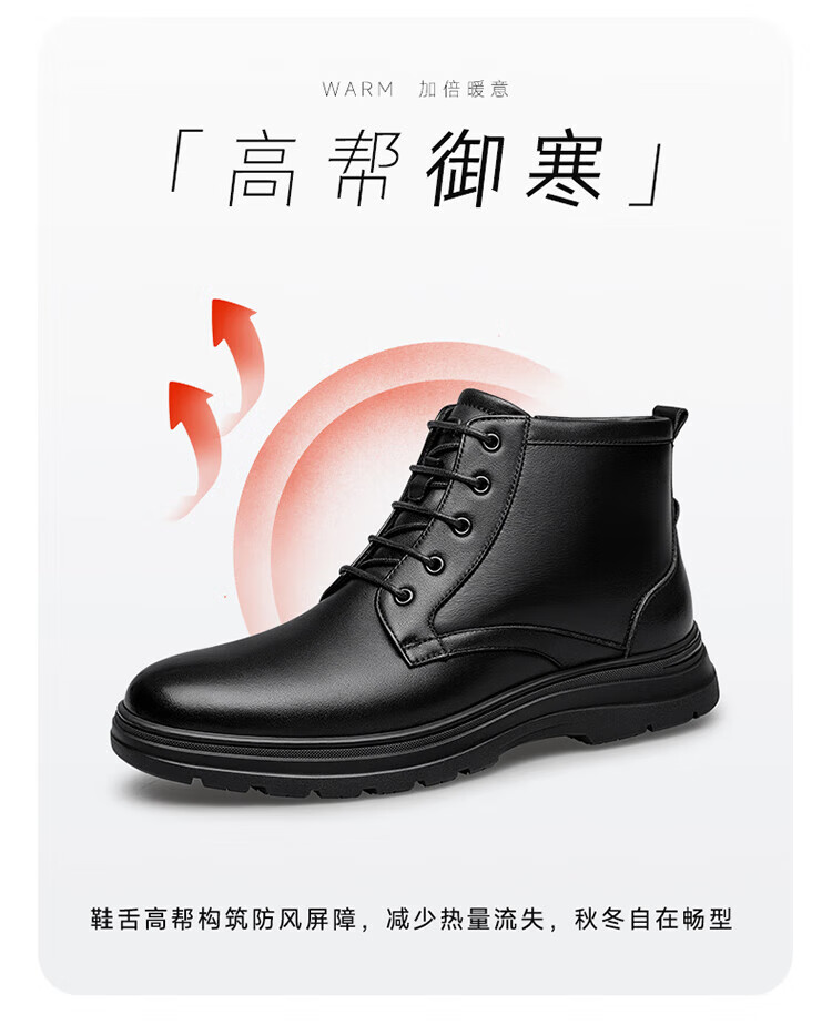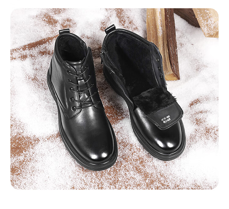 零度Zero马丁靴男秋冬新款高帮加绒保暖棉靴男士潮流百搭工装靴子 黑色 39