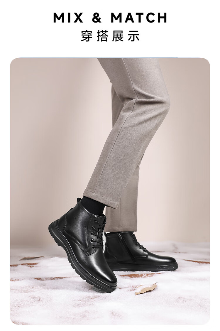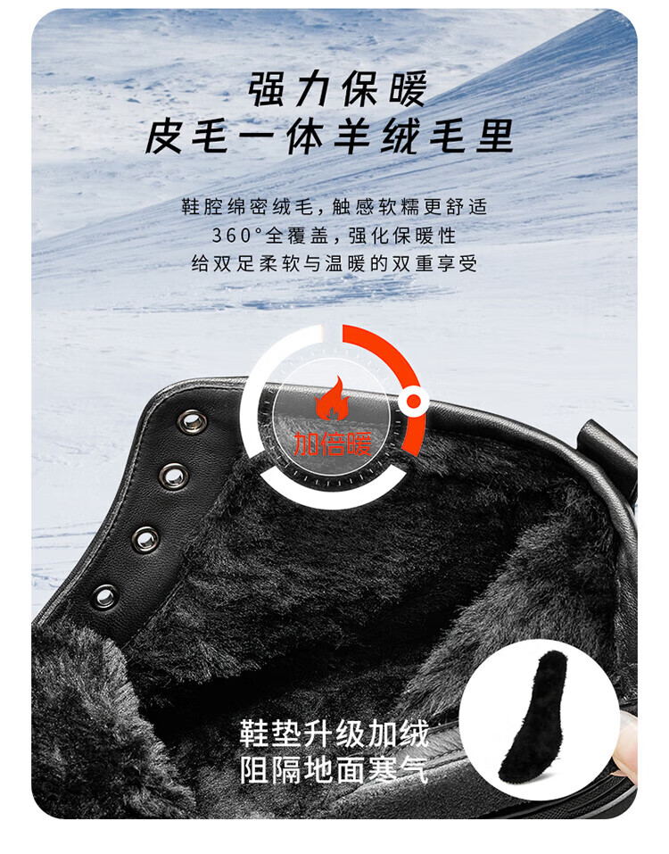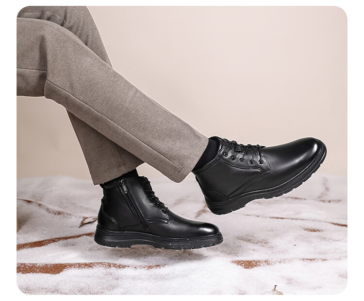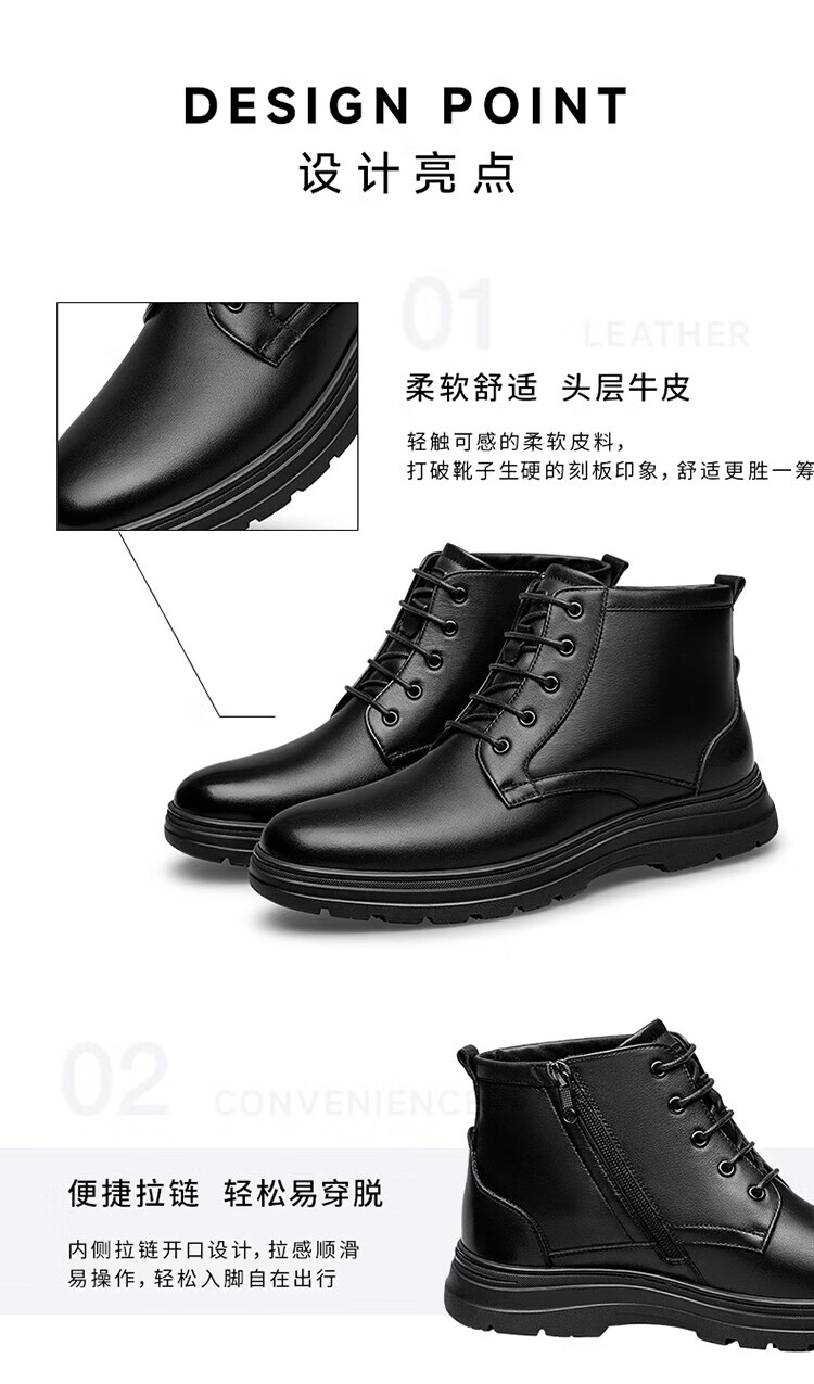 零度Zero马丁靴男秋冬新款高帮加绒保暖棉靴男士潮流百搭工装靴子 黑色 39