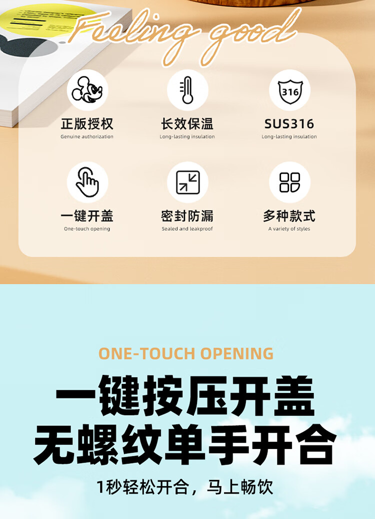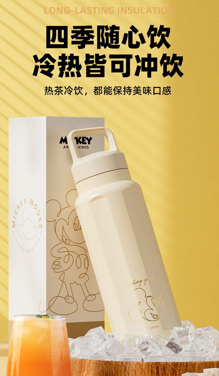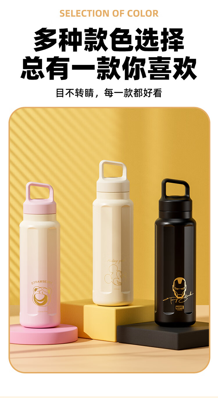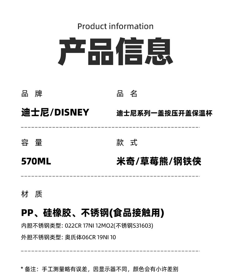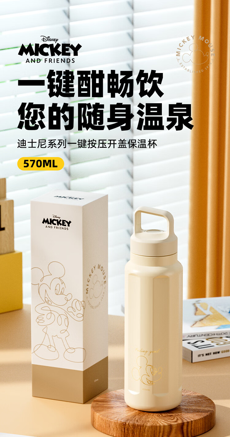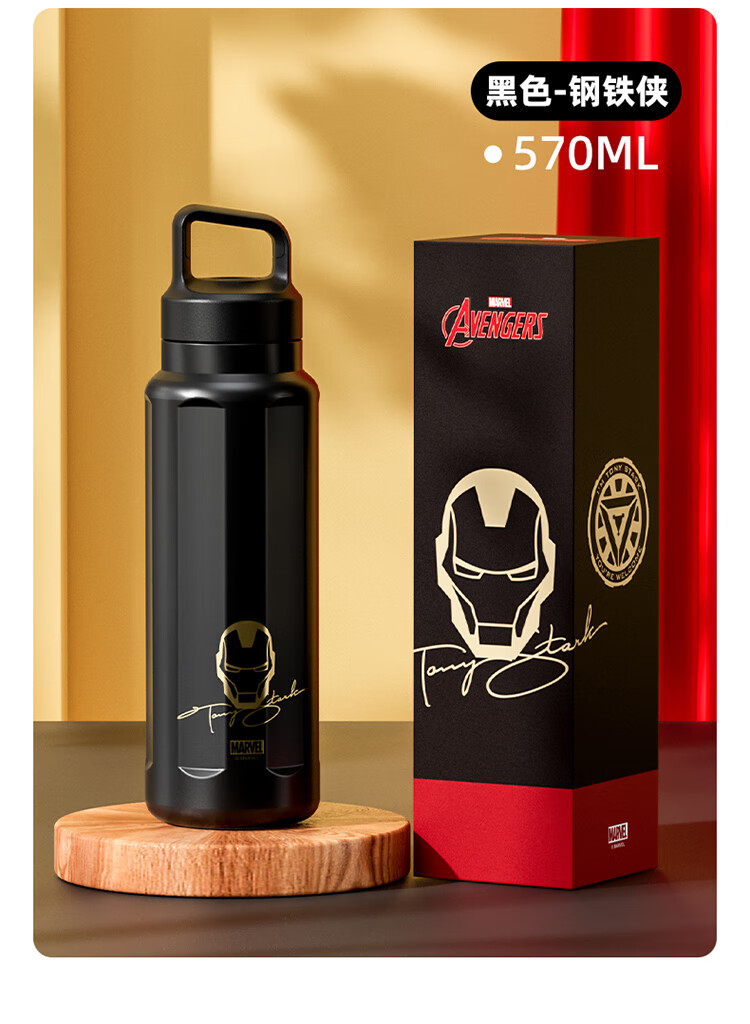 迪士尼迪士尼儿童保温杯316不锈钢直饮一键开盖小学生便携提手运动水杯 15042A2钢铁侠按压直570ml