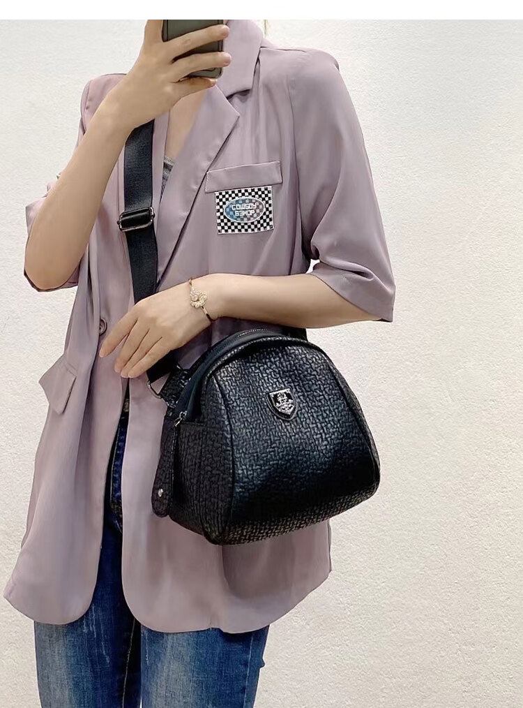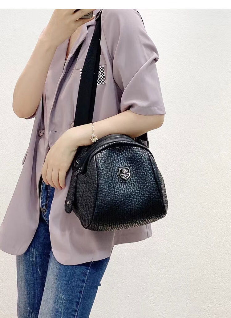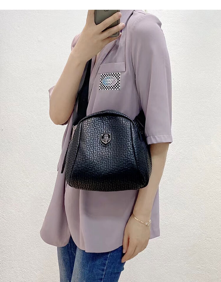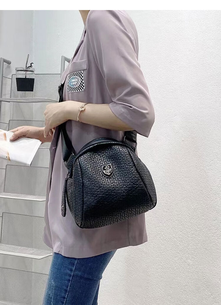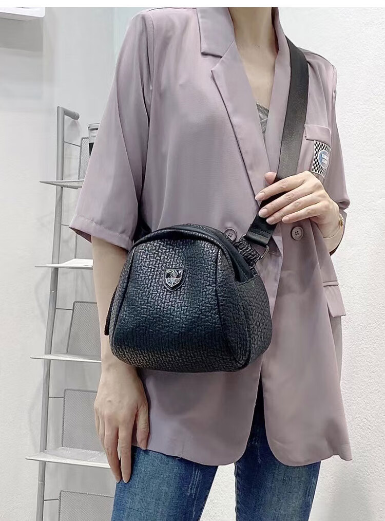 Kuqi Kangaroo Big Stomach Messenger Bag Women 2024 Summer New Fashion Shoulder Women's Bag Versatile Soft Leather Shell Bag Black Cowhide Letter Strap