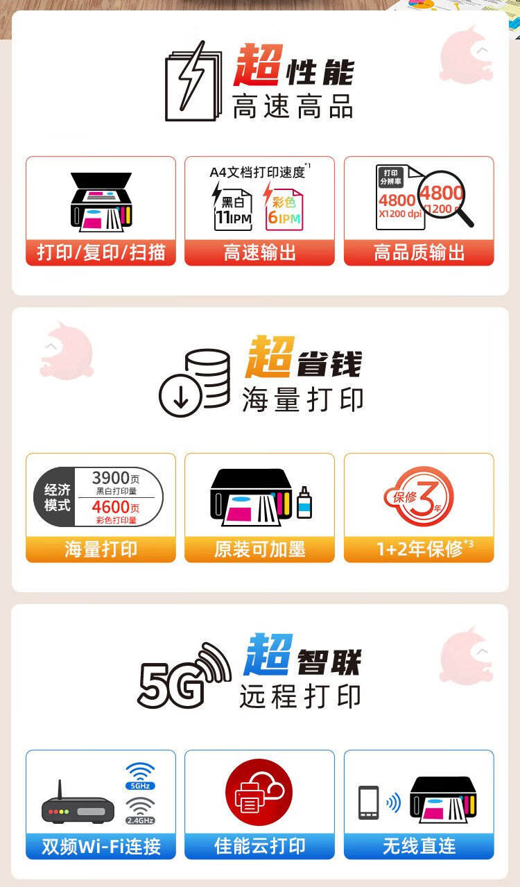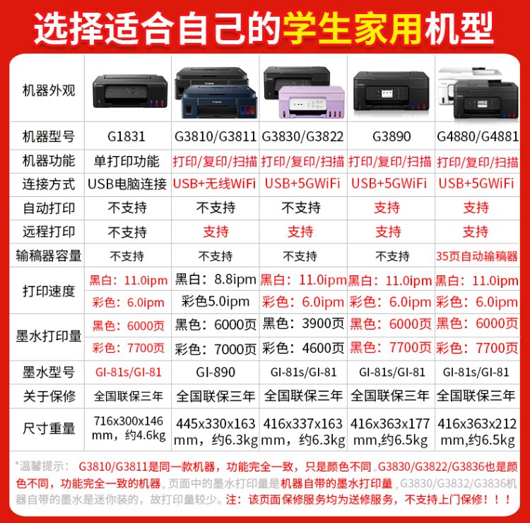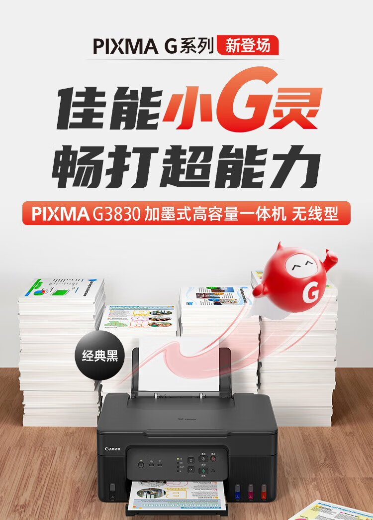 Canon (Canon) G3832 G3810 2810 G3811 G3830 Drucker, Tintentank, Tintenstrahldruck, Kopieren und Scannen, All-in-One-Gerät für Farbfotos, Zuhause, kleines Gewerbe, Büro, G3830 Schwarz, 5G Wireless Remote Drucken/Kopieren/Scannen, offizielles Standardgerät + 1 Satz Originaltinte, die im Lieferumfang enthalten ist, insgesamt 4 Flaschen