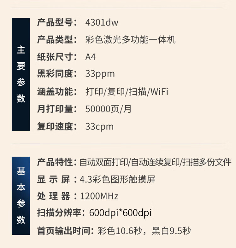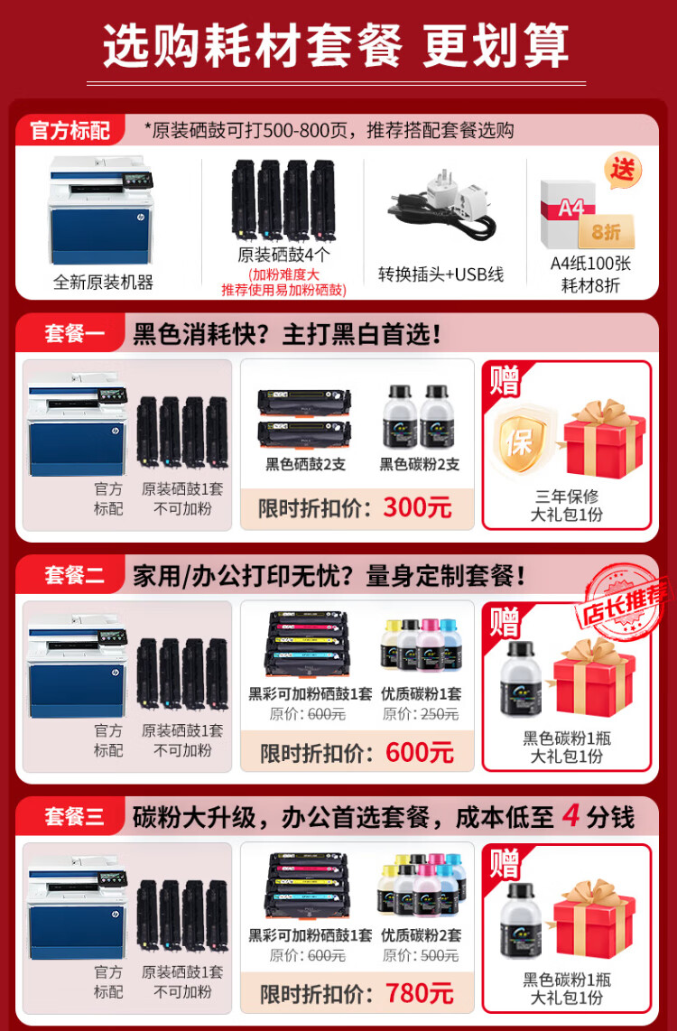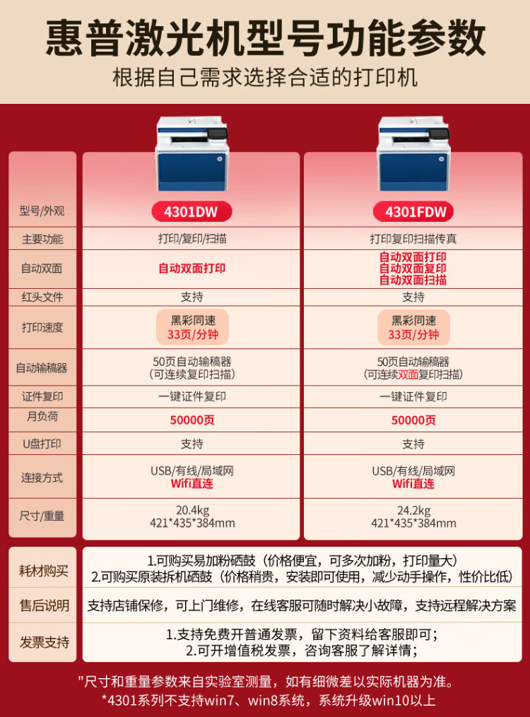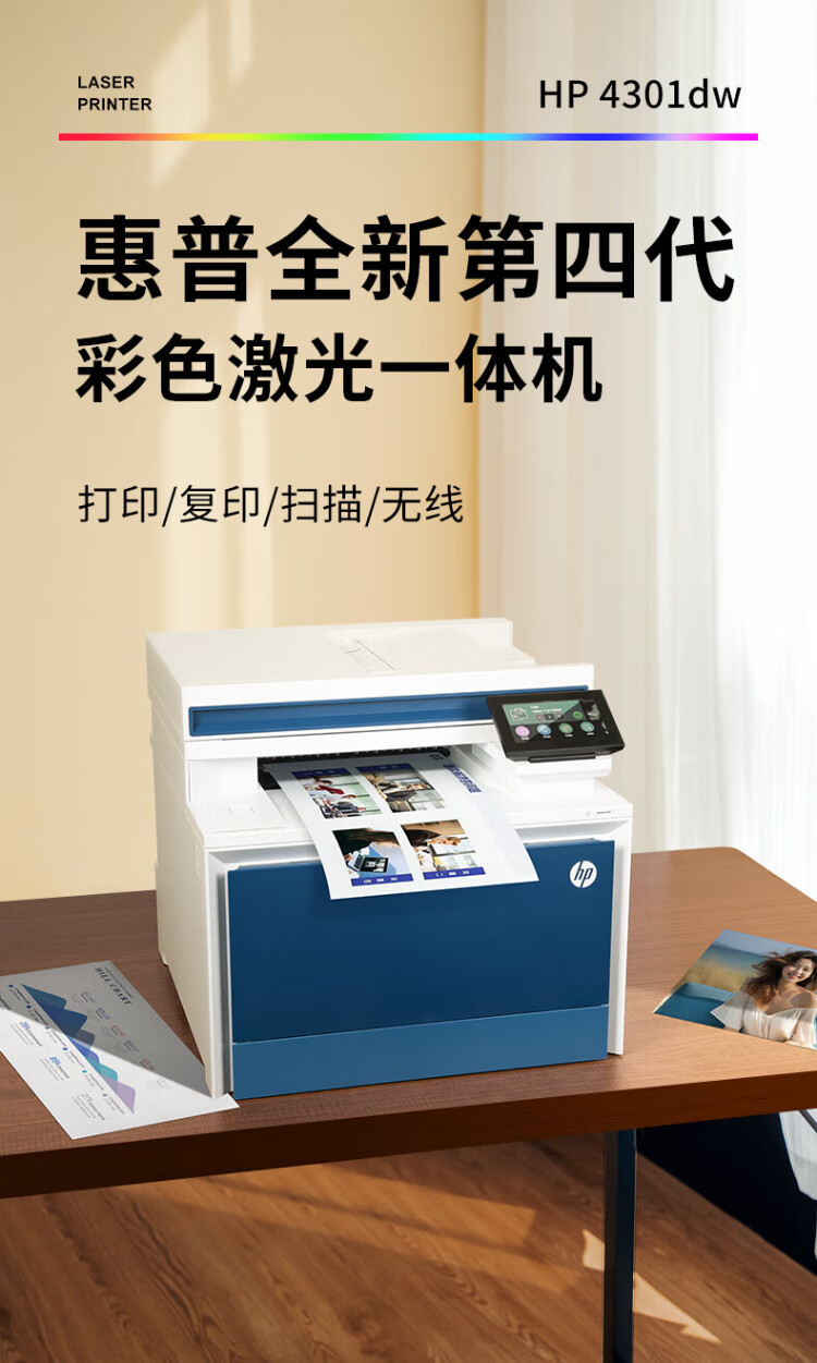 HP A4 Farblaserdrucker 4301dw/4301/4303/3303fdw/4101fdw automatischer doppelseitiger Druck, Kopieren, Scannen, Faxen, Mobiltelefon, kabelloses Multifunktionsbüro, 4301fdw kabelloser Vier-in-Eins + vollautomatischer doppelseitiger Druck, 33 Seiten/Min., Paket 2 Standard + 4 Tonerkartuschen + 5 Flaschen Toner