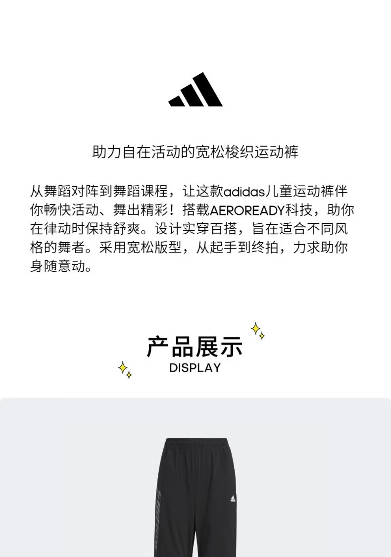 Adidas children's clothing spring boys and big children loose version woven trousers wide leg sports trousers JP3899 JP3899 152 cm