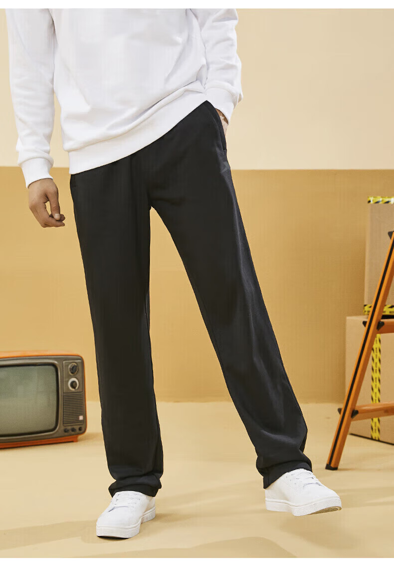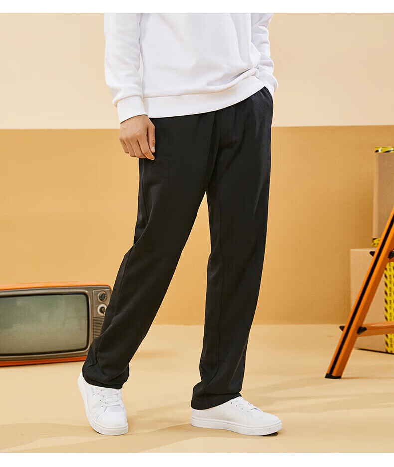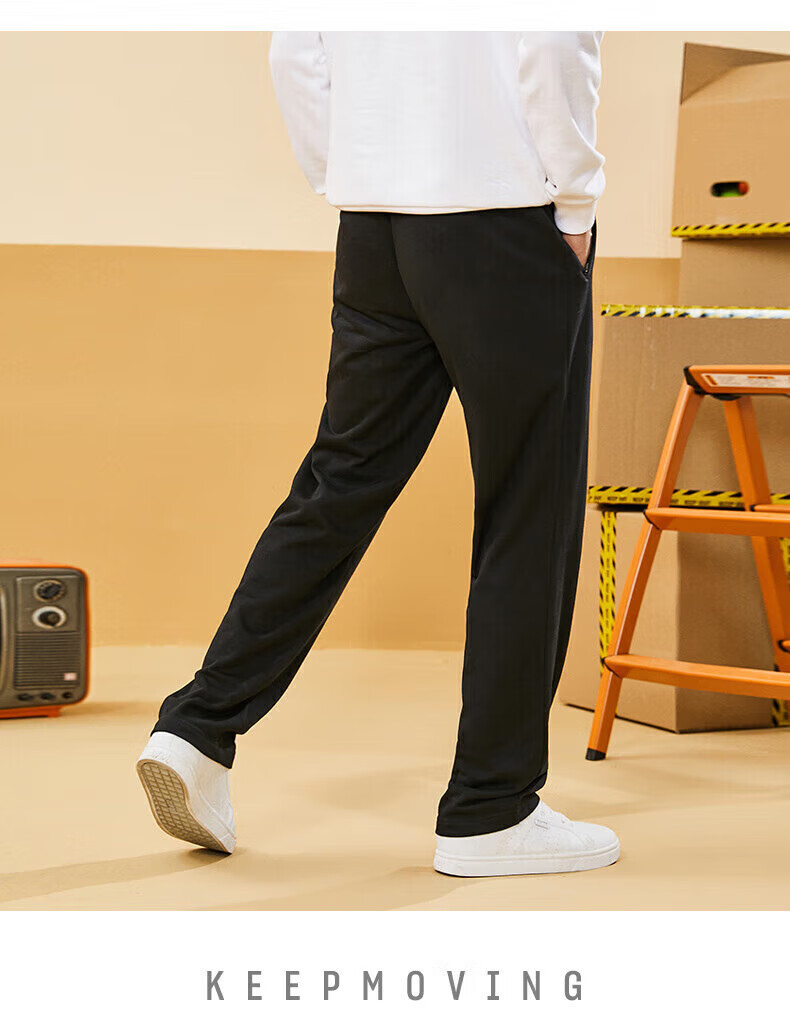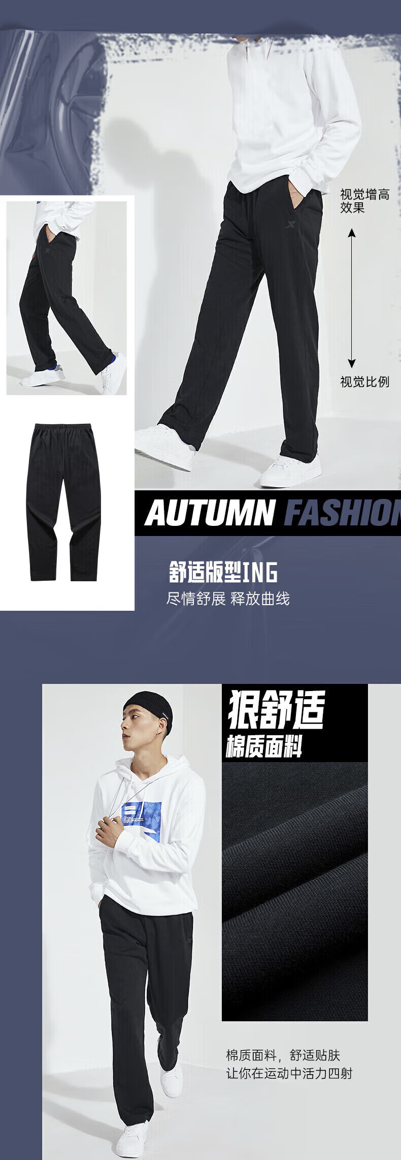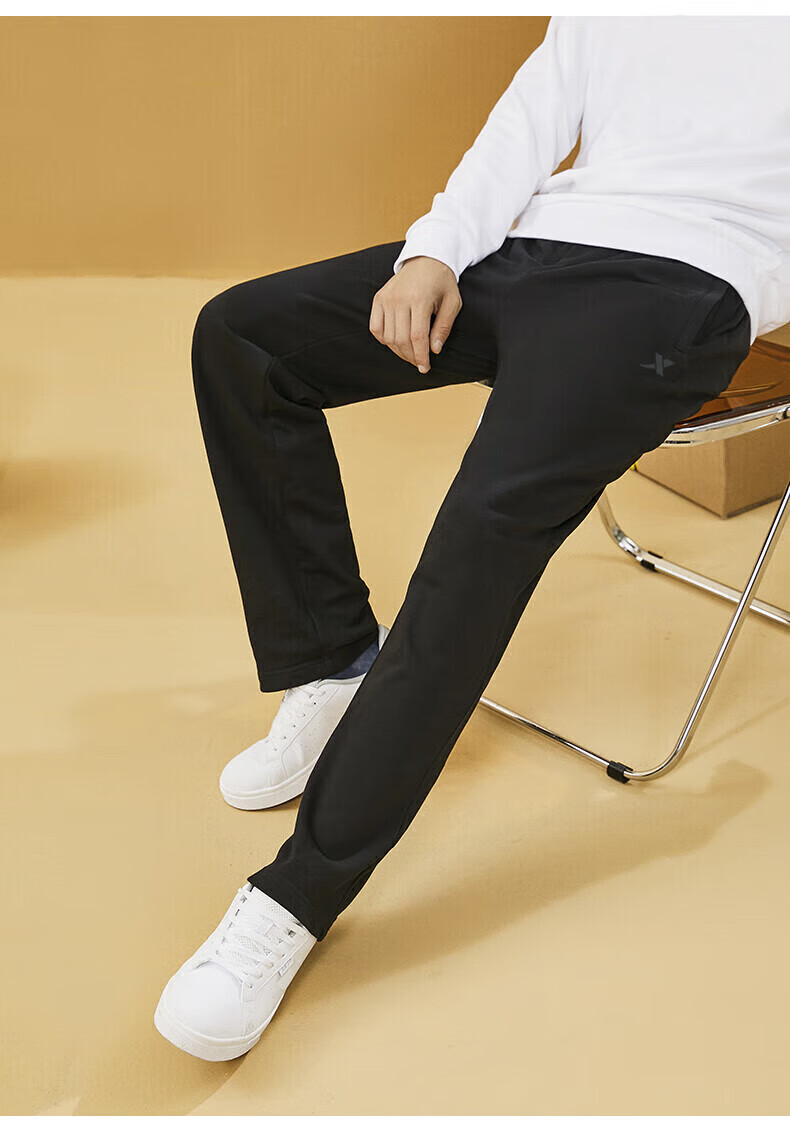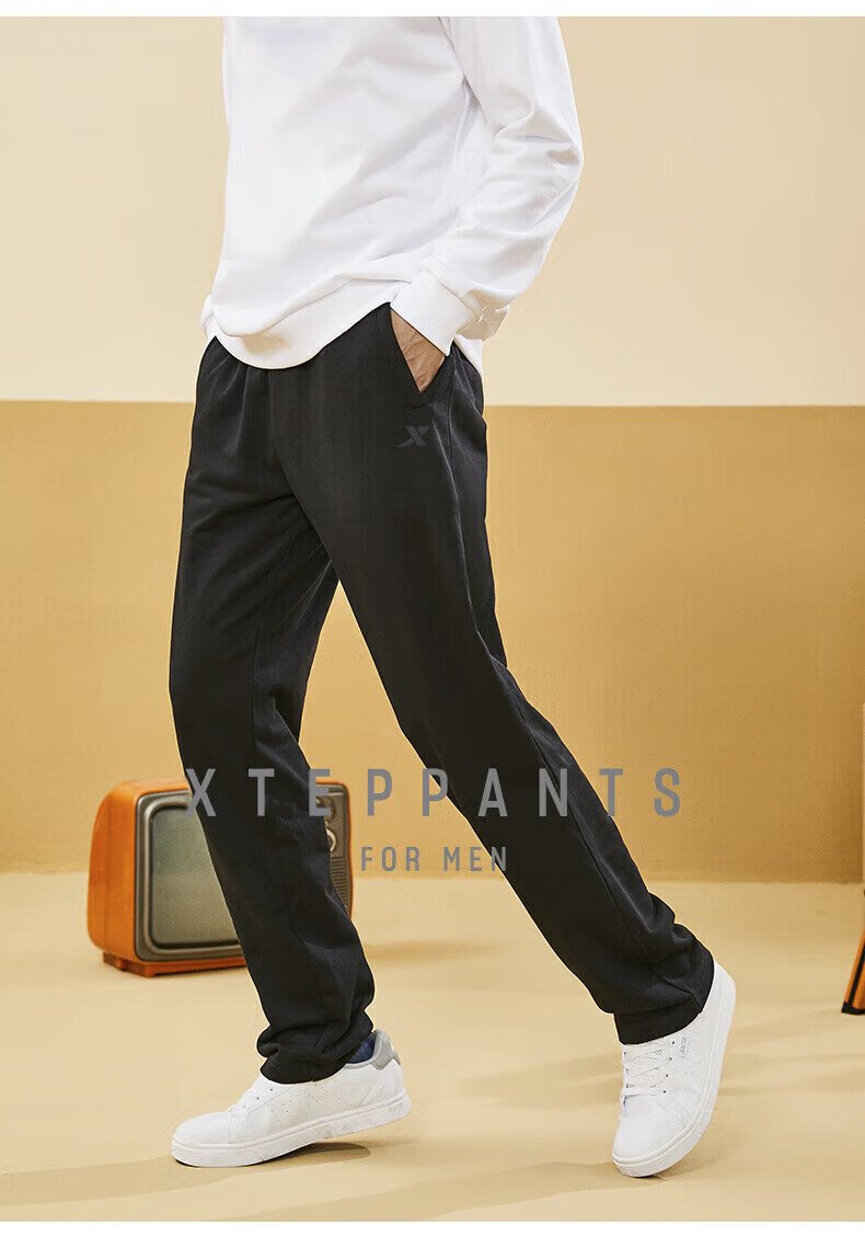 特步(XTEP)直筒运动裤男裤秋冬季男士宽松针织卫裤跑步长裤垂感休闲裤子黑色 针织长裤-黑【春秋款】 XL