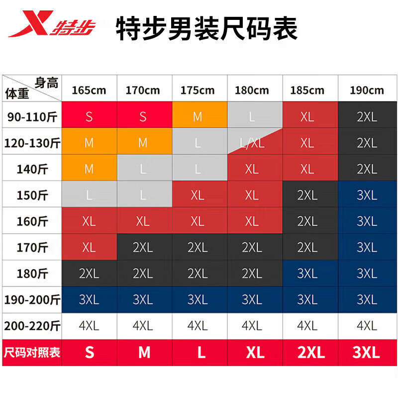 China (cm) 165 / 88-90 170 / 96-98 175 / 108-110 180 / 118-122 185 / 126-130