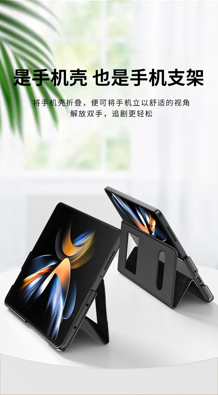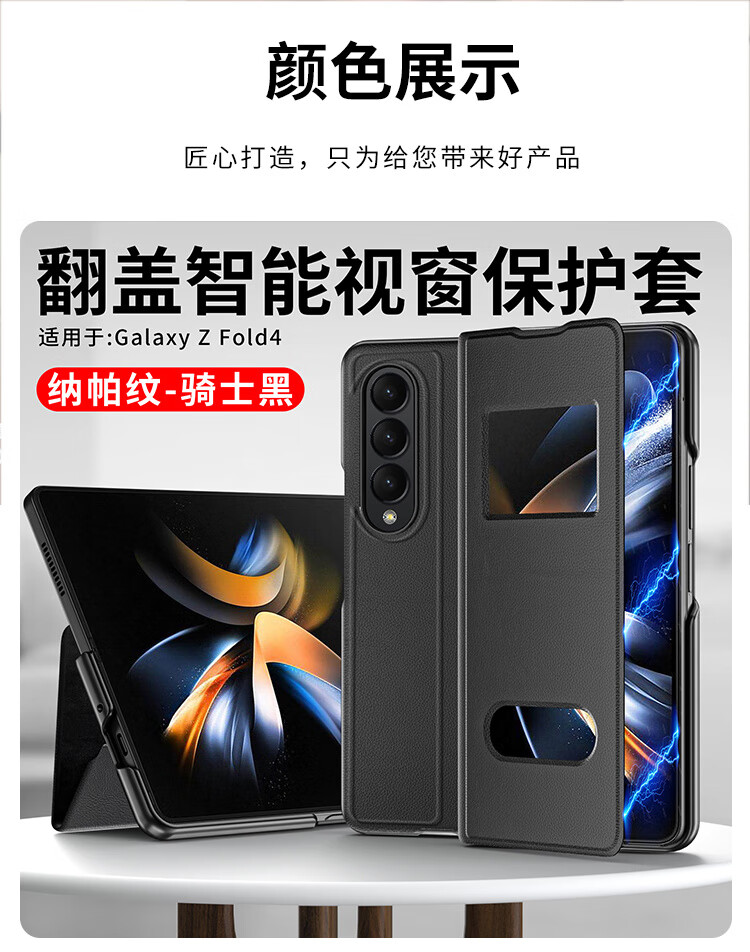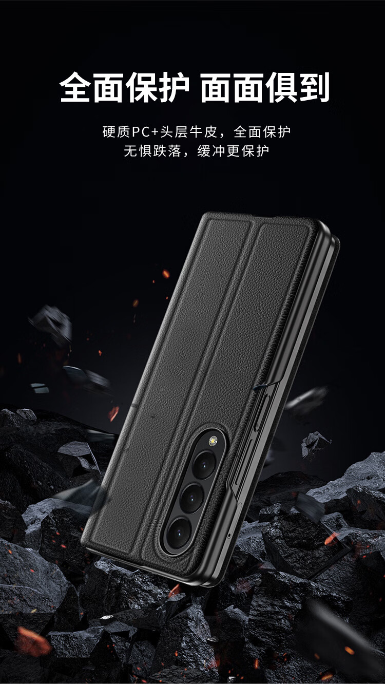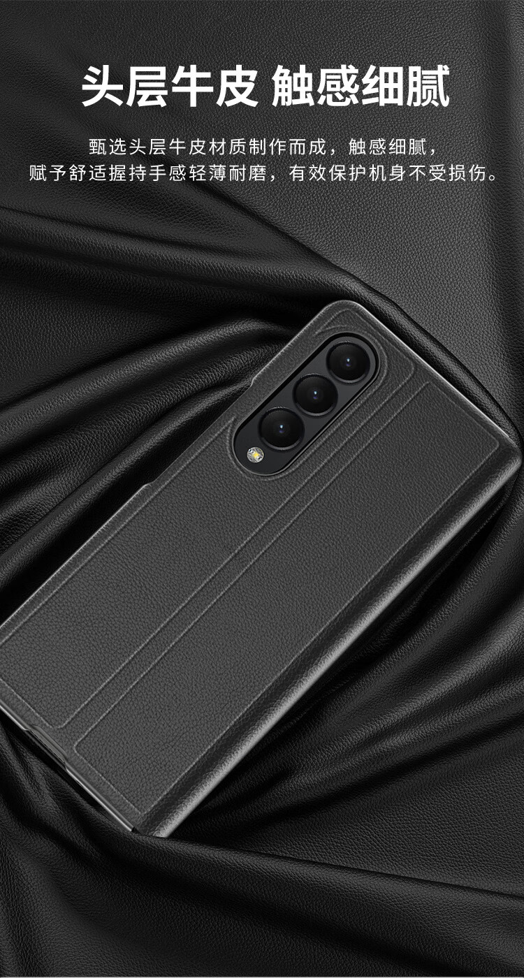 Suitable for Samsung fold4 folding screen mobile phone case flip w23fold5 thin stand genuine leather w22 protective case anti-window flip leather case knight black Samsung Fold5/W24