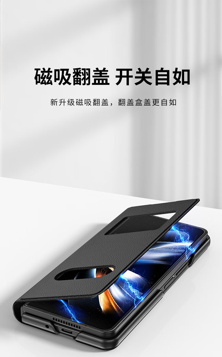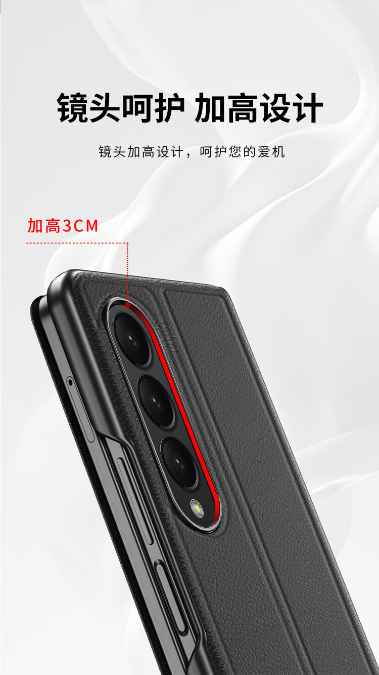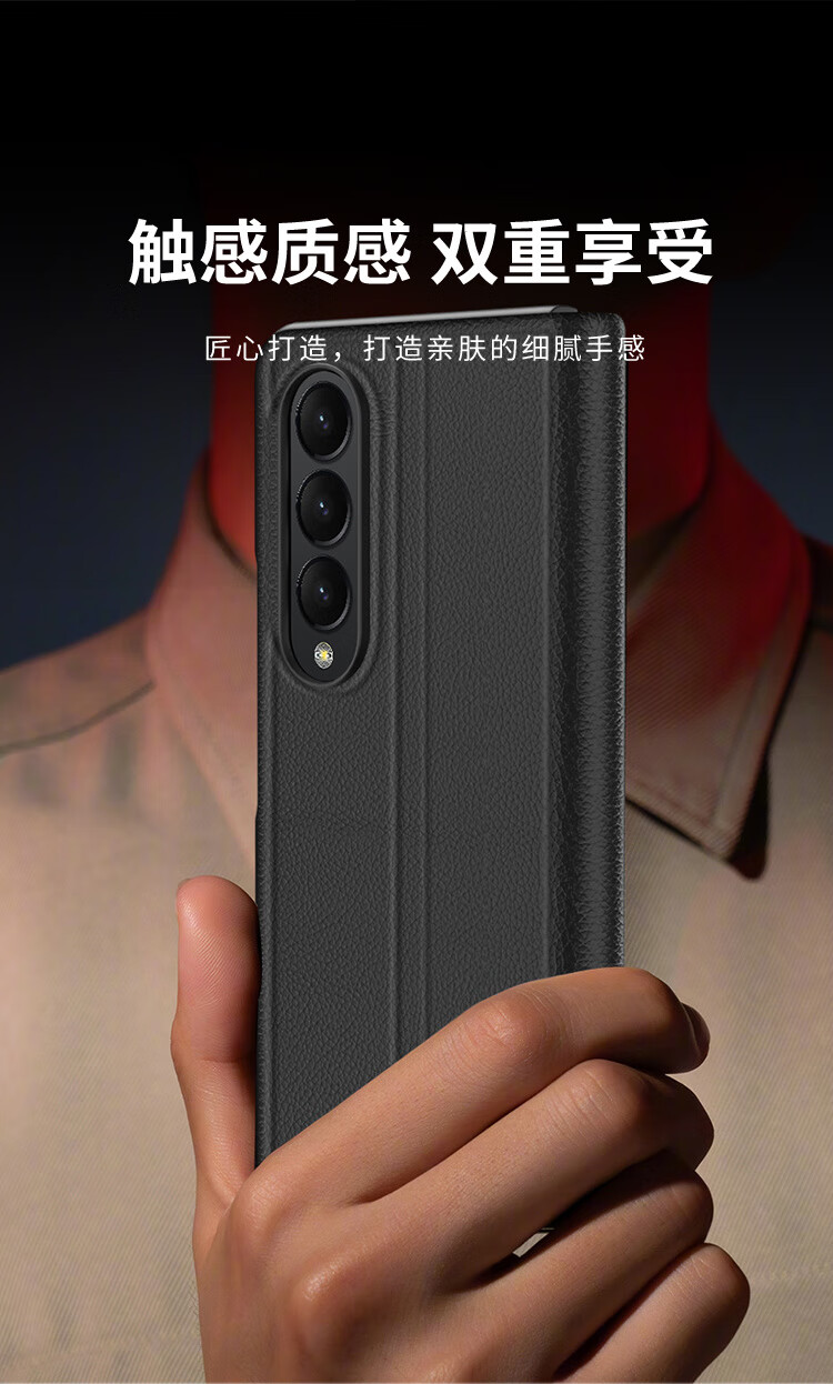 Suitable for Samsung fold4 folding screen mobile phone case flip w23fold5 thin stand genuine leather w22 protective case anti-window flip leather case knight black Samsung Fold5/W24