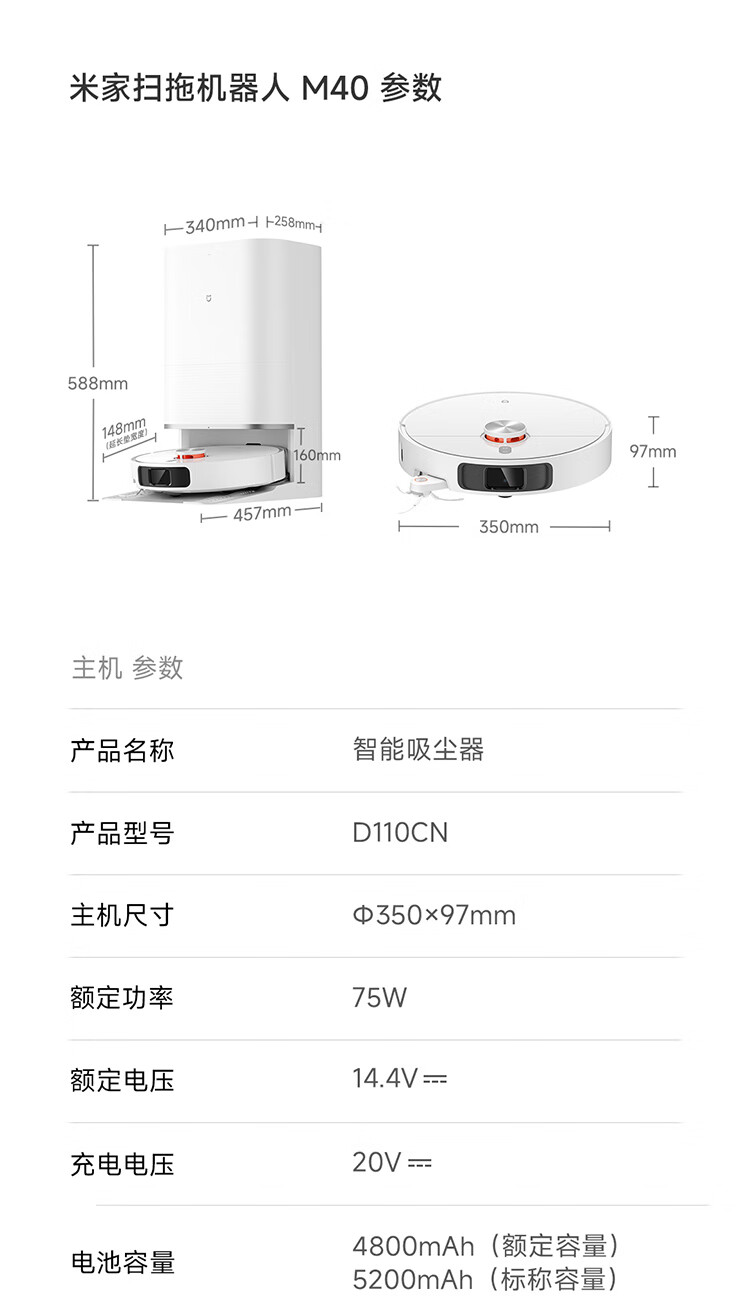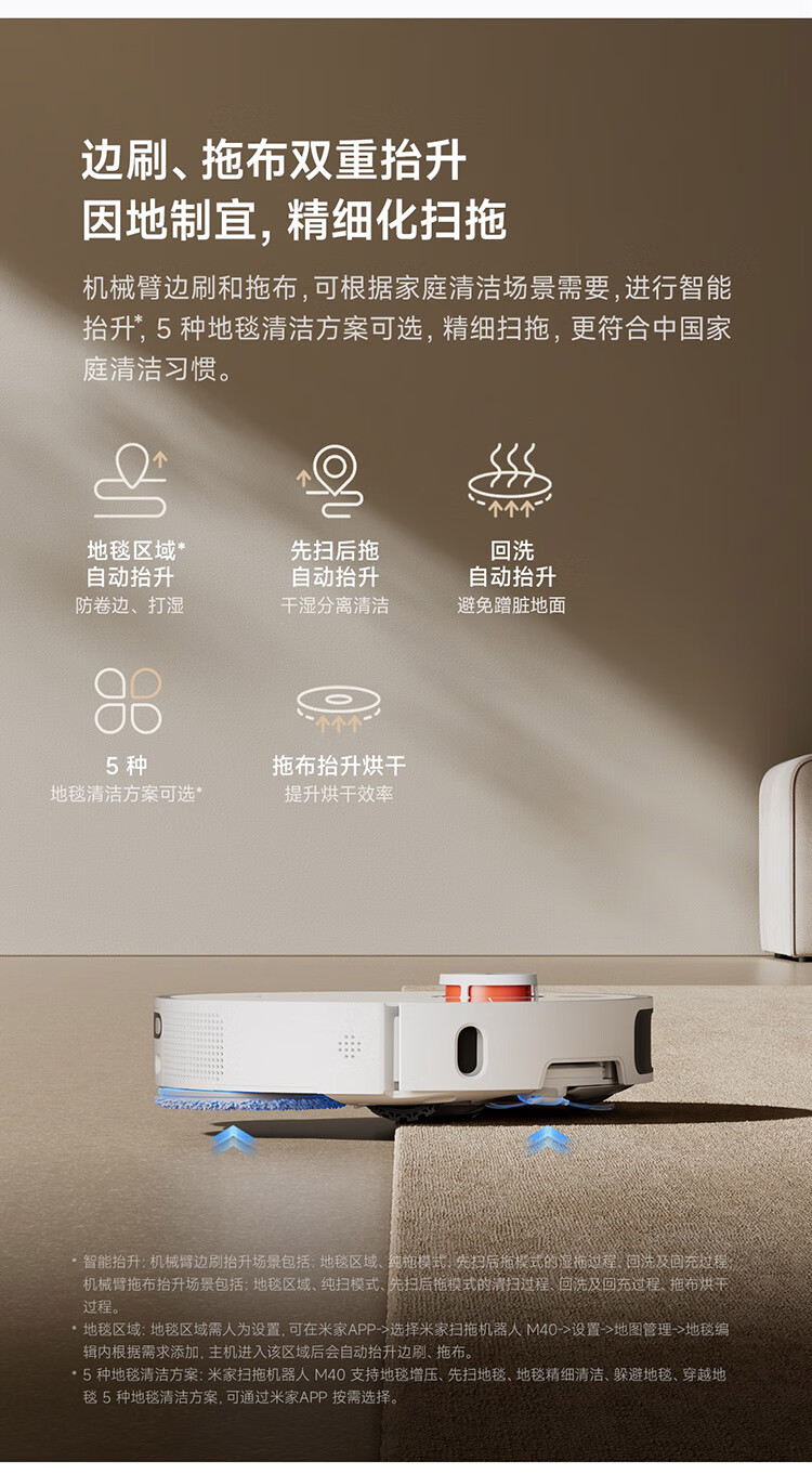 米家小米扫拖机器人M40 扫拖洗烘一体机 自动集尘热水洗拖布热风烘干补水仿生双机械臂扫地机器人 米家扫拖机器人 M40