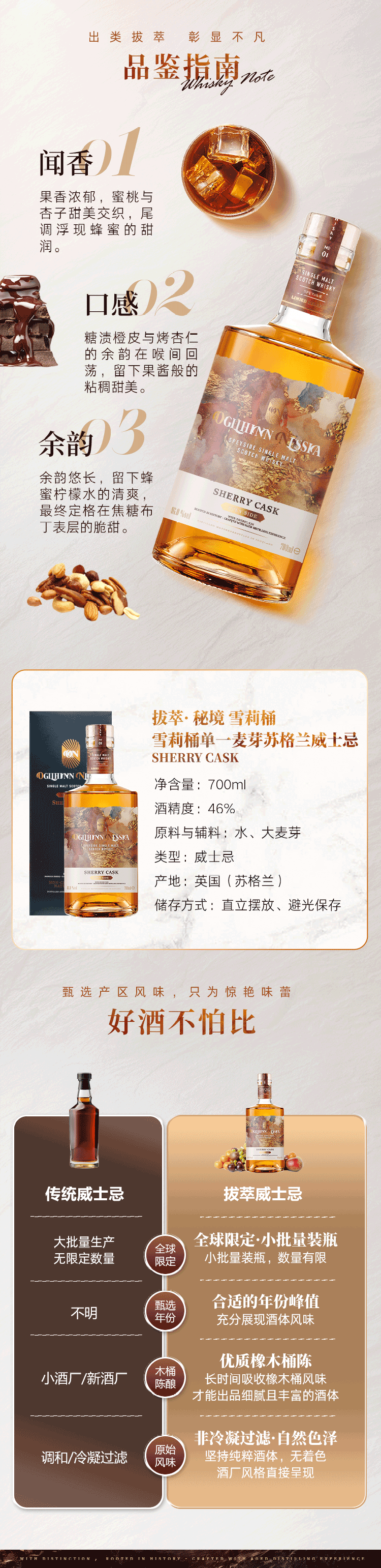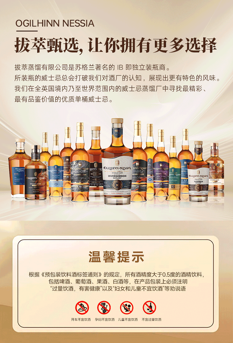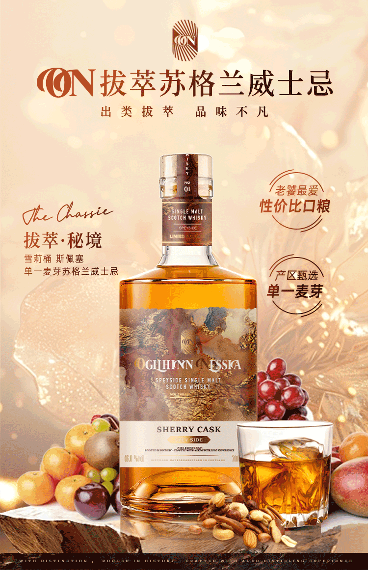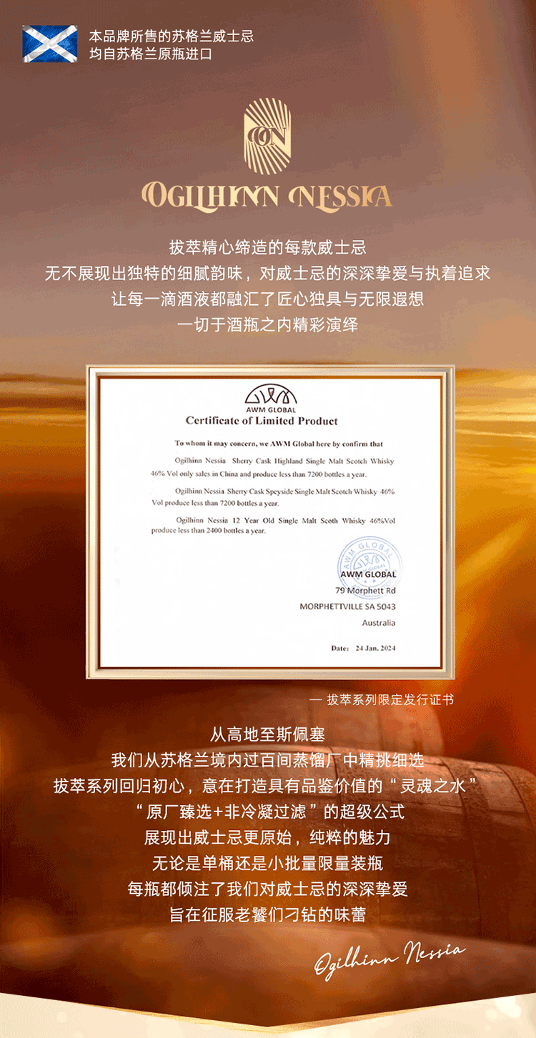Ogilhinn Nessia拔萃【全球限定】苏格兰原瓶进口单一麦芽雪莉桶洋酒威士忌送礼 3-6年秘境威士忌700ml