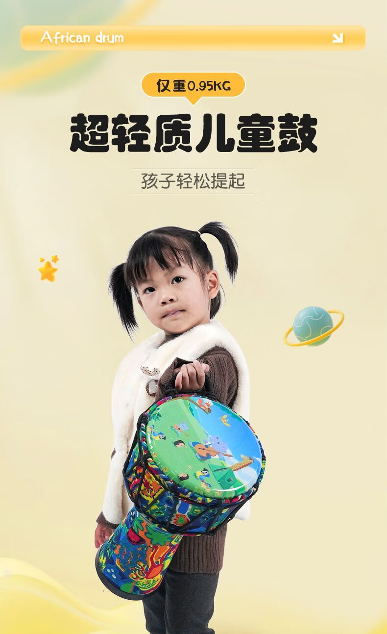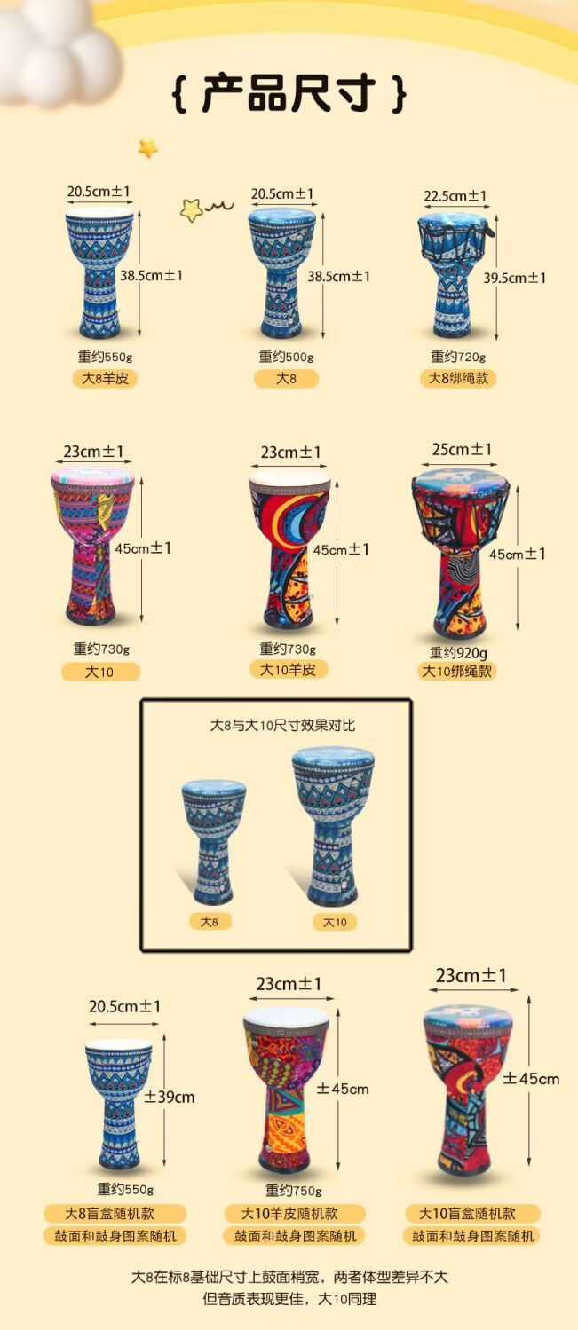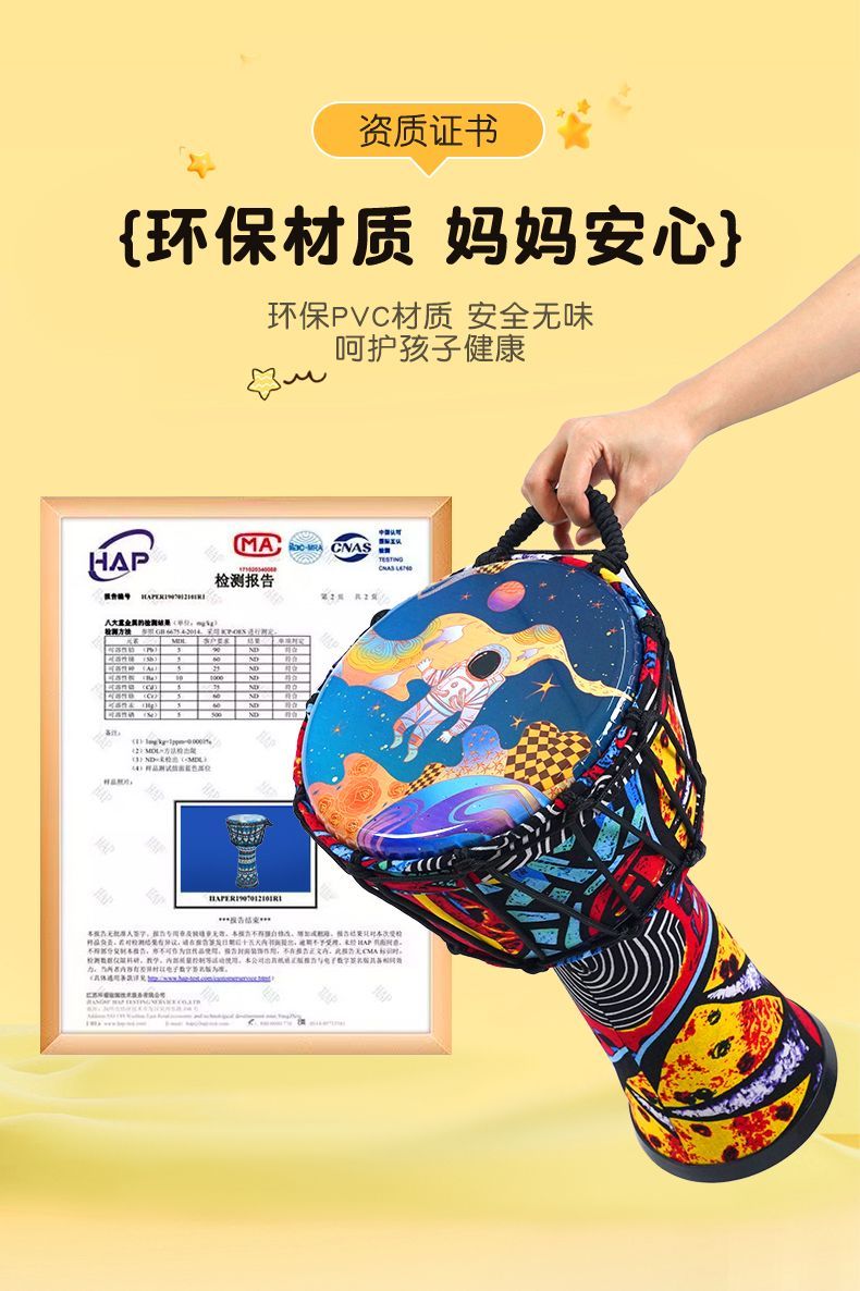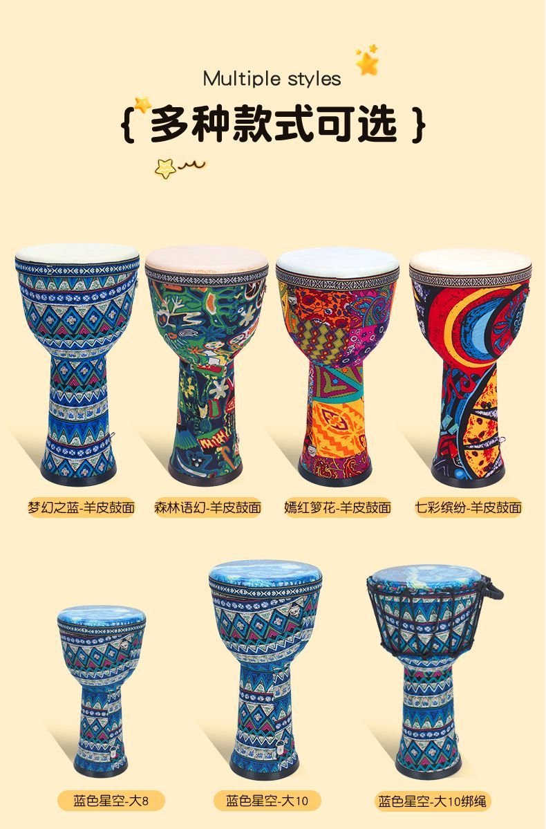 Inoyi learns African drum kindergarten children's toys professional percussion instrument 8-inch 10-inch hand drum beginner portable big 8 fabric spacewalk drum head thickened model + full set of accessories