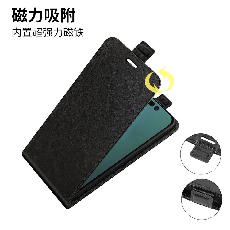 适用苹果14promax手机壳iphone15/13翻盖支架手机保护壳套防摔全 黑色 iPhone 15