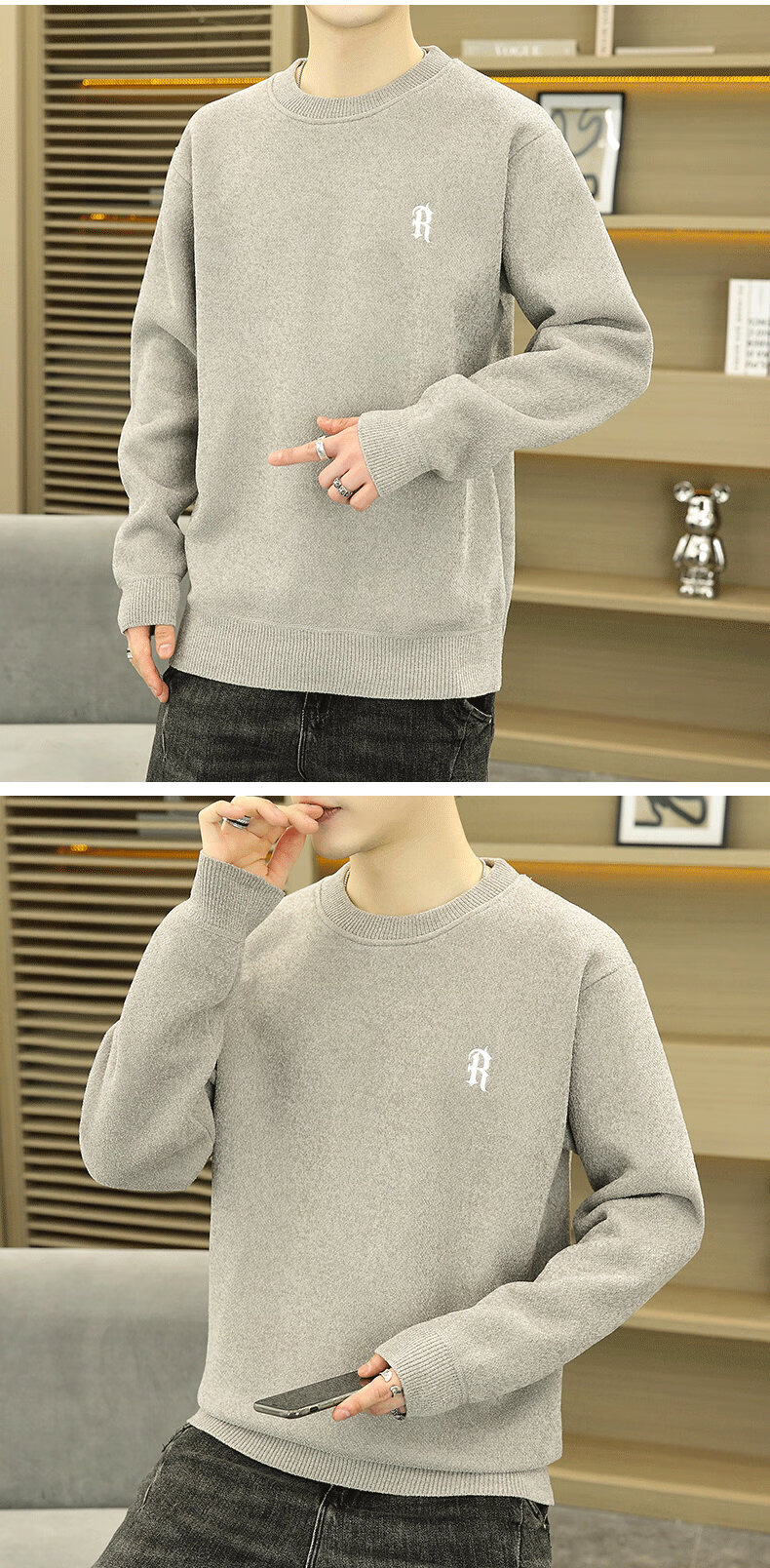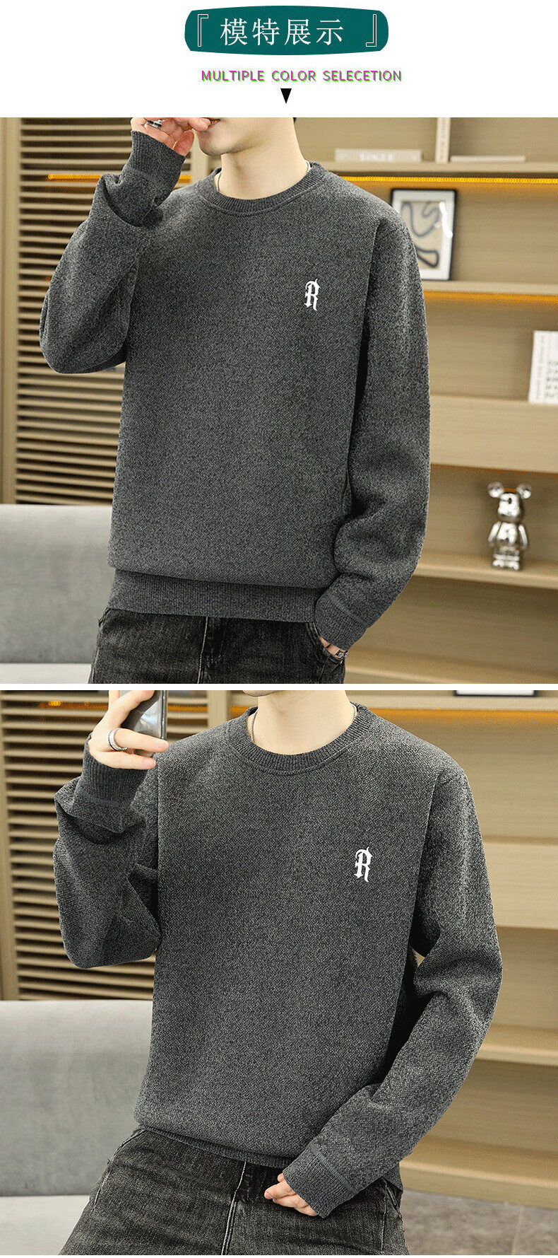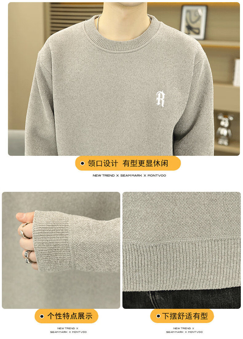 Дятел (TUCANO) мужской свитер с круглым вырезом плюс бархатный и утолщенный цельный бархатный свитшот осенне-зимний теплый универсальный шерстяной свитер большого размера R-образной формы 7029 бежевый 165/XL