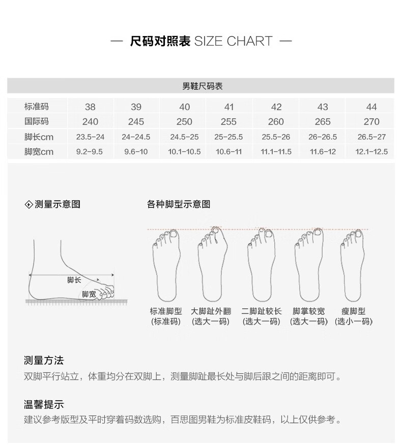 China (cm) 36 - 37 38 - 39 40 - 42 43 - 44 45 - 47