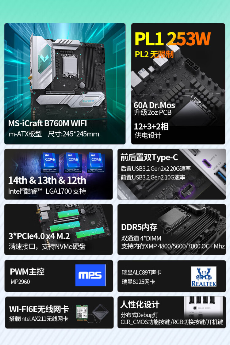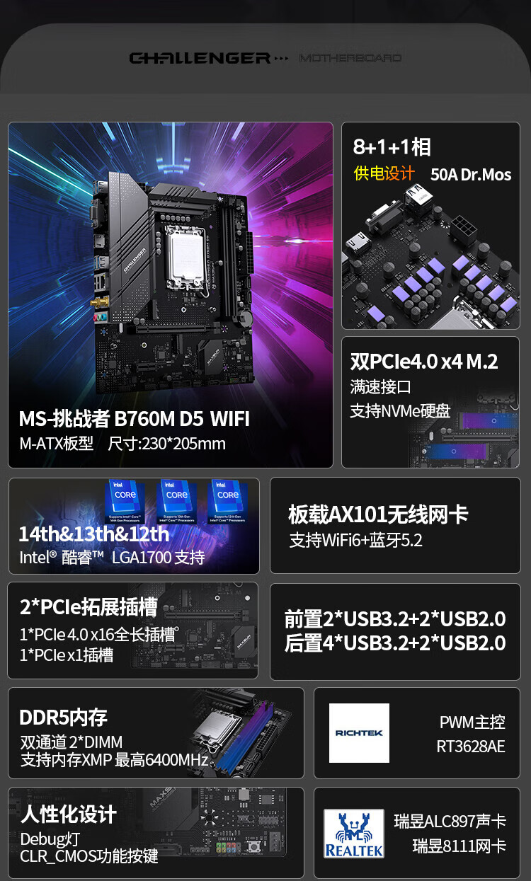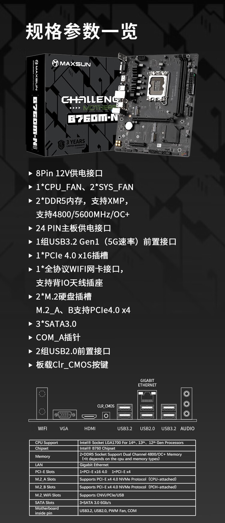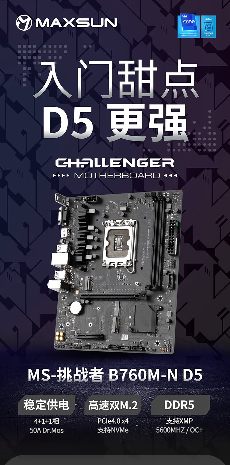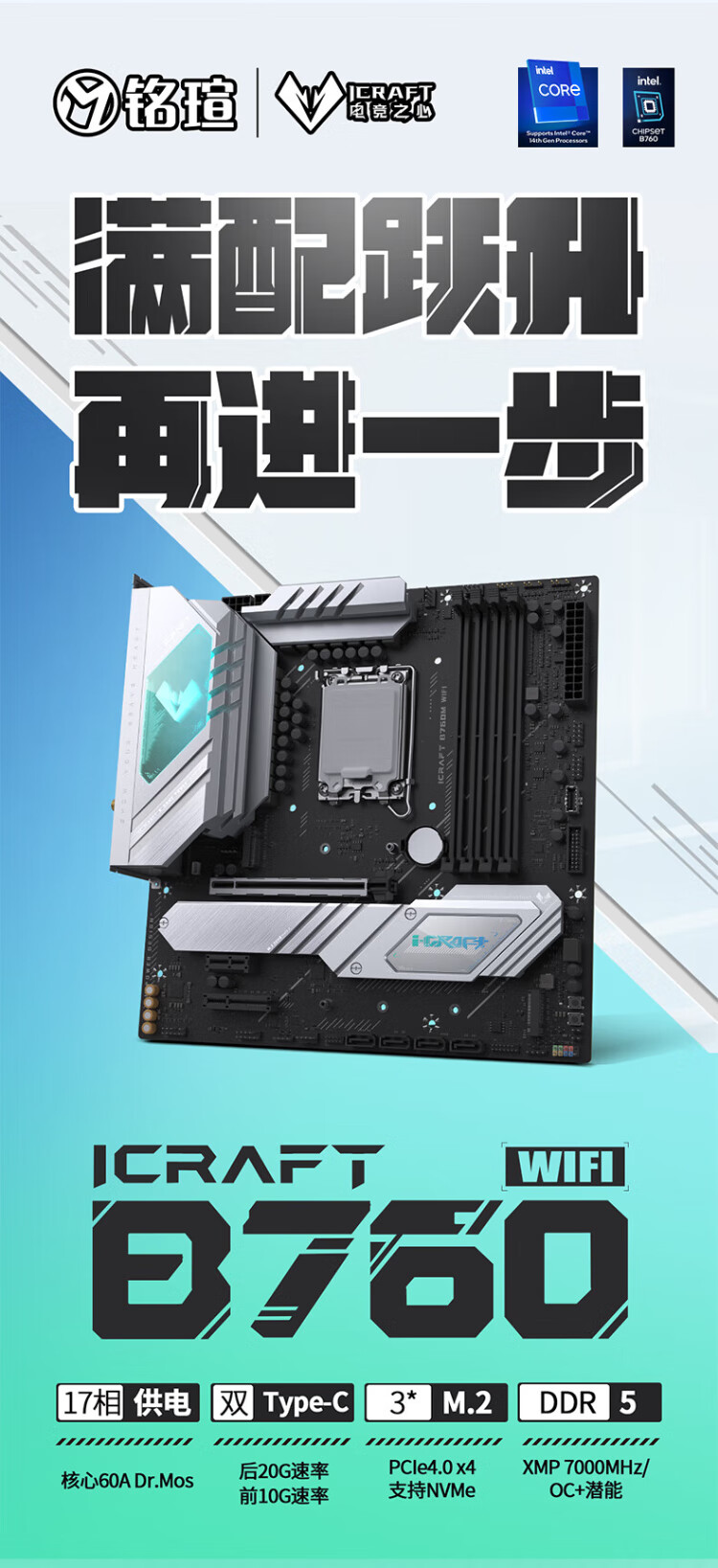 英特尔(Intel)13代酷睿CPU 铭瑄B760电竞之心/挑战者主板CPU套装 板u套装 电竞之心 B760M 瑷珈CROSS D5 i7-13790F 盒装