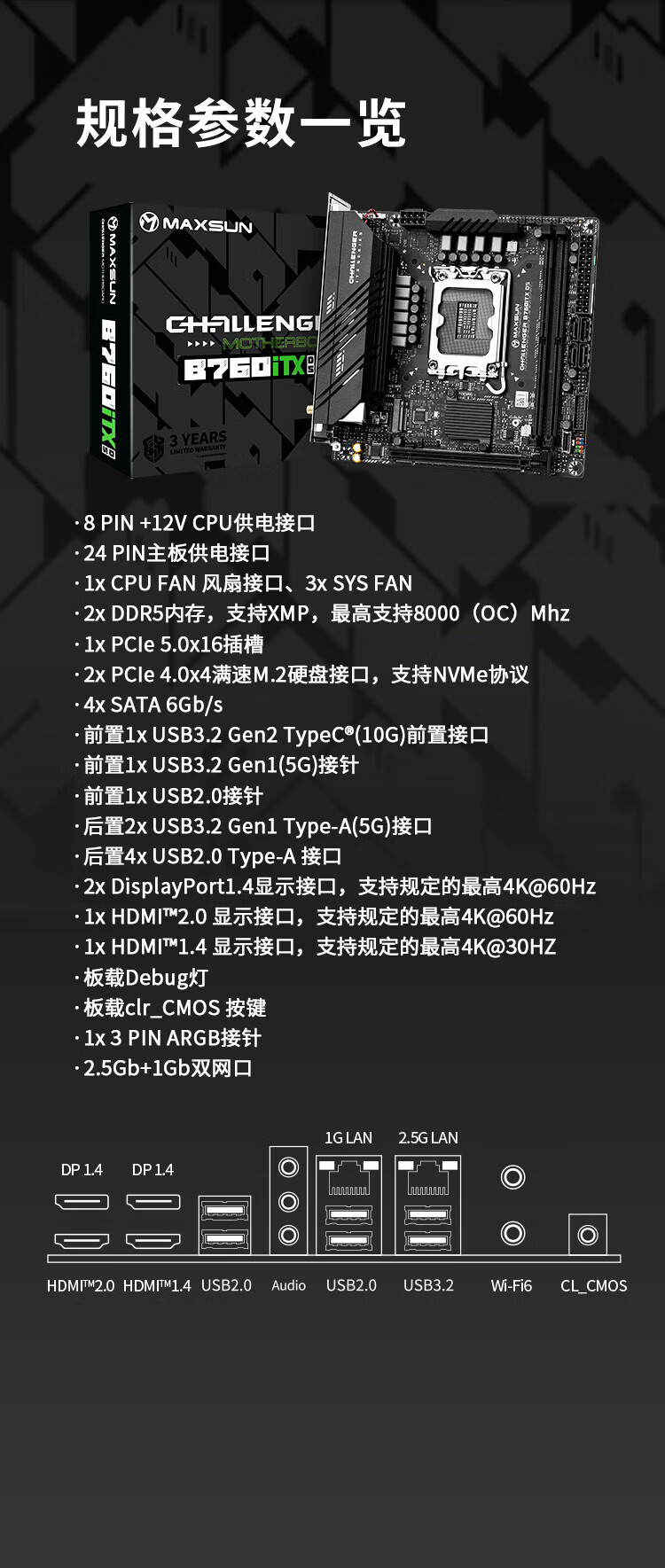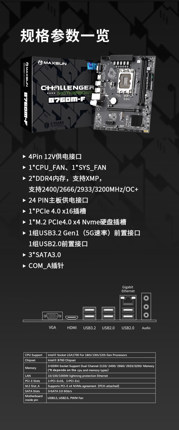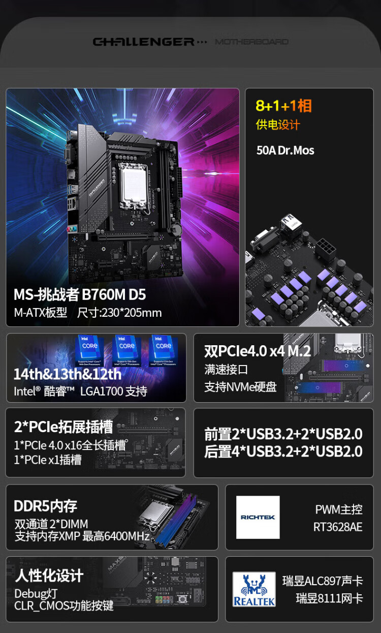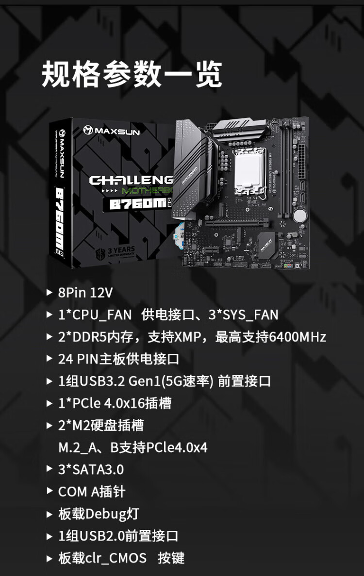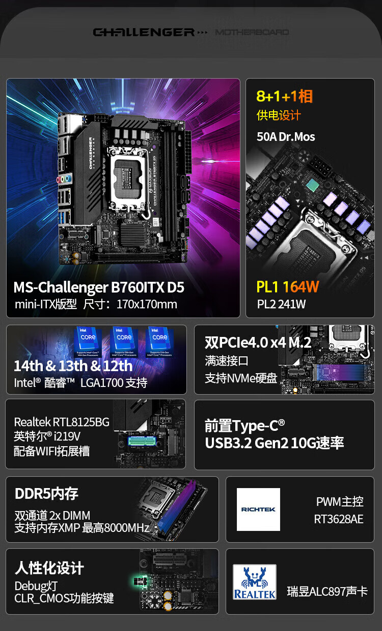 英特尔(Intel)13代酷睿CPU 铭瑄B760电竞之心/挑战者主板CPU套装 板u套装 电竞之心 B760M 瑷珈CROSS D5 i7-13790F 盒装