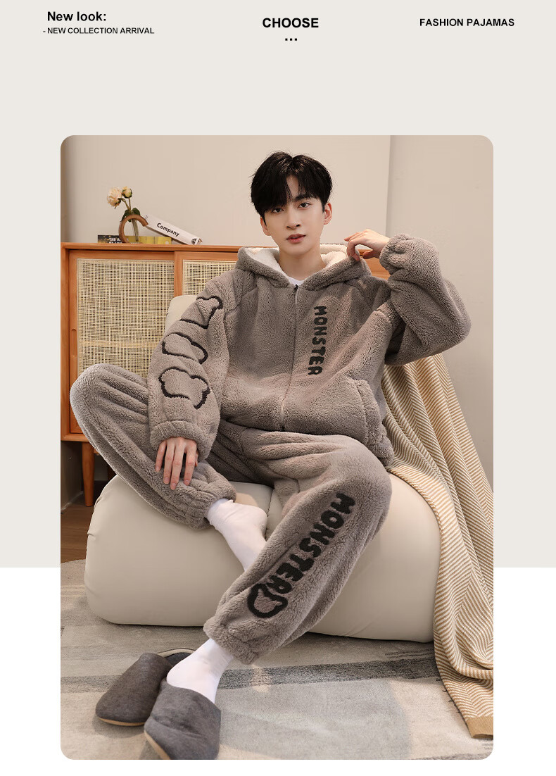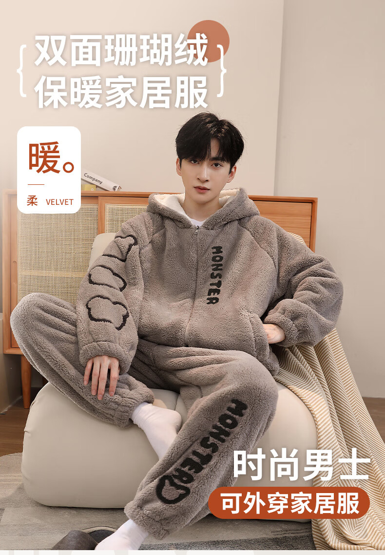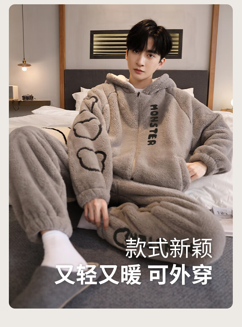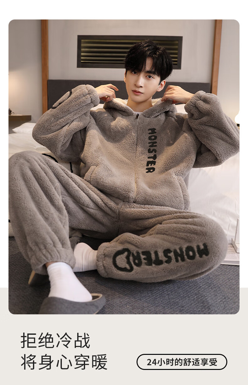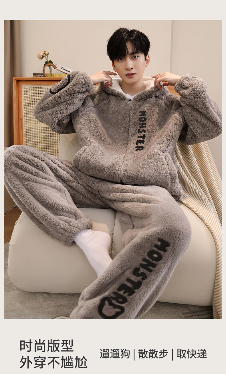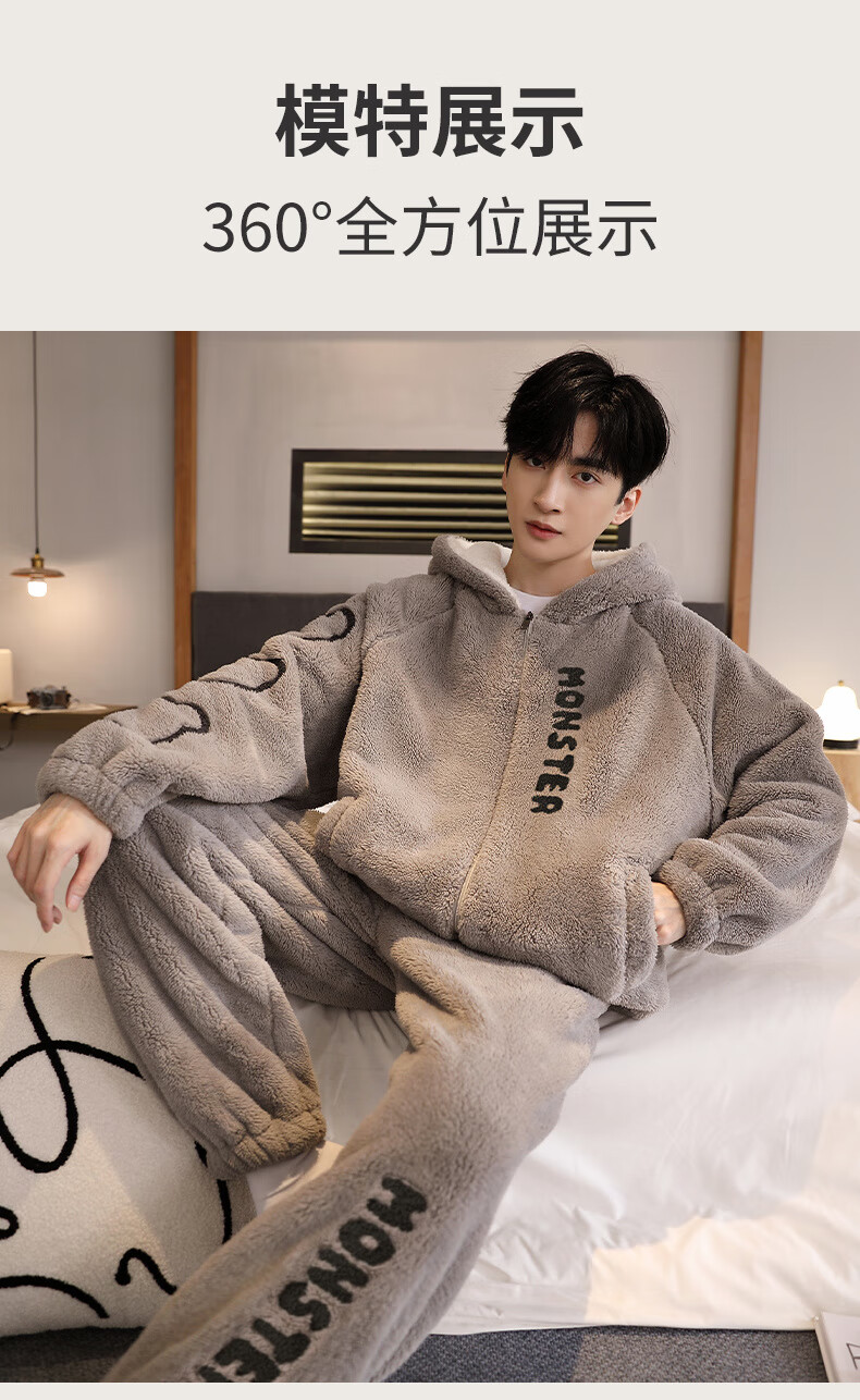 莫代尔男士睡衣加绒加厚秋冬款珊瑚绒大码青年学生冬天家居服套装可外穿 1342迈巴赫 L 男(100-135斤)