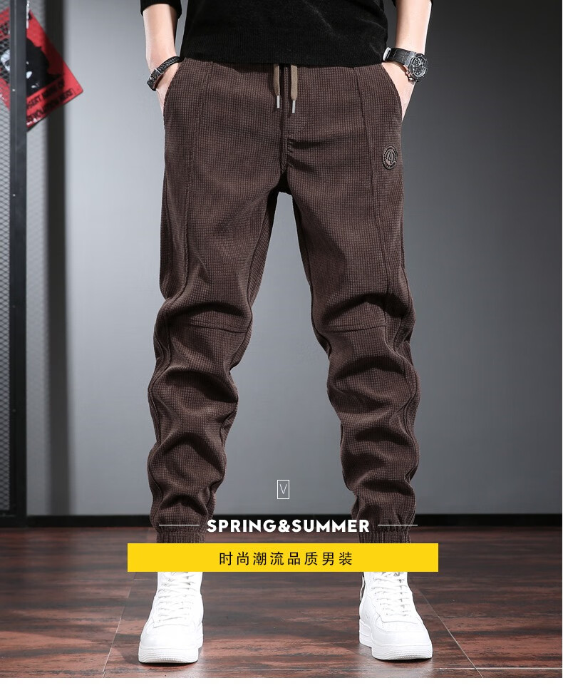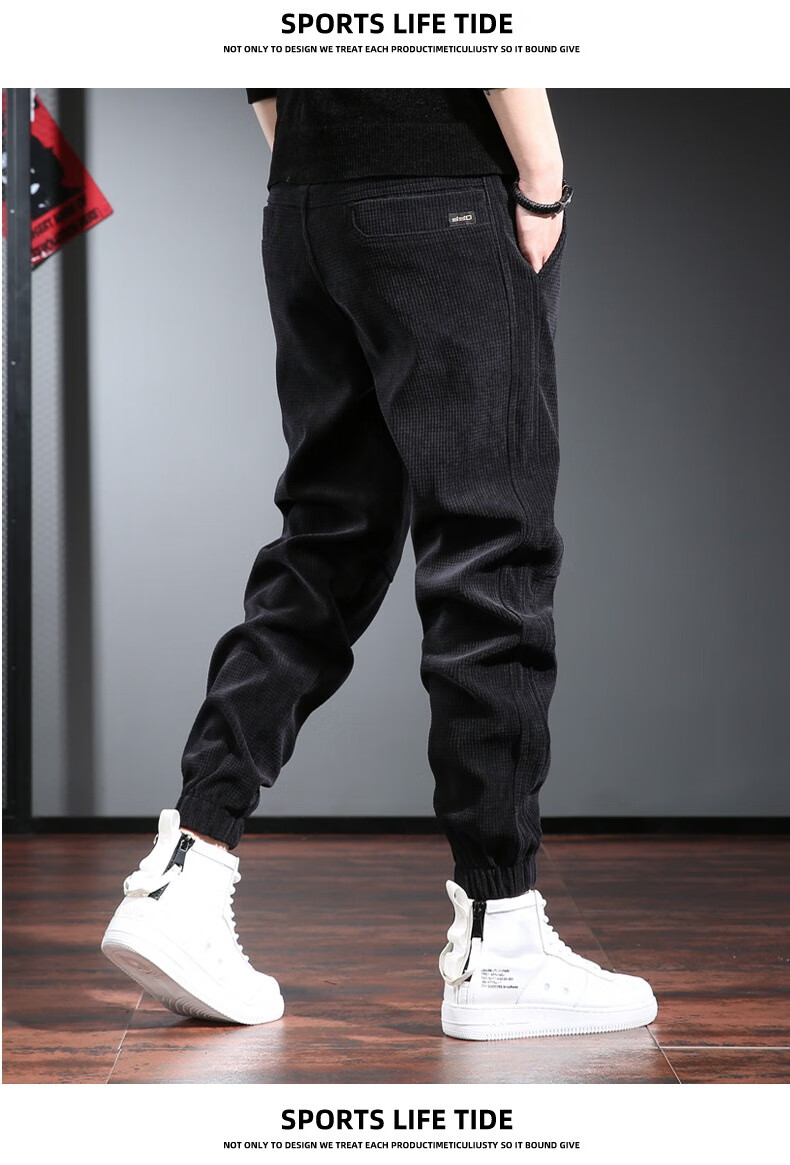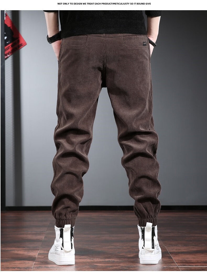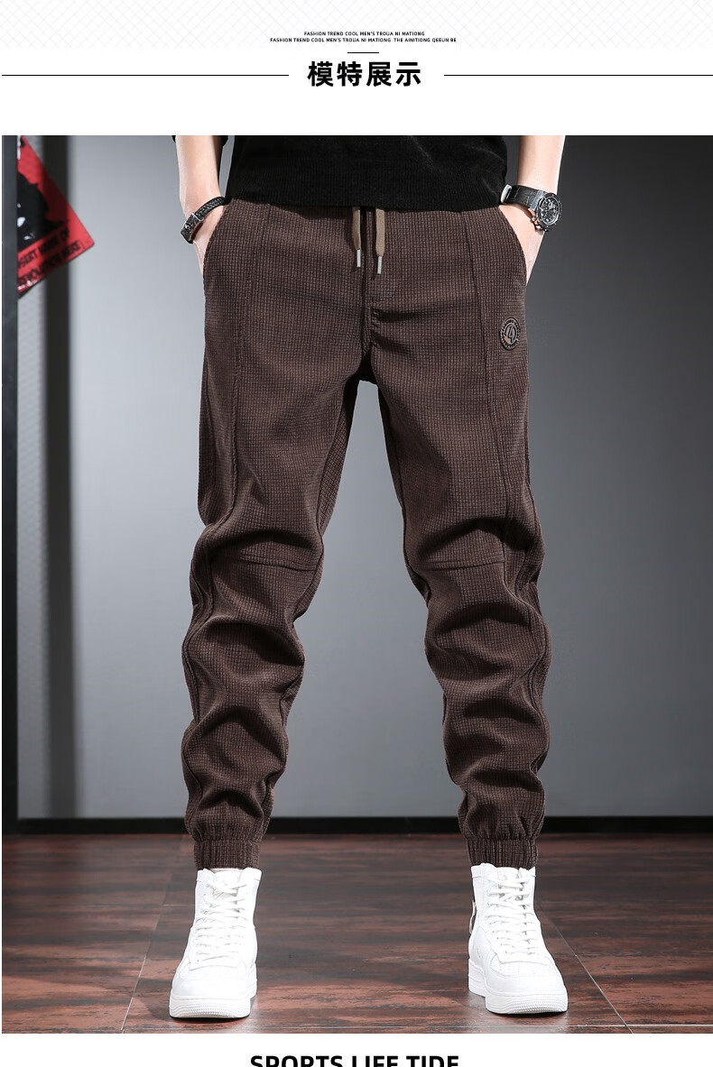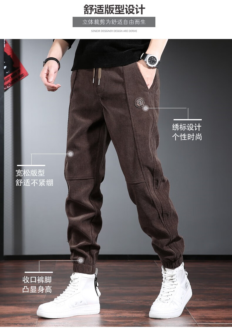 新百伦休闲裤男灯芯绒秋季新款潮牌宽松百搭束脚裤冬季加绒哈伦长裤子男 咖啡常规 XL