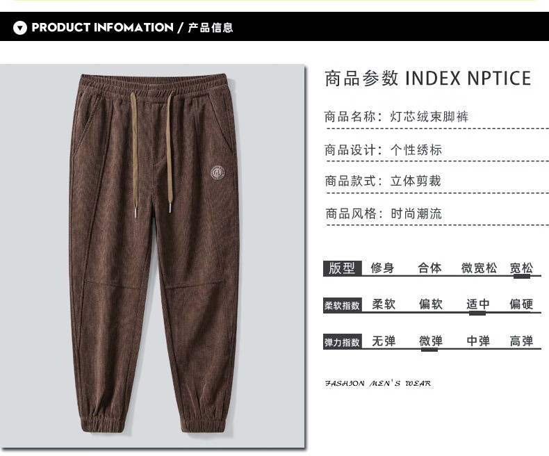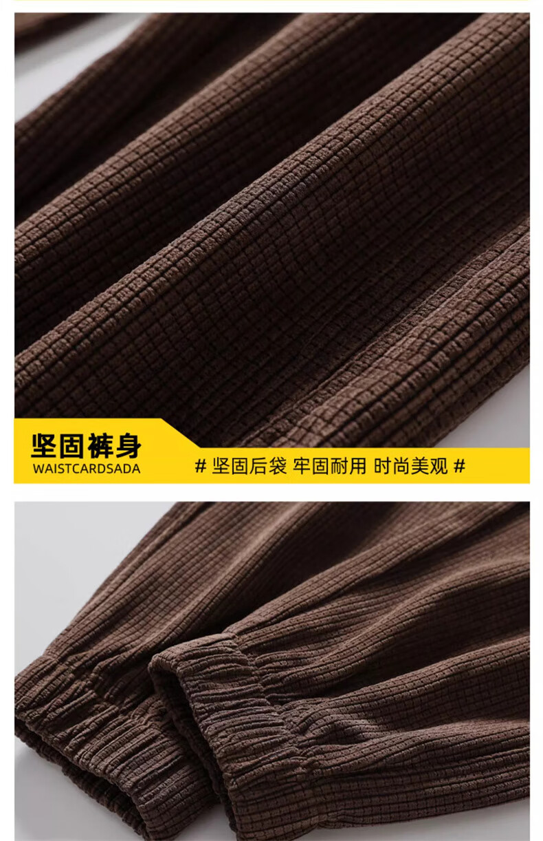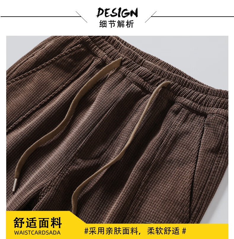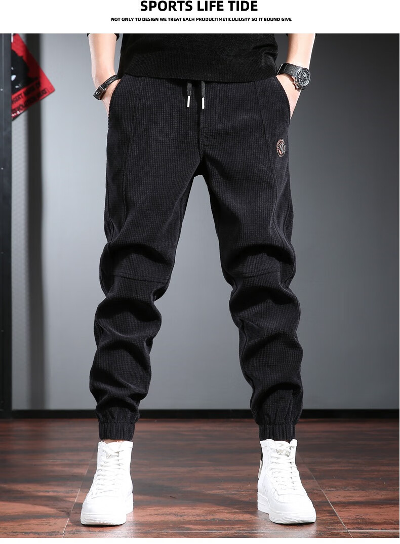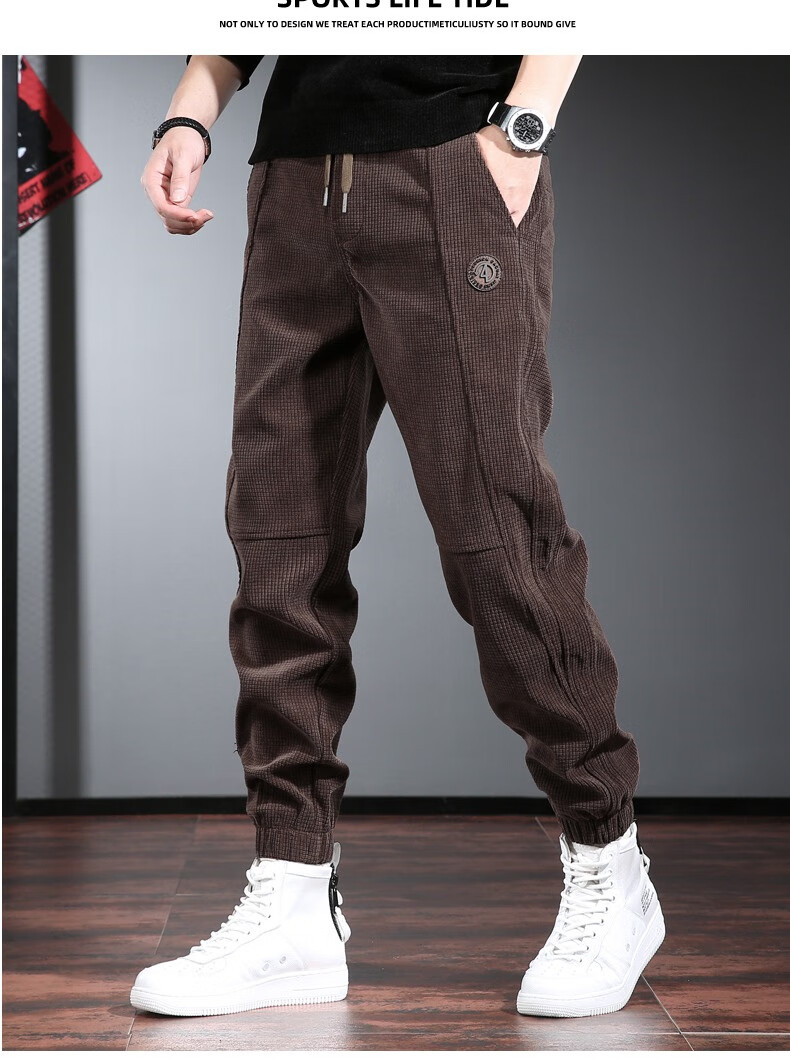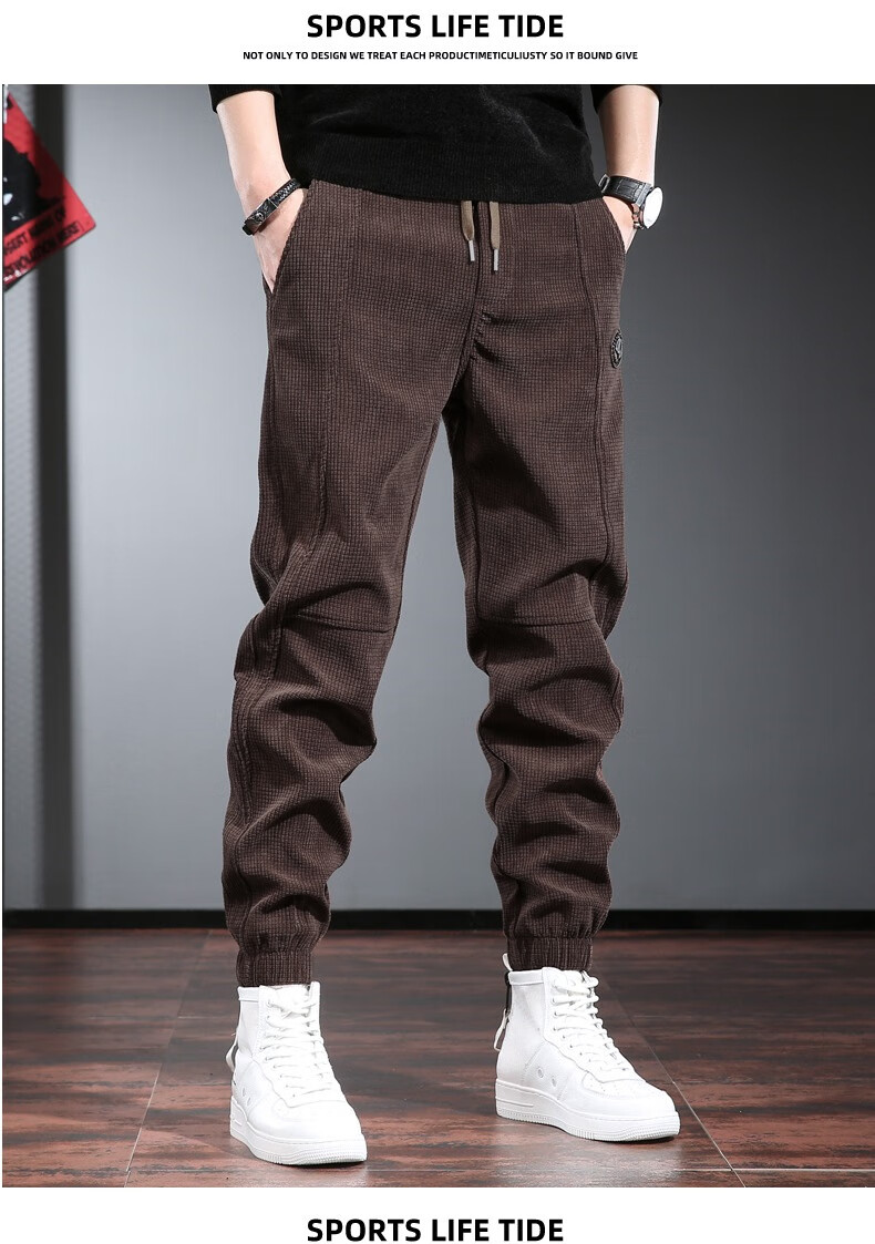 新百伦休闲裤男灯芯绒秋季新款潮牌宽松百搭束脚裤冬季加绒哈伦长裤子男 咖啡常规 XL