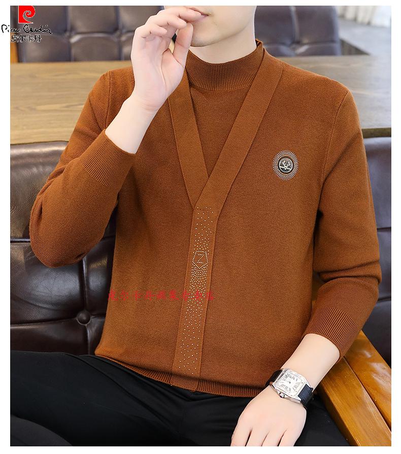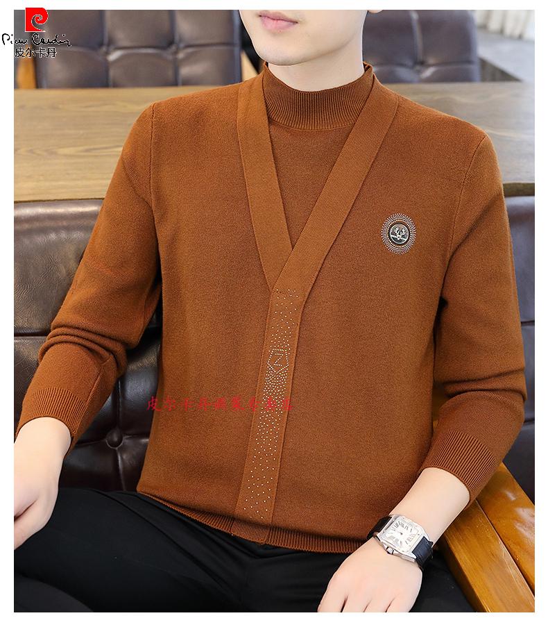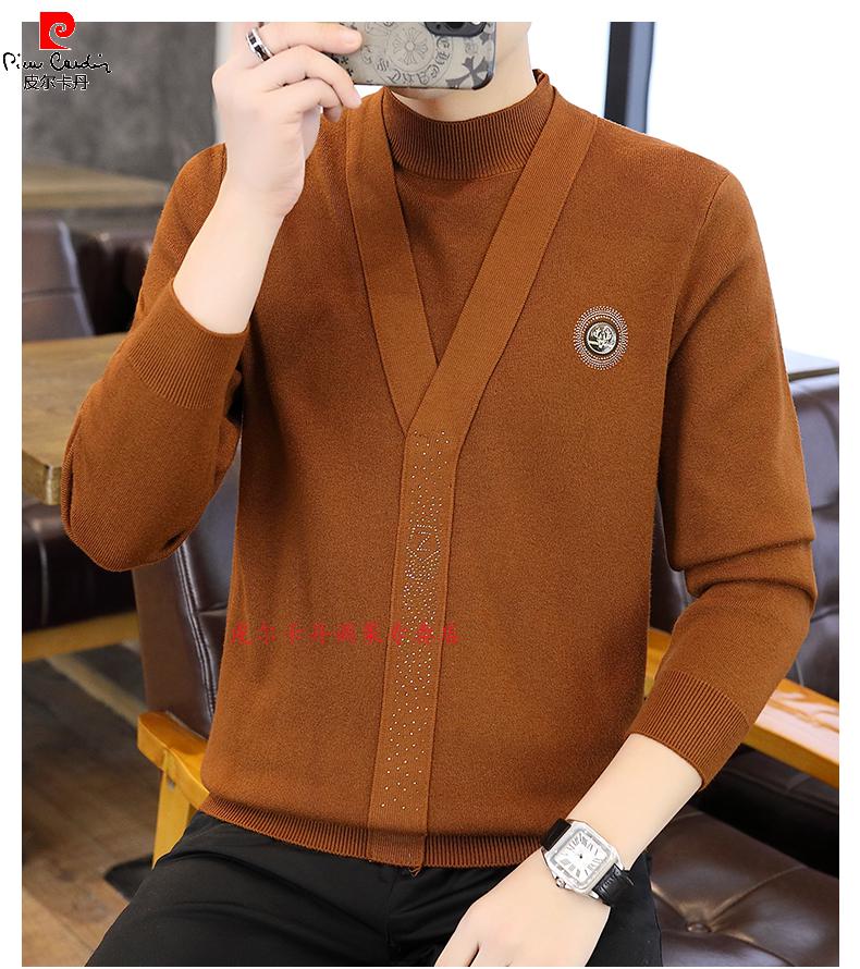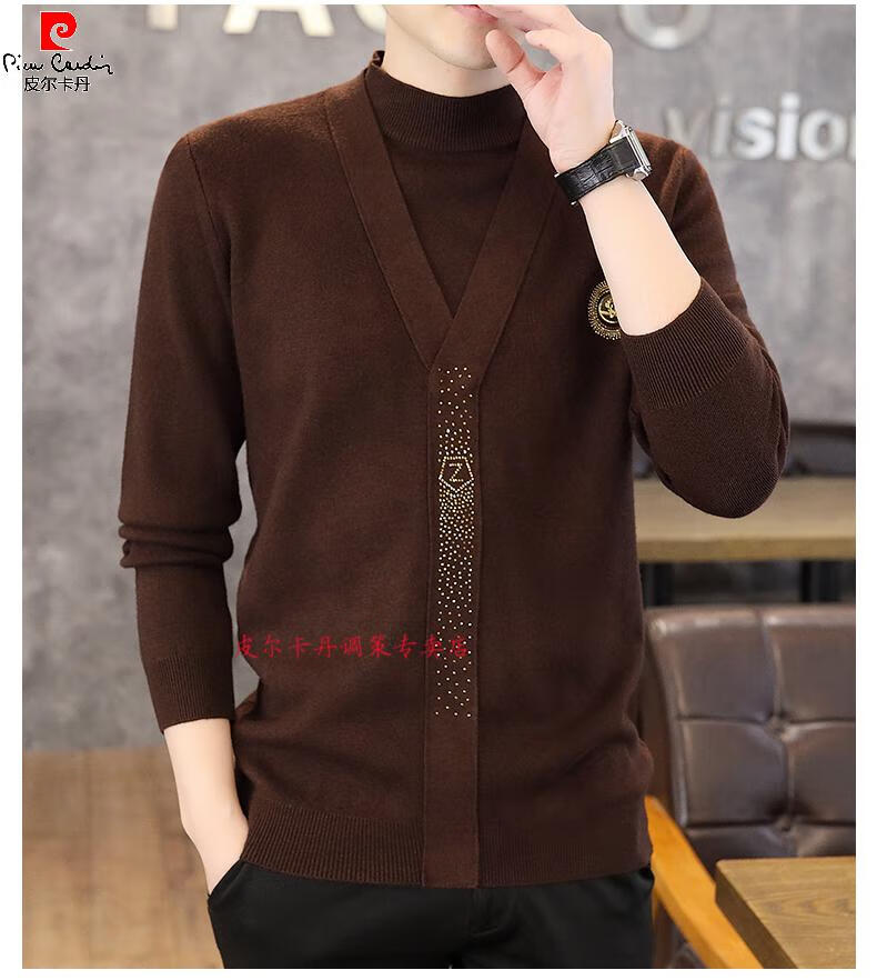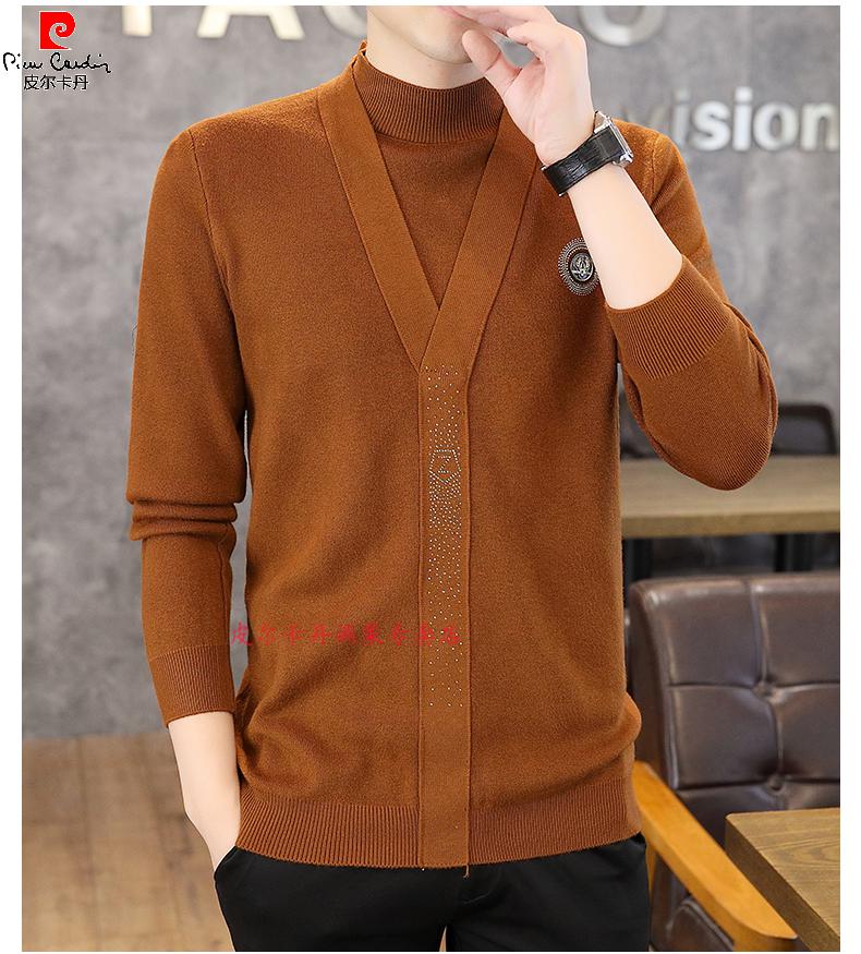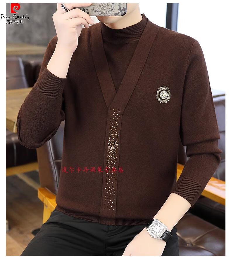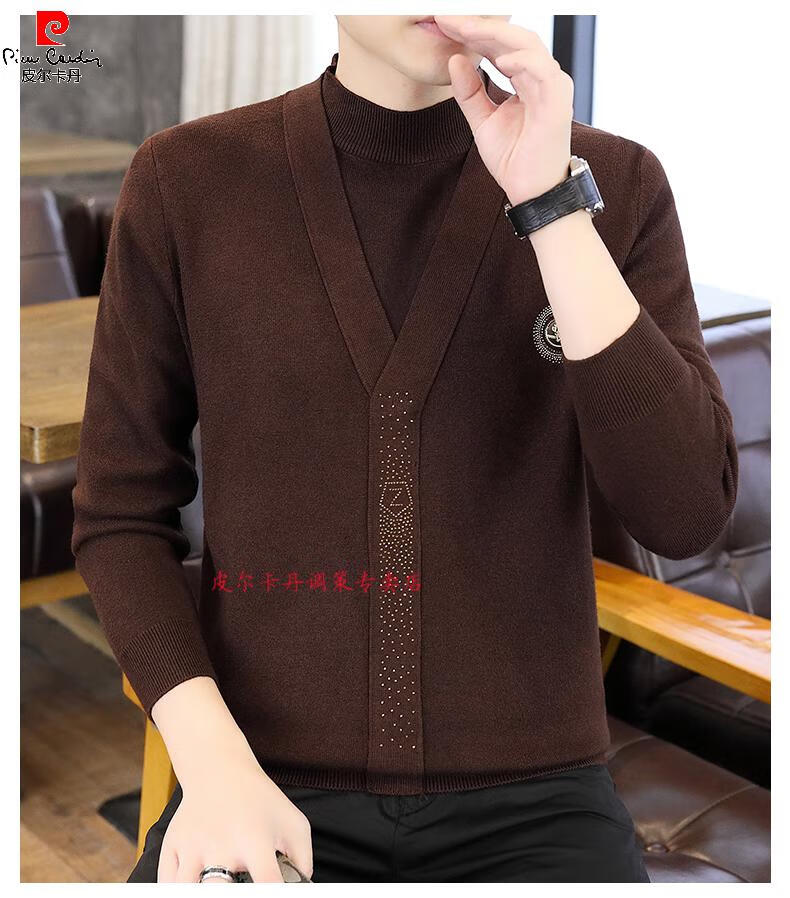 Pierre Cardin (Pierre Cardin) spring and autumn holiday two-piece half-turtleneck sweater for men Korean style high-end pullover mid-collar knitted bottoming sweater autumn coat 747 brown M 90-110Jin Jin is equal to 0.5 kg
