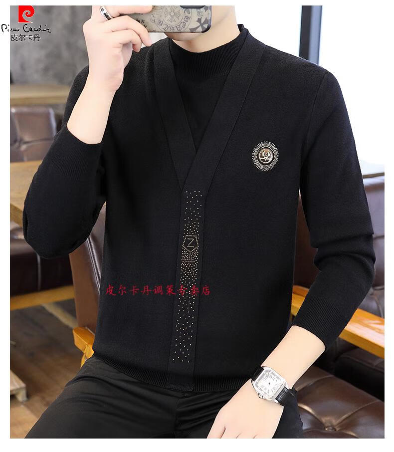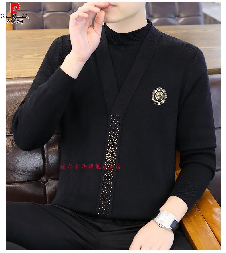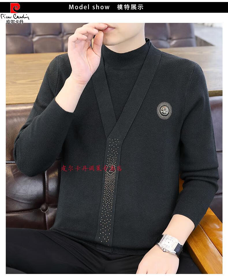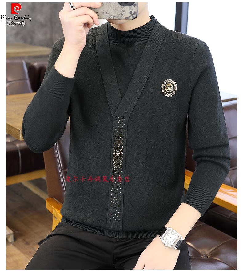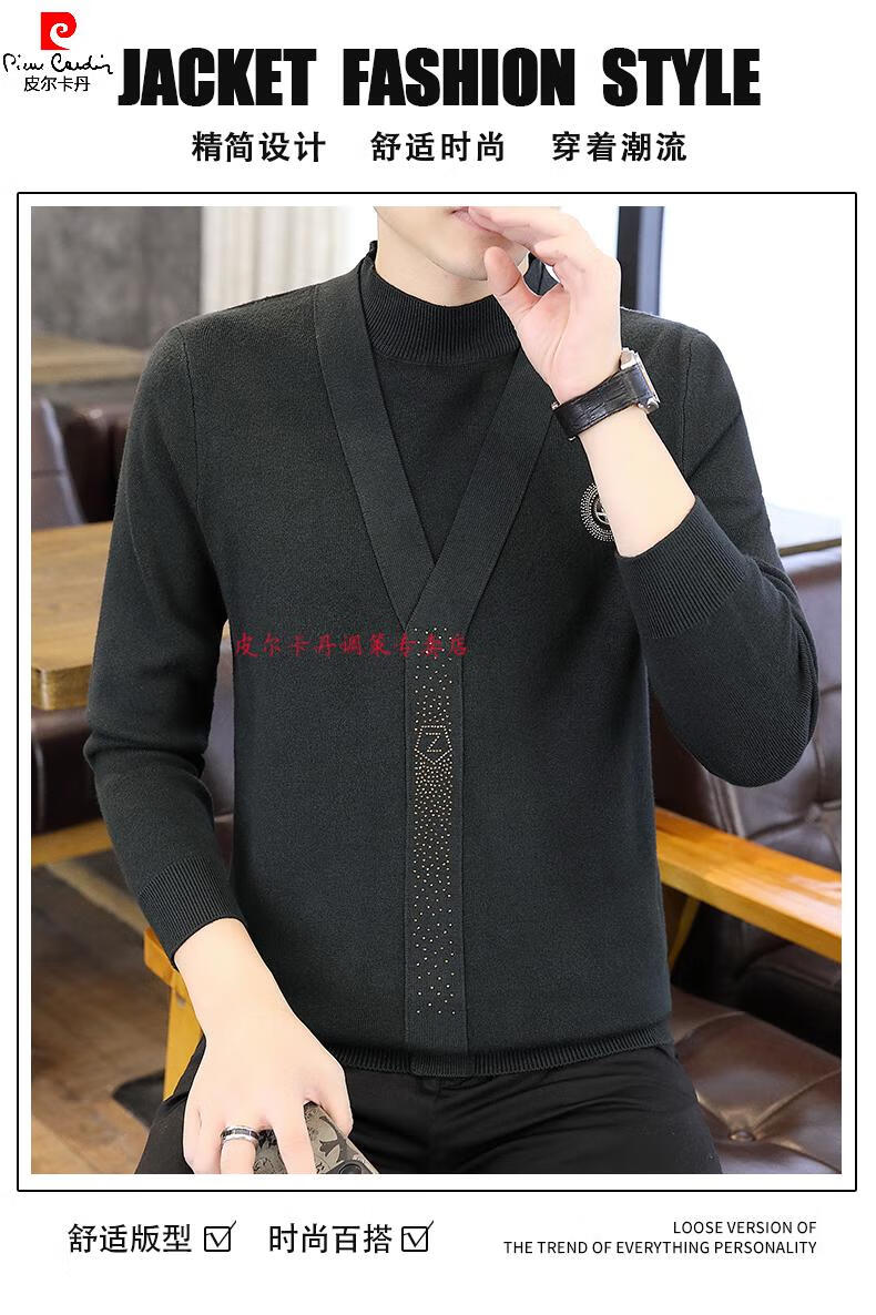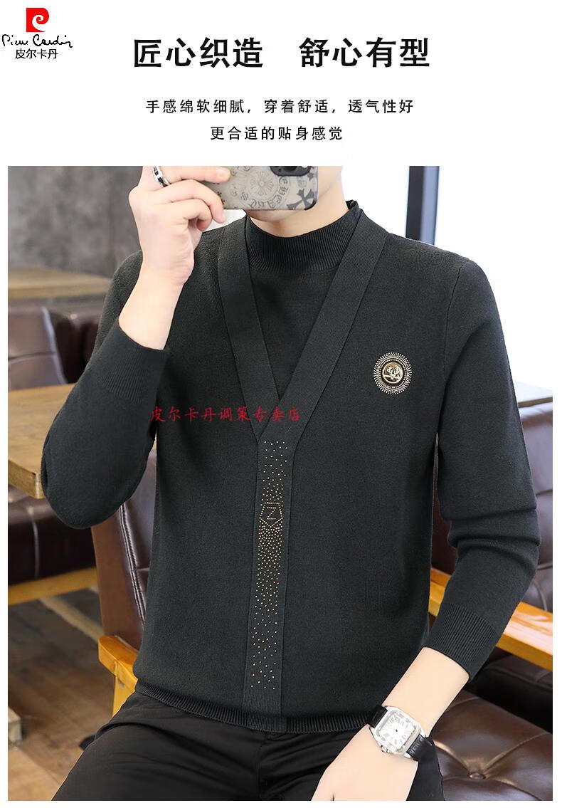 Pierre Cardin (Pierre Cardin) spring and autumn holiday two-piece half-turtleneck sweater for men Korean style high-end pullover mid-collar knitted bottoming sweater autumn coat 747 brown M 90-110Jin Jin is equal to 0.5 kg