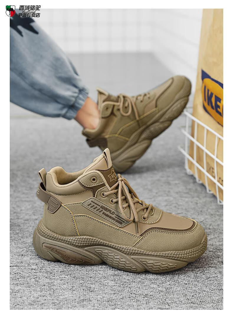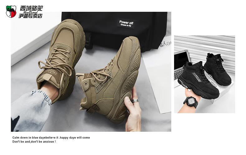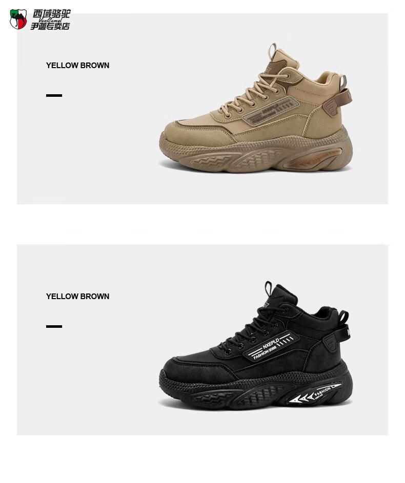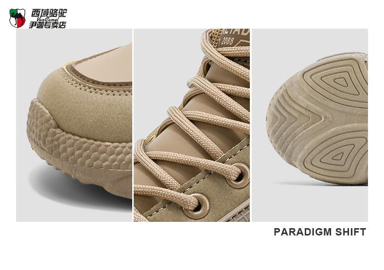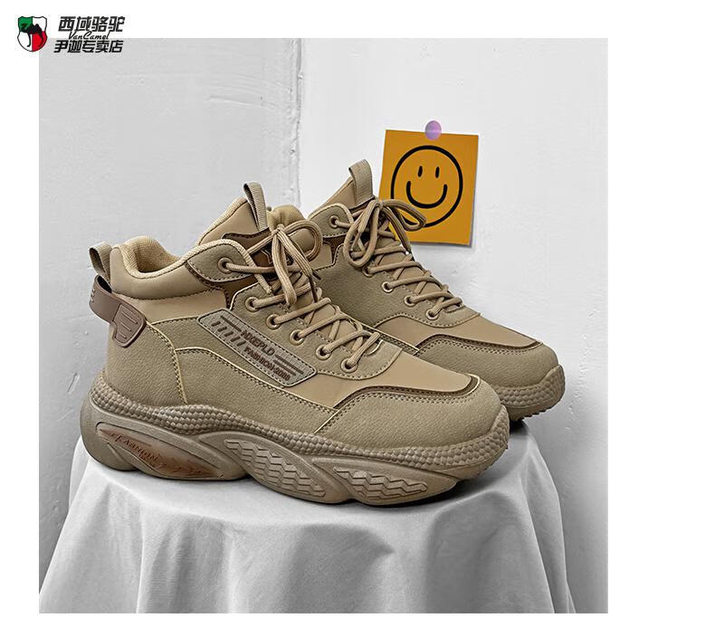 Western Camel (VANCAMEL) genuine leather Martin boots men's shoes 2025 four seasons new retro outdoor wear-resistant work labor insurance high-top sports Martin boots Khaki 39 standard sports shoe size