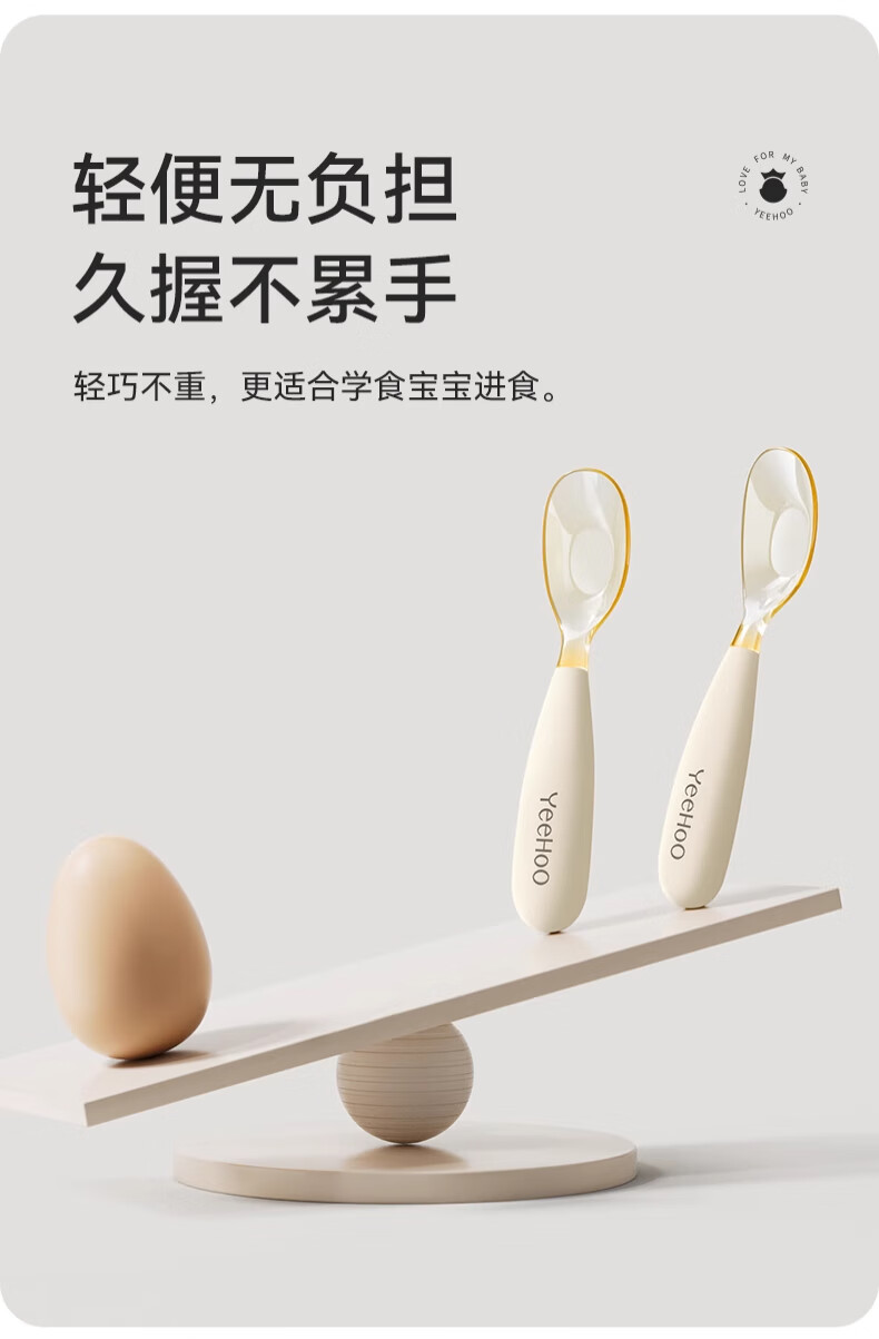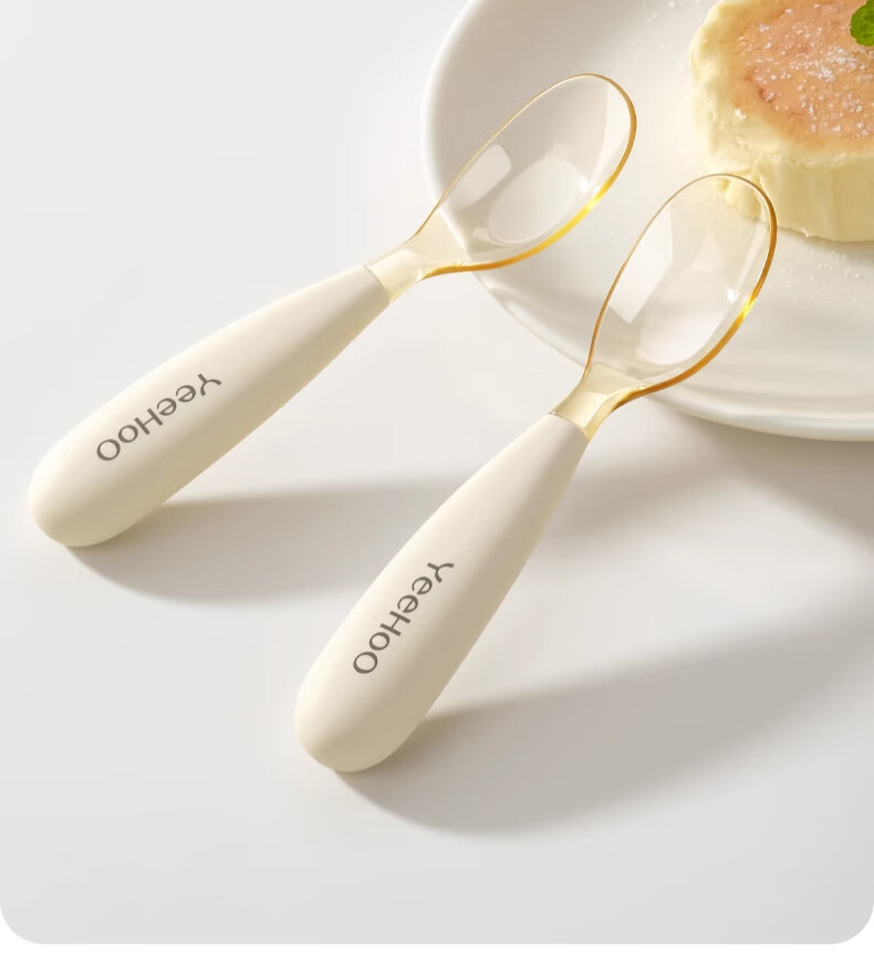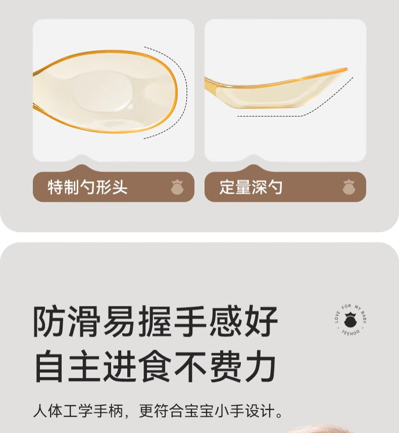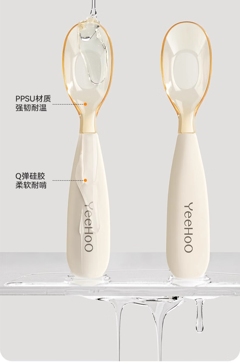 YEEHOO baby Yuanbao spoon baby learning to eat training children silicone independent feeding spoon ppsu food supplement tableware off-white