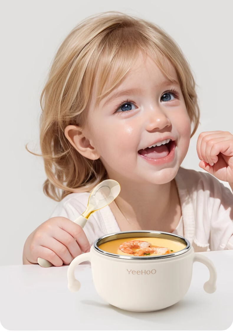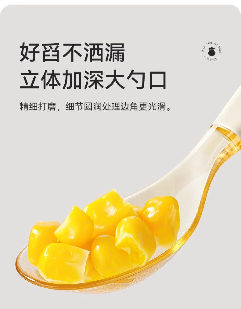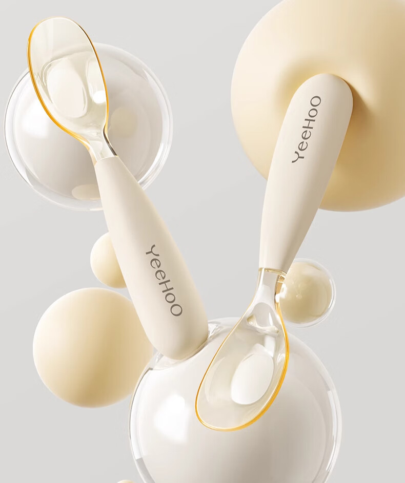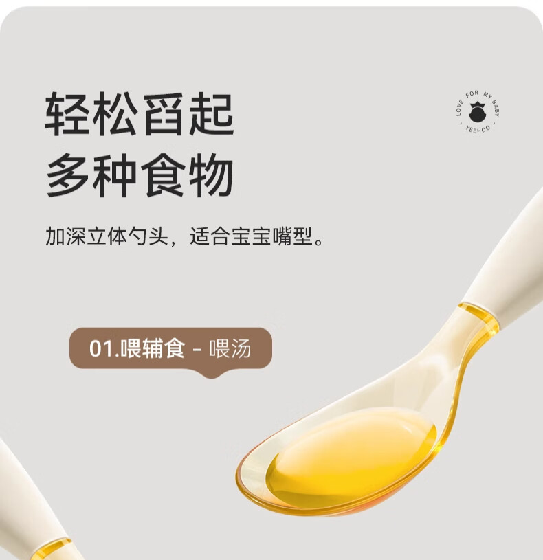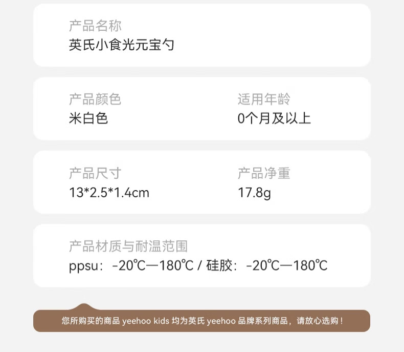 YEEHOO baby Yuanbao spoon baby learning to eat training children silicone independent feeding spoon ppsu food supplement tableware off-white