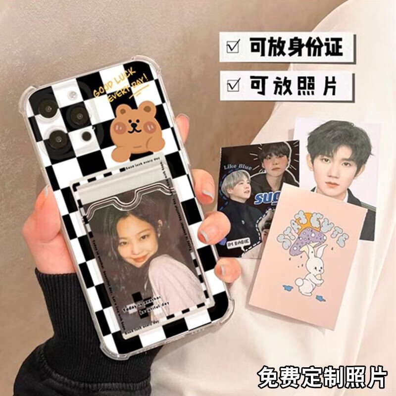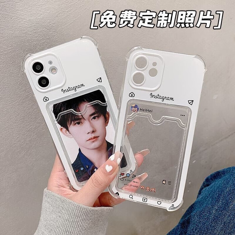 Mi Jingmi Xiaohongshu Douyin can hold polaroid wedding photos of couples, ID card small card insert card holder, card holder, mobile phone case, fully transparent single case * does not include photos, mobile phone model, other mobile phone models