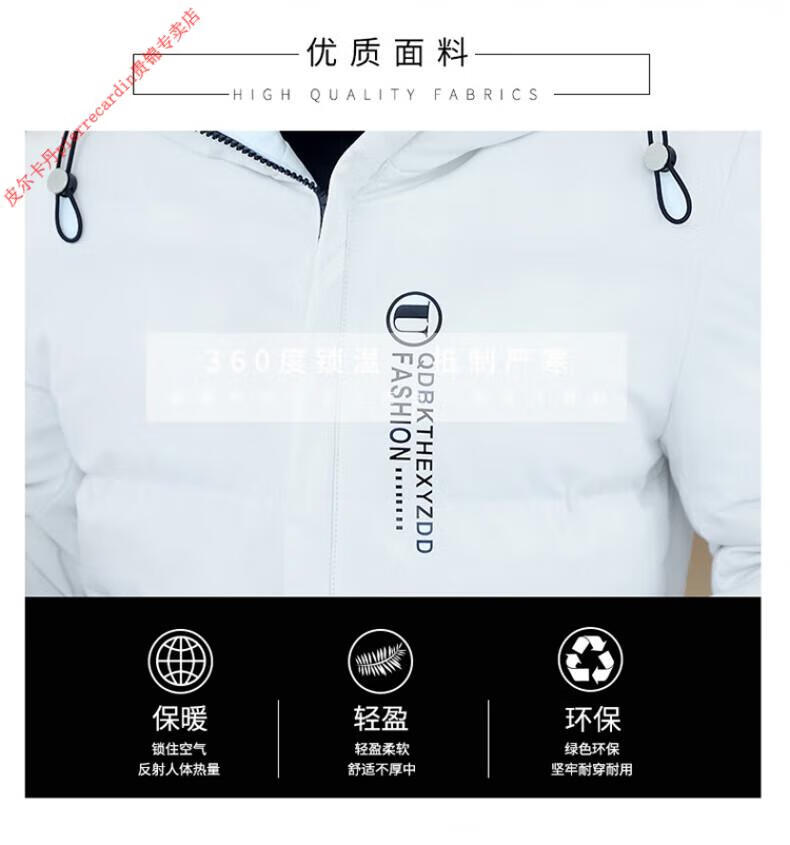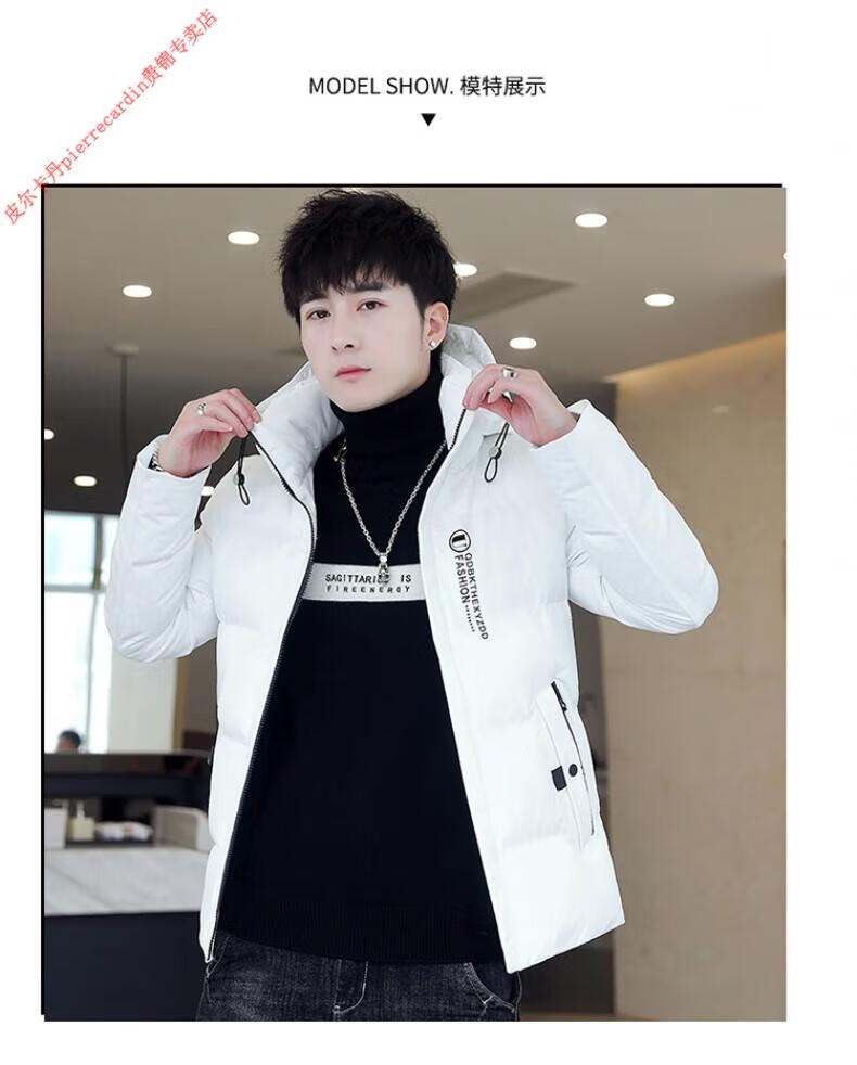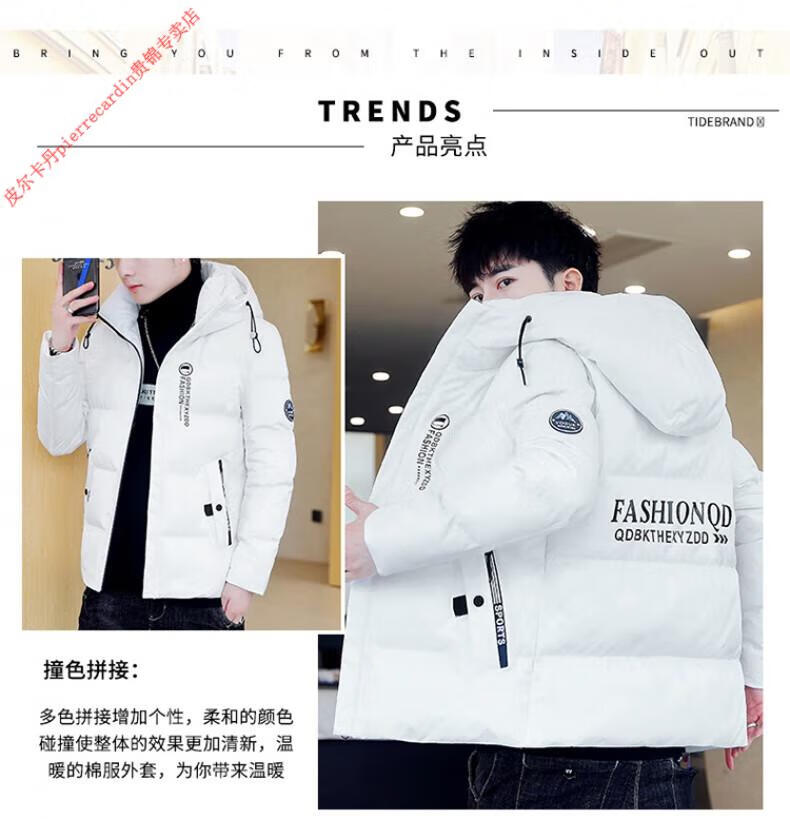 皮尔卡丹(pierre cardin)2025新款羽绒棉夹克短款加厚修身潮流男装冬季外套百度白棉上衣服 719白色 XL【适合120-135斤】