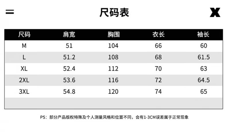 China (cm) 165 / 88-90 170 / 96-98 175 / 108-110 180 / 118-122 185 / 126-130