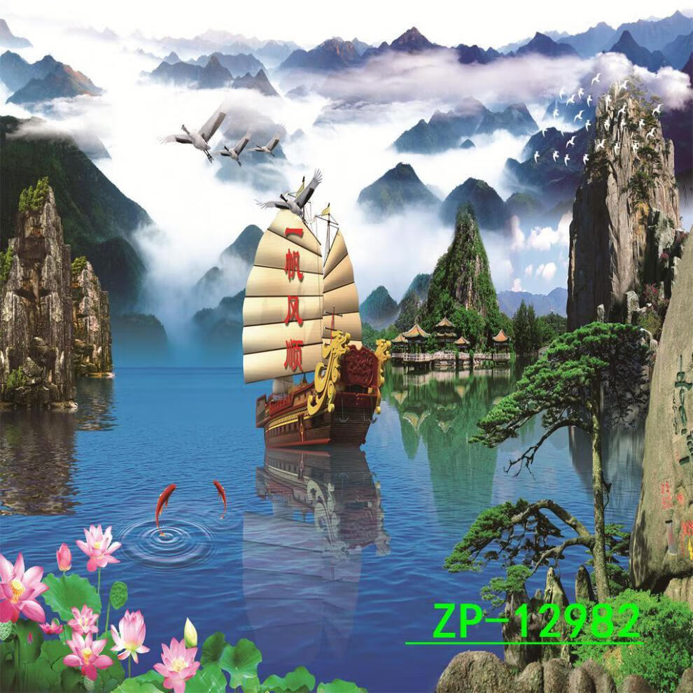 Новый пейзаж Шиджану 3D высокой четкости трехмерный Интернет знаменитость прямая трансляция фон ткань прямая трансляция комната фон стена фото в помещении наружная сцена древний стиль ZP-12609 3 метра в ширину + 2,5 метра в высоту