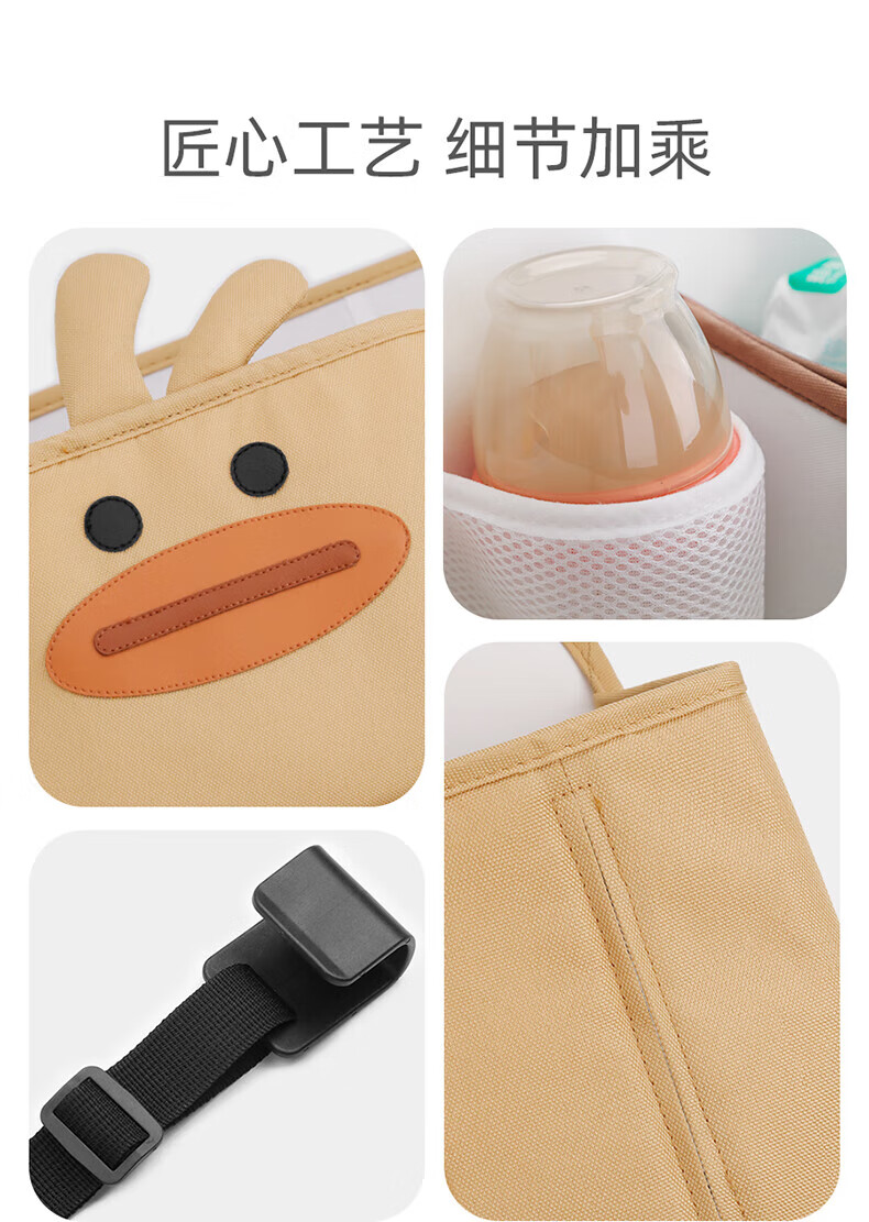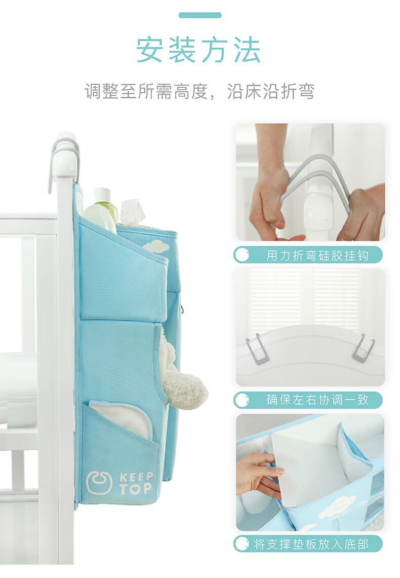 RSRDDY婴儿床收纳袋挂袋床头尿布收纳新生儿床边置物袋尿片袋多功能储物 嘻嘻兔-基础款(加宽挂钩-可调节