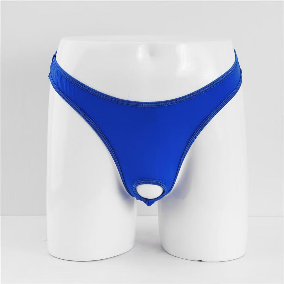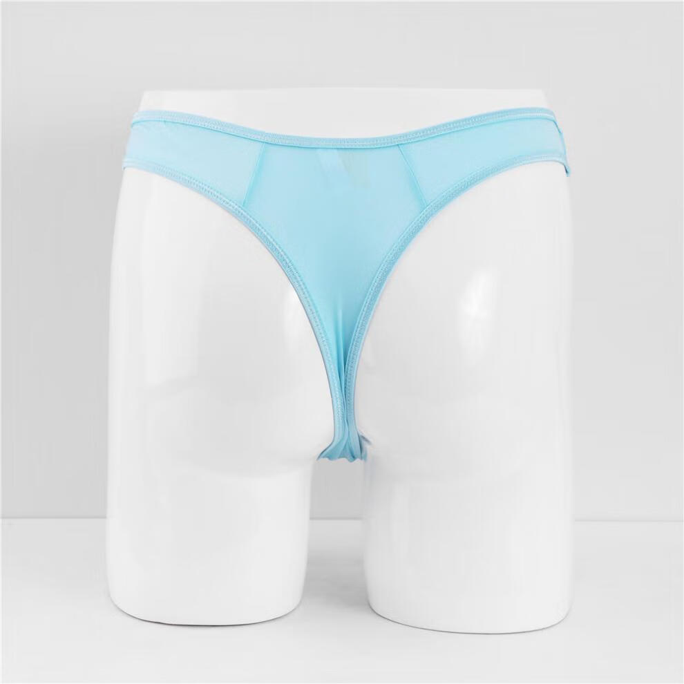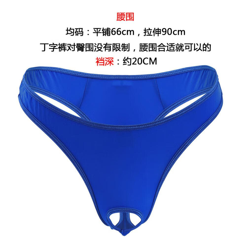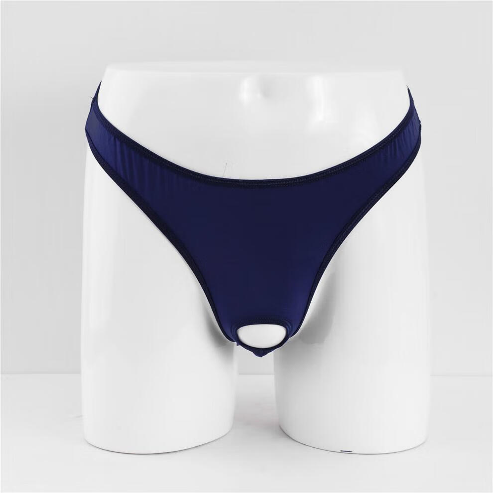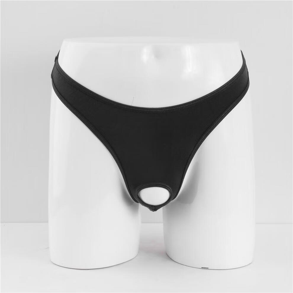 前开洞免脱冰丝男士情趣丁字裤 性感透明低腰T裤男式弹力情侣开档 黑色 均码