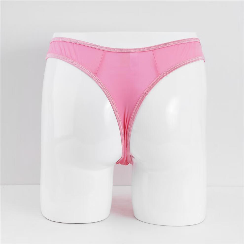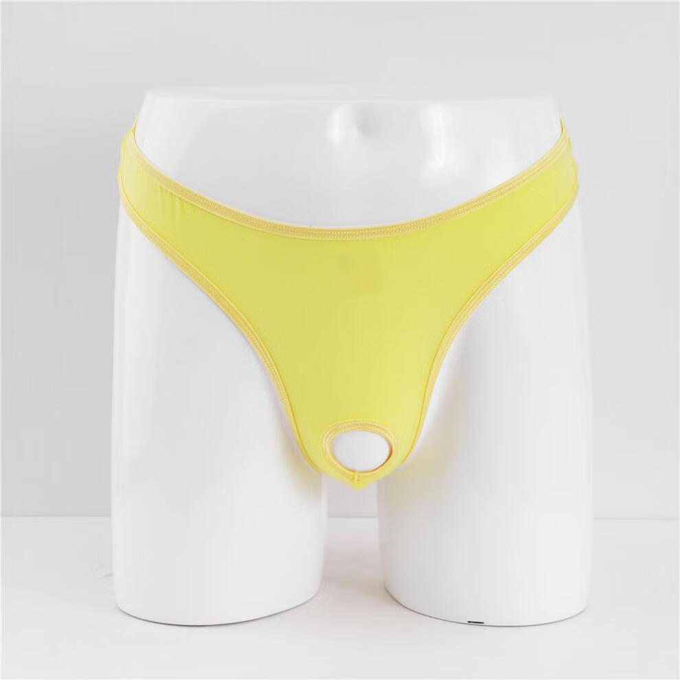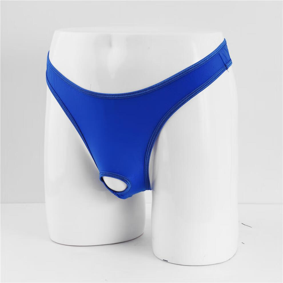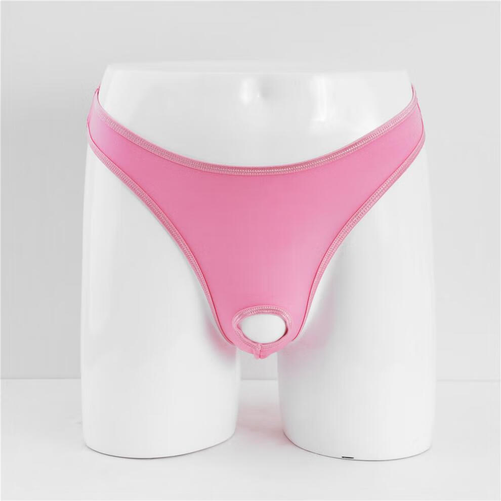 前开洞免脱冰丝男士情趣丁字裤 性感透明低腰T裤男式弹力情侣开档 黑色 均码