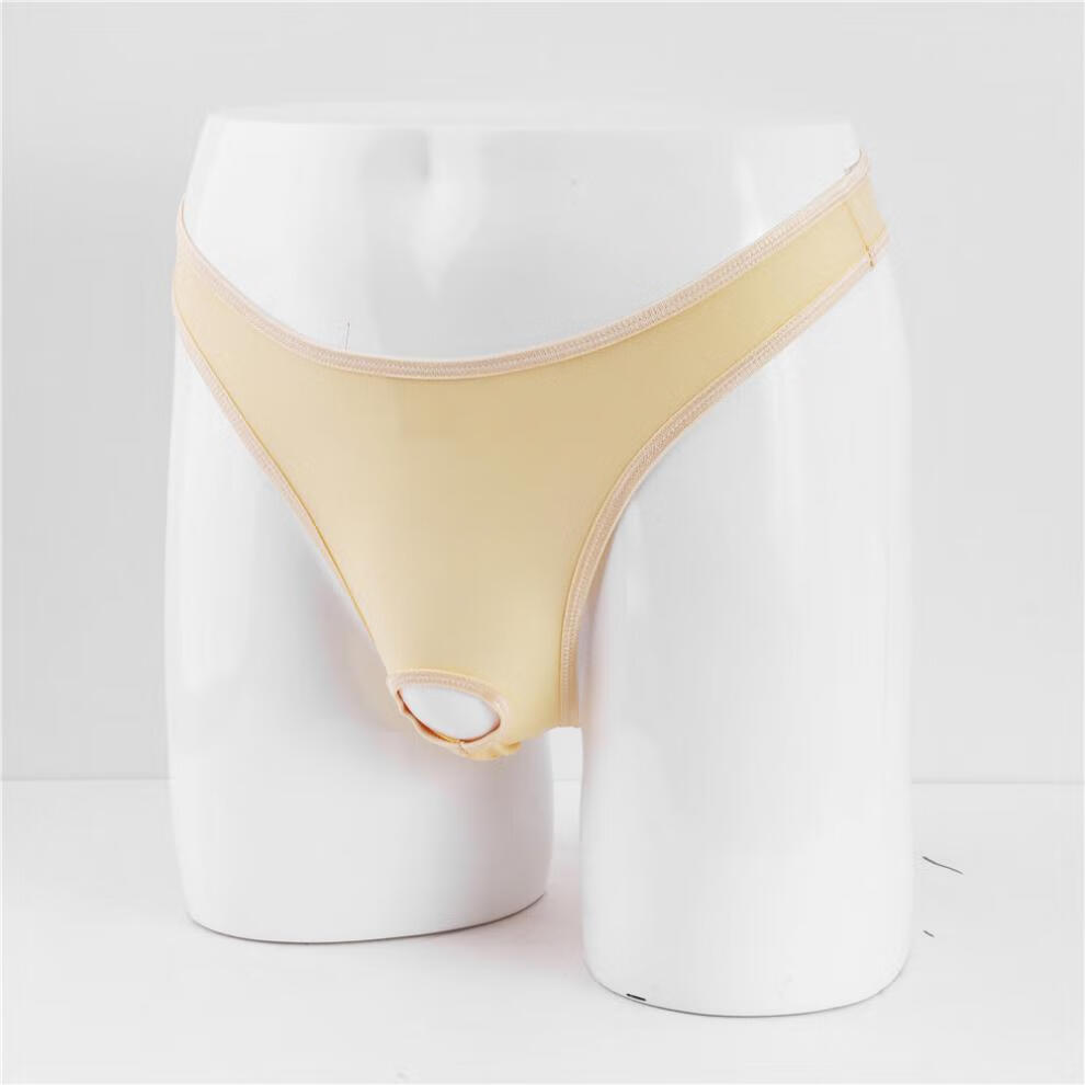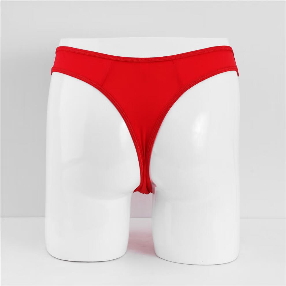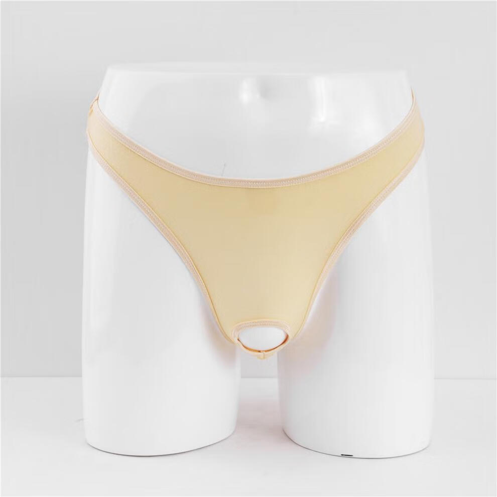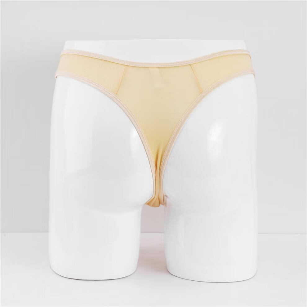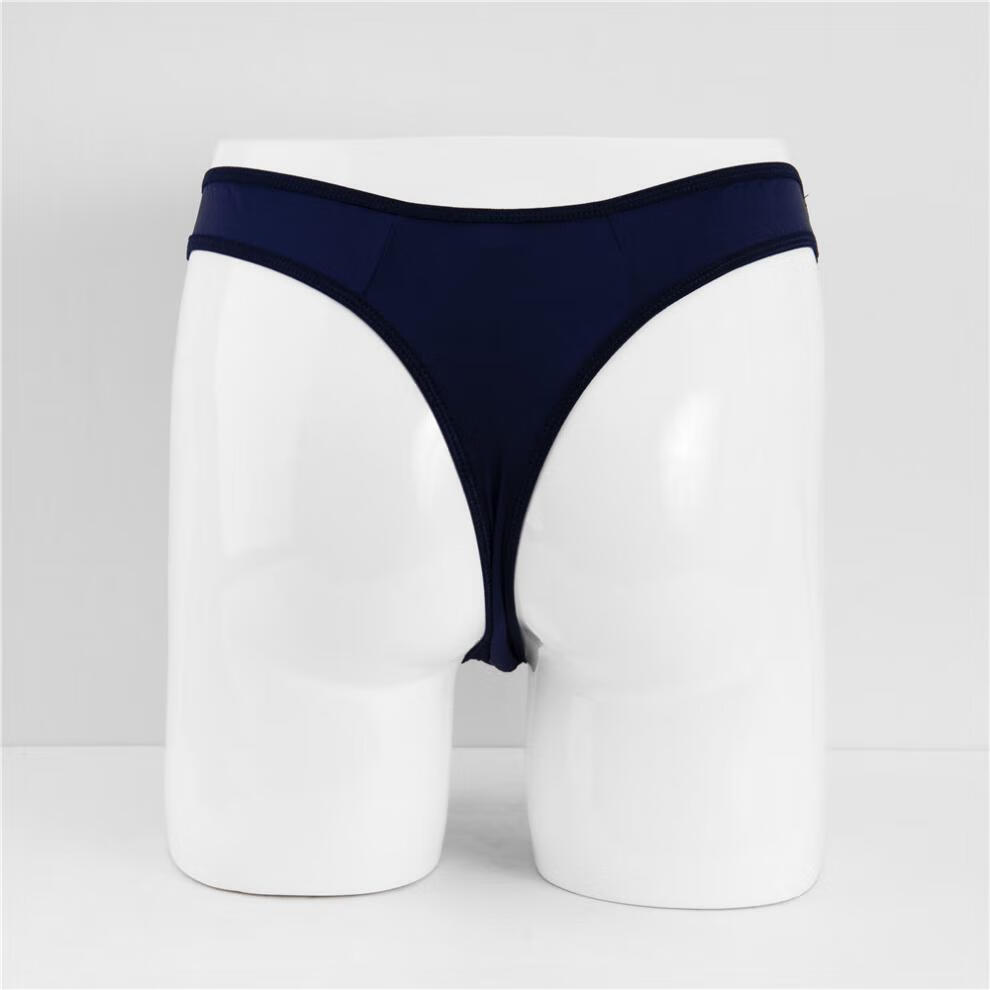 前开洞免脱冰丝男士情趣丁字裤 性感透明低腰T裤男式弹力情侣开档 黑色 均码