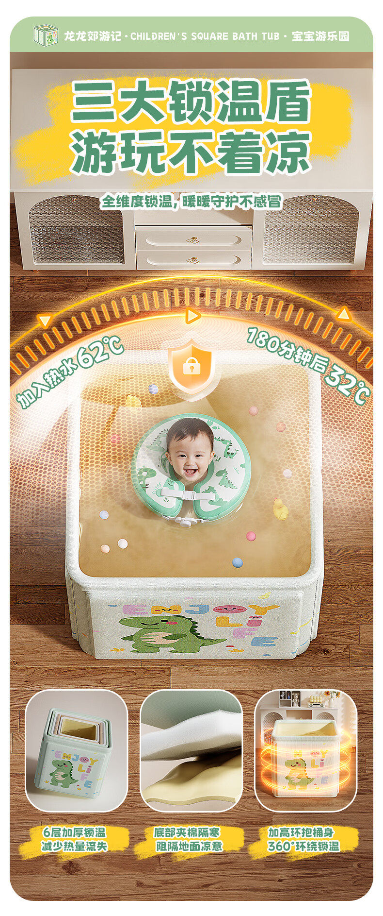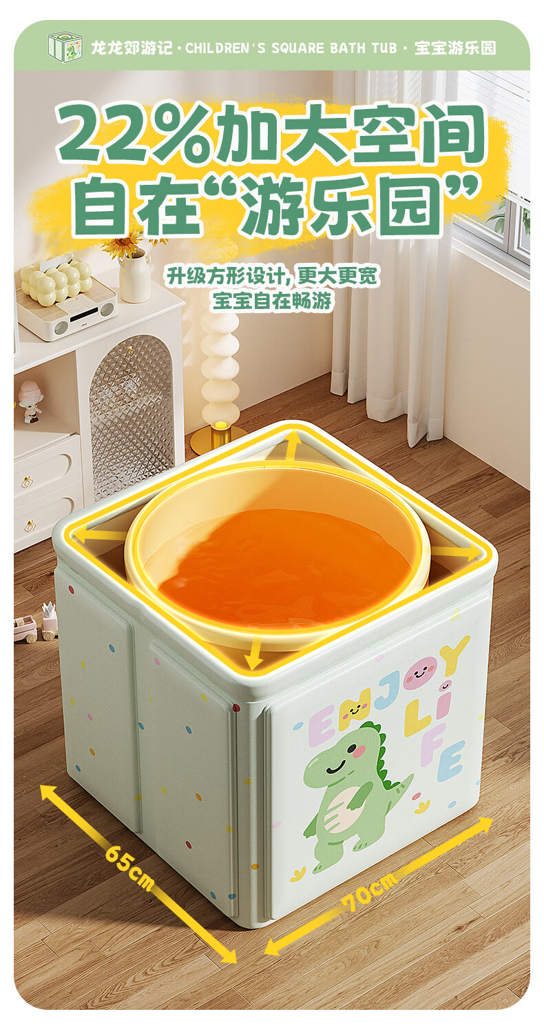 格威奈儿童洗澡桶婴儿游泳折叠泡澡桶成人家用浴缸保温大号全身可坐便捷 70*65cm【基础套餐】龙龙郊游记
