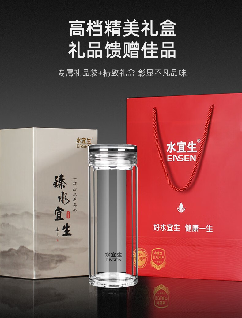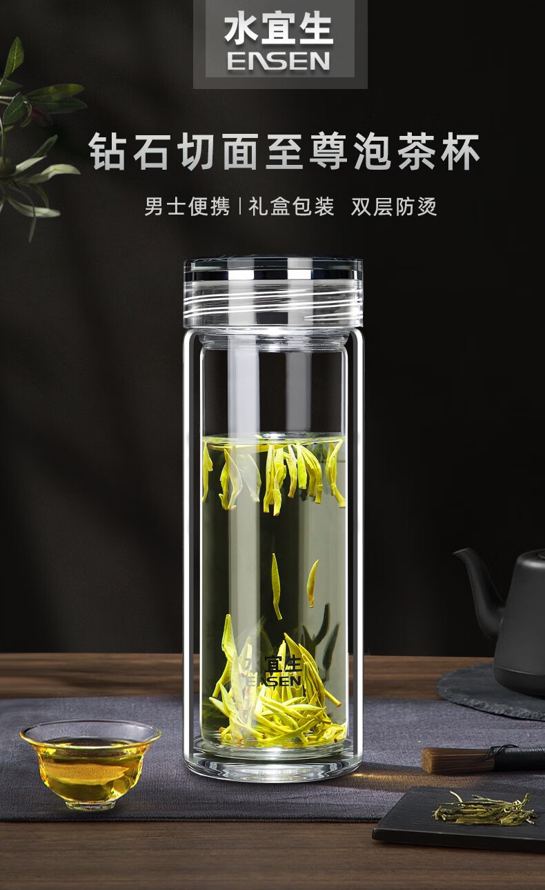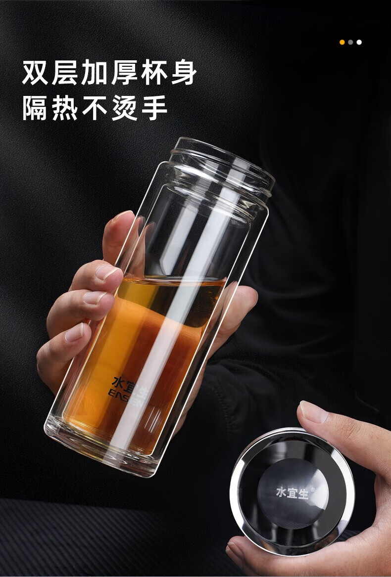 水宜生双层玻璃杯耐热防爆耐高温男士泡茶杯个人专用带盖水杯 g719 普通版400毫升 0ml