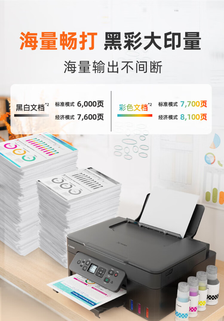 佳能新品G3880自动双面墨仓式黑彩可加墨打印机复印扫描一体机办公学生家用小型手机无线A4资料作 G3880黑色【无线远程+自动双面+打印复印扫描】 套餐二:官方标配+黑色原装墨水2瓶 +大礼包