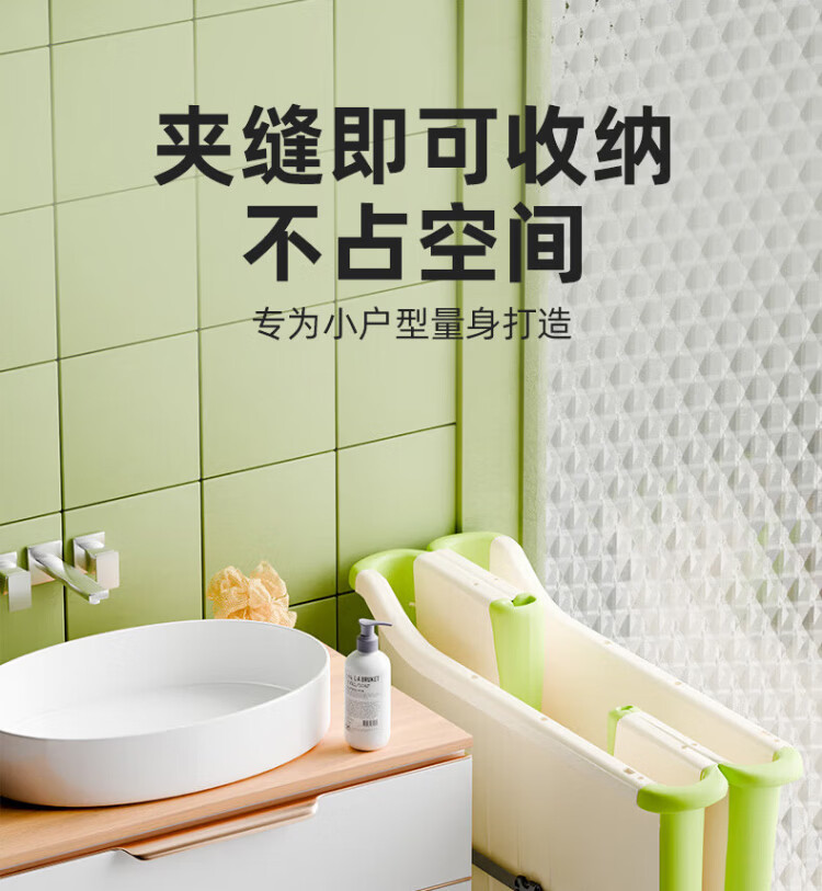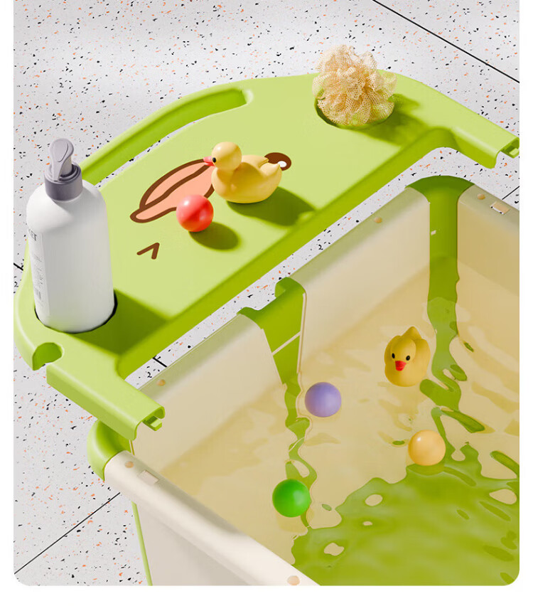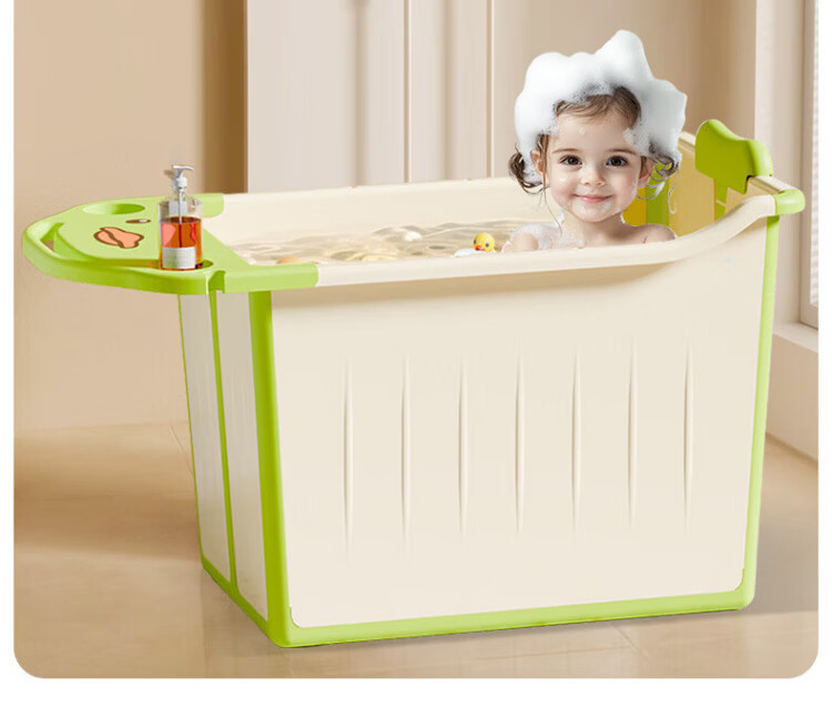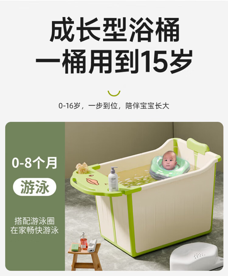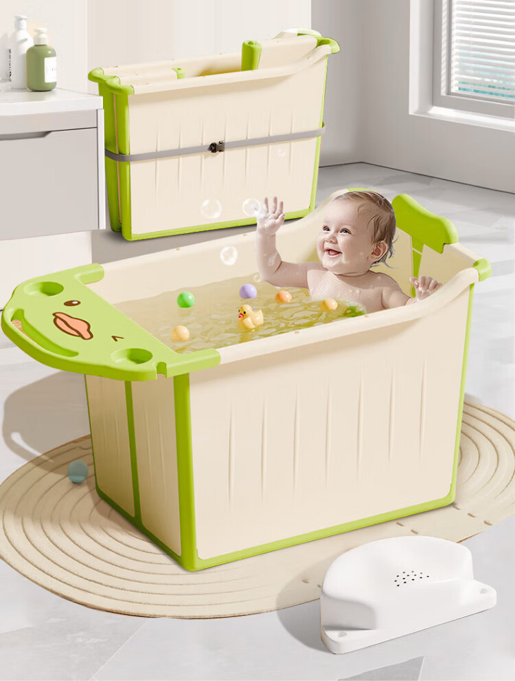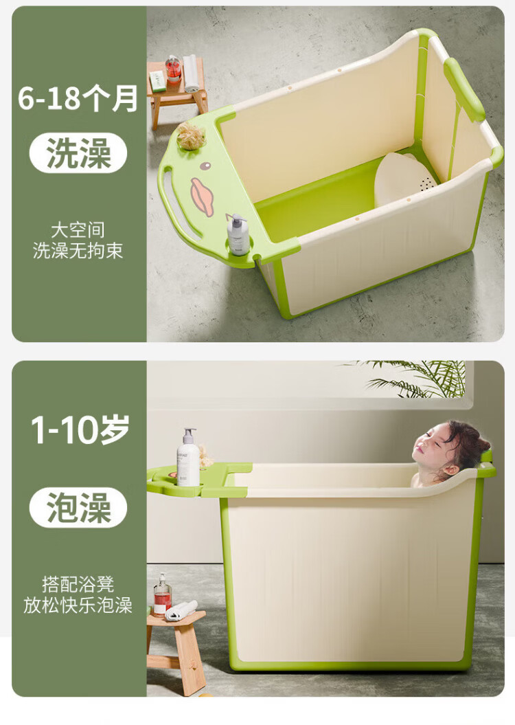 鱼跃星空儿童泡澡桶可折叠家用婴儿洗澡盆宝宝沐浴加大立体式游泳洗澡桶 绿色【立式折叠+浴凳+送礼包】 【升级展开大空间】0-10岁适用