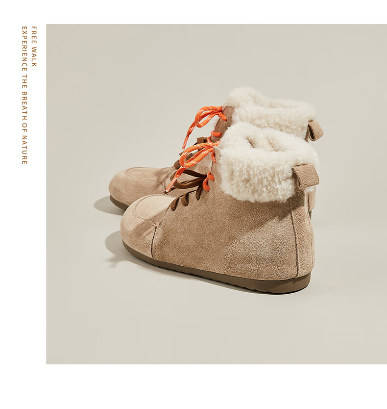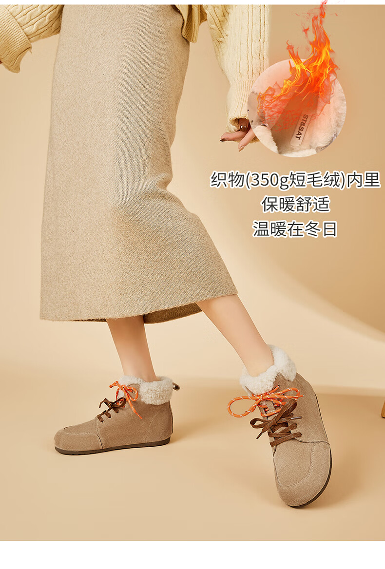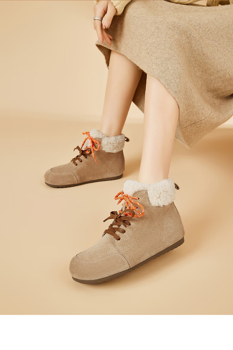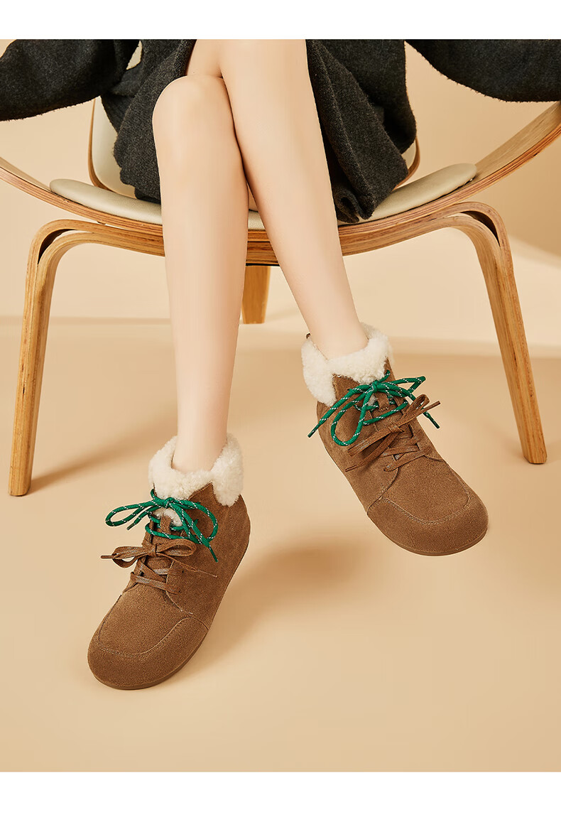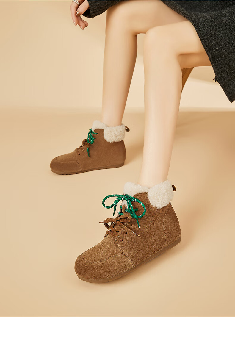 星期六雪地靴女平底内增高系带加绒保暖复古防寒棉鞋2025秋季新款 棕色 36 (230mm) 标准码