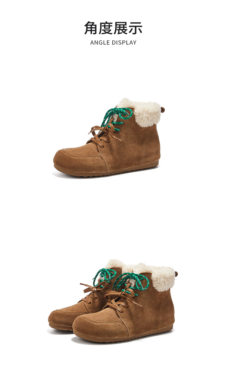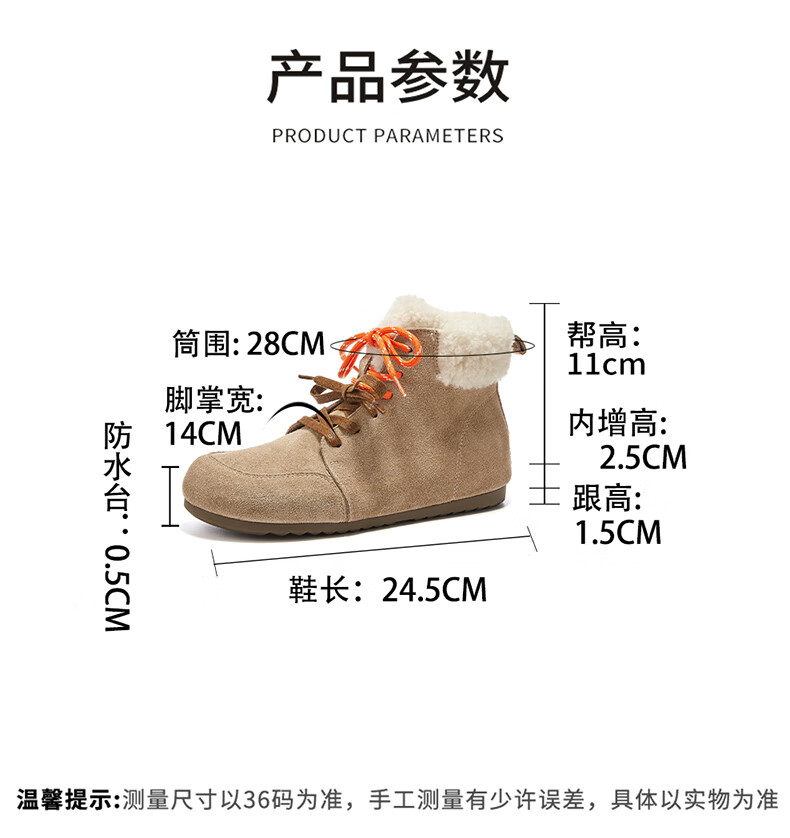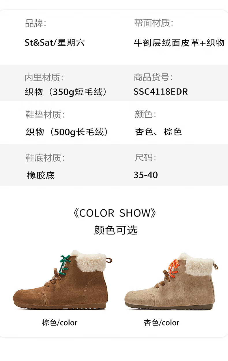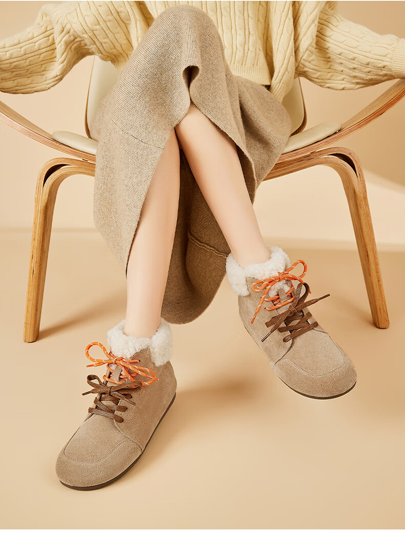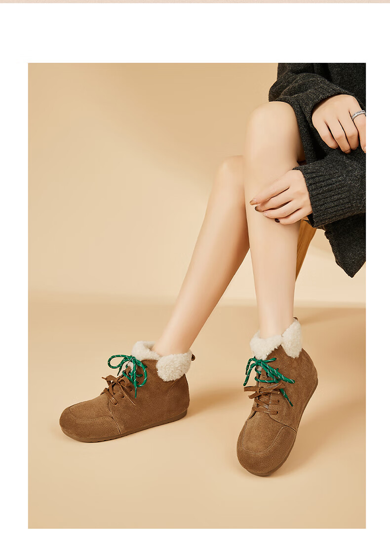 星期六雪地靴女平底内增高系带加绒保暖复古防寒棉鞋2025秋季新款 棕色 36 (230mm) 标准码