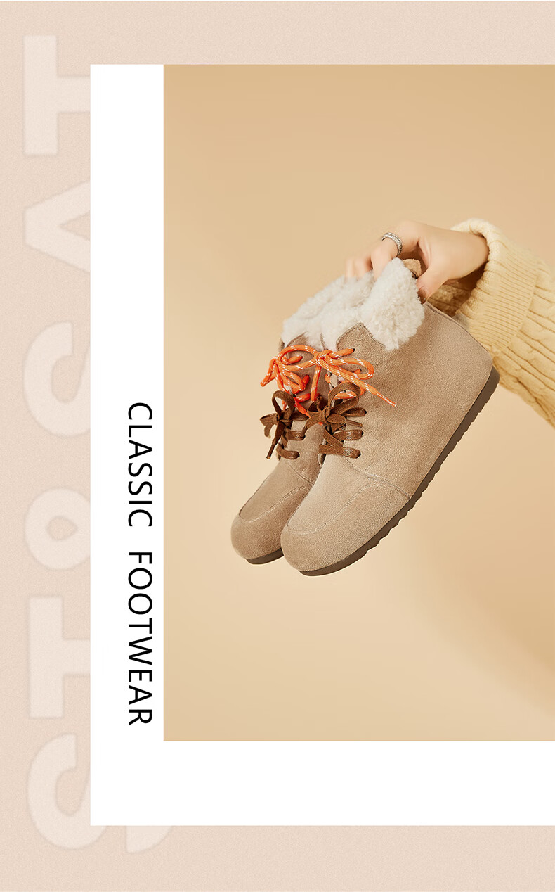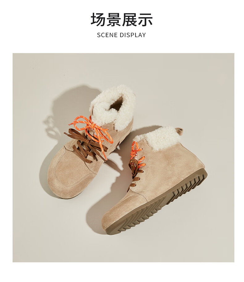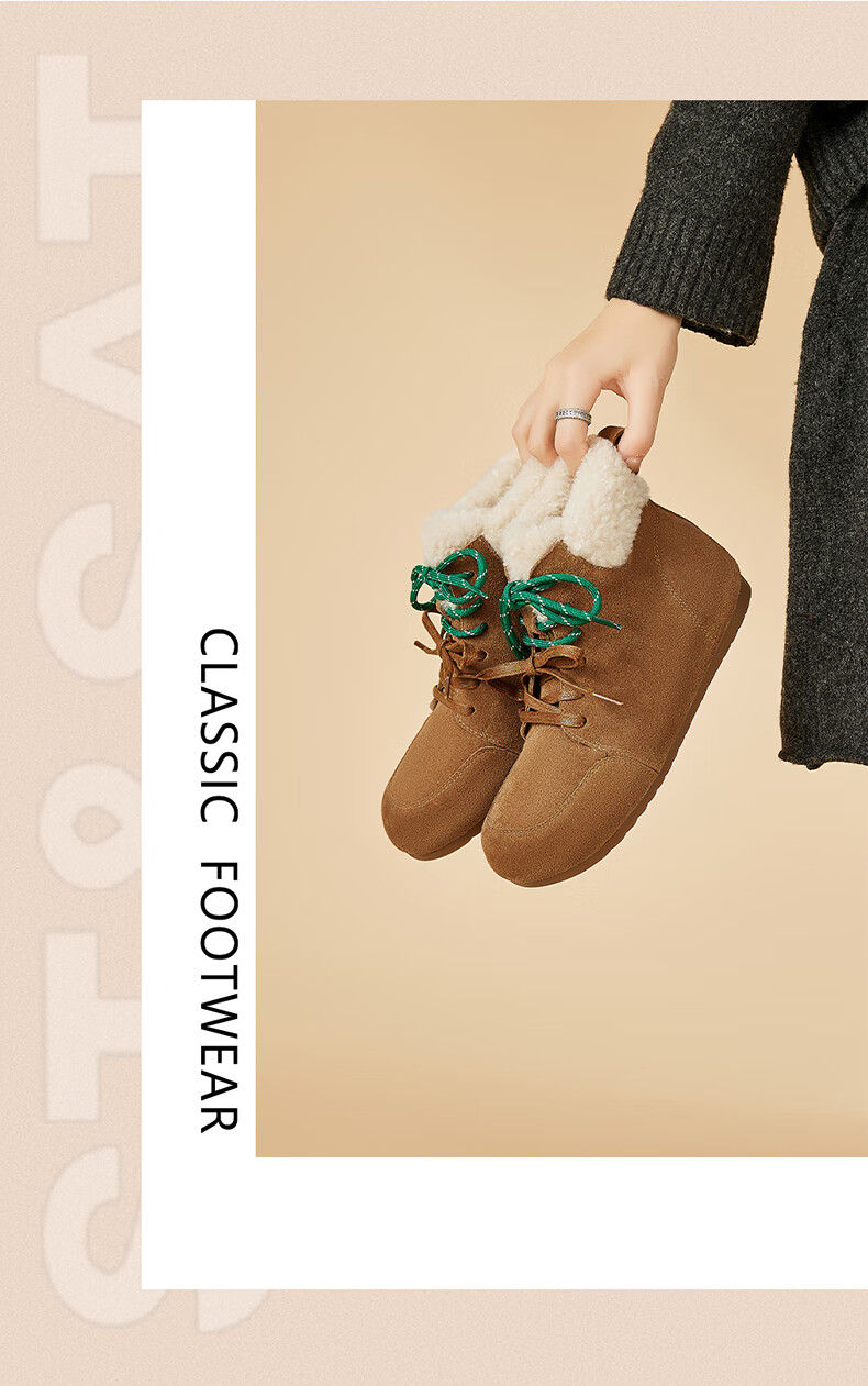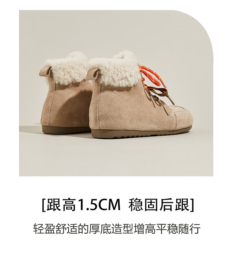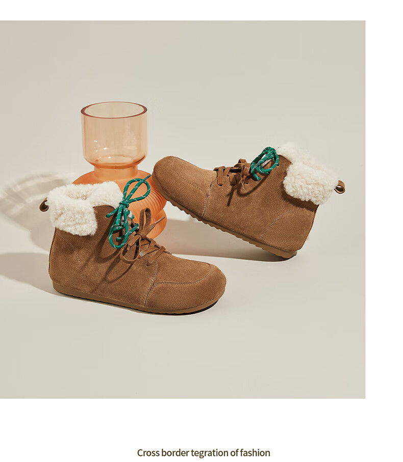 星期六雪地靴女平底内增高系带加绒保暖复古防寒棉鞋2025秋季新款 棕色 36 (230mm) 标准码