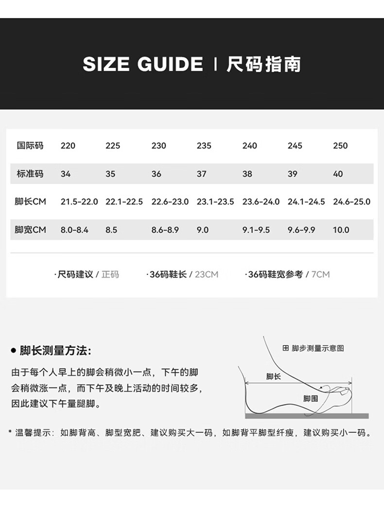 China (cm) 36 - 37 38 - 39 40 - 42 43 - 44 45 - 47