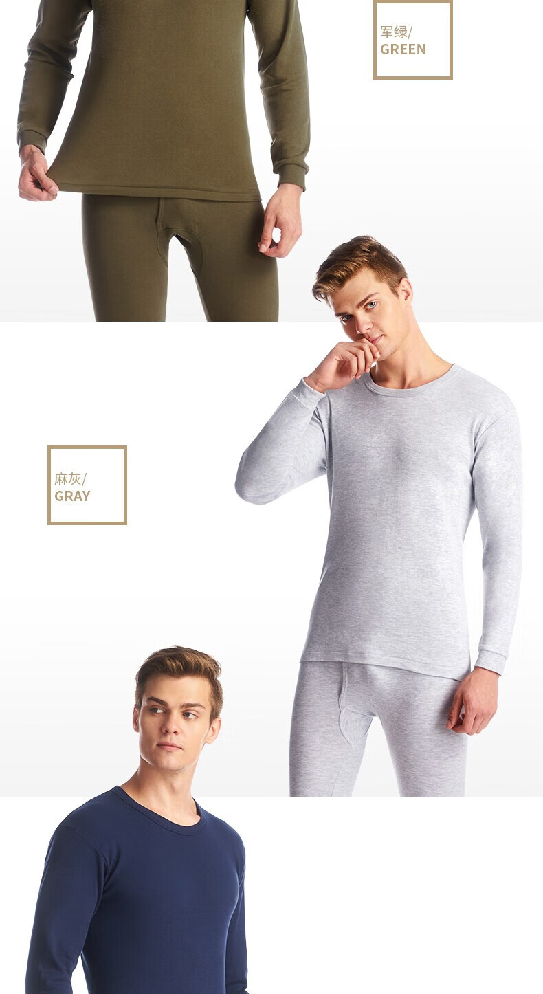 三枪(THREEGUN)秋衣秋裤男女新疆舒肤棉圆领长袖情侣款情侣保暖内衣套装 断码清货 2XL (男麻灰一套180/105)